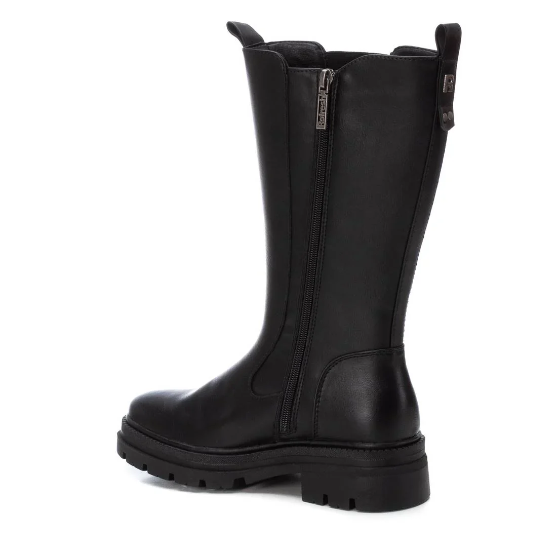 Stivale da donna, della marca Refresh. Realizzato in un materiale che imita la pelle. Canna 26 cm. Chiusura con cerniera ed elastico laterale per indossarlo facilmente. Maniglie posteriori e anteriori per indossarle facilmente. Tacco largo 4 cm con suola antiscivolo. Questo modello è stato certificato vegano dall’organizzazione globale PETA (Animal Rights Organization).