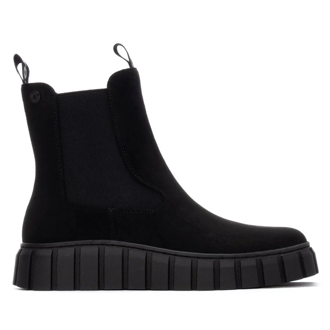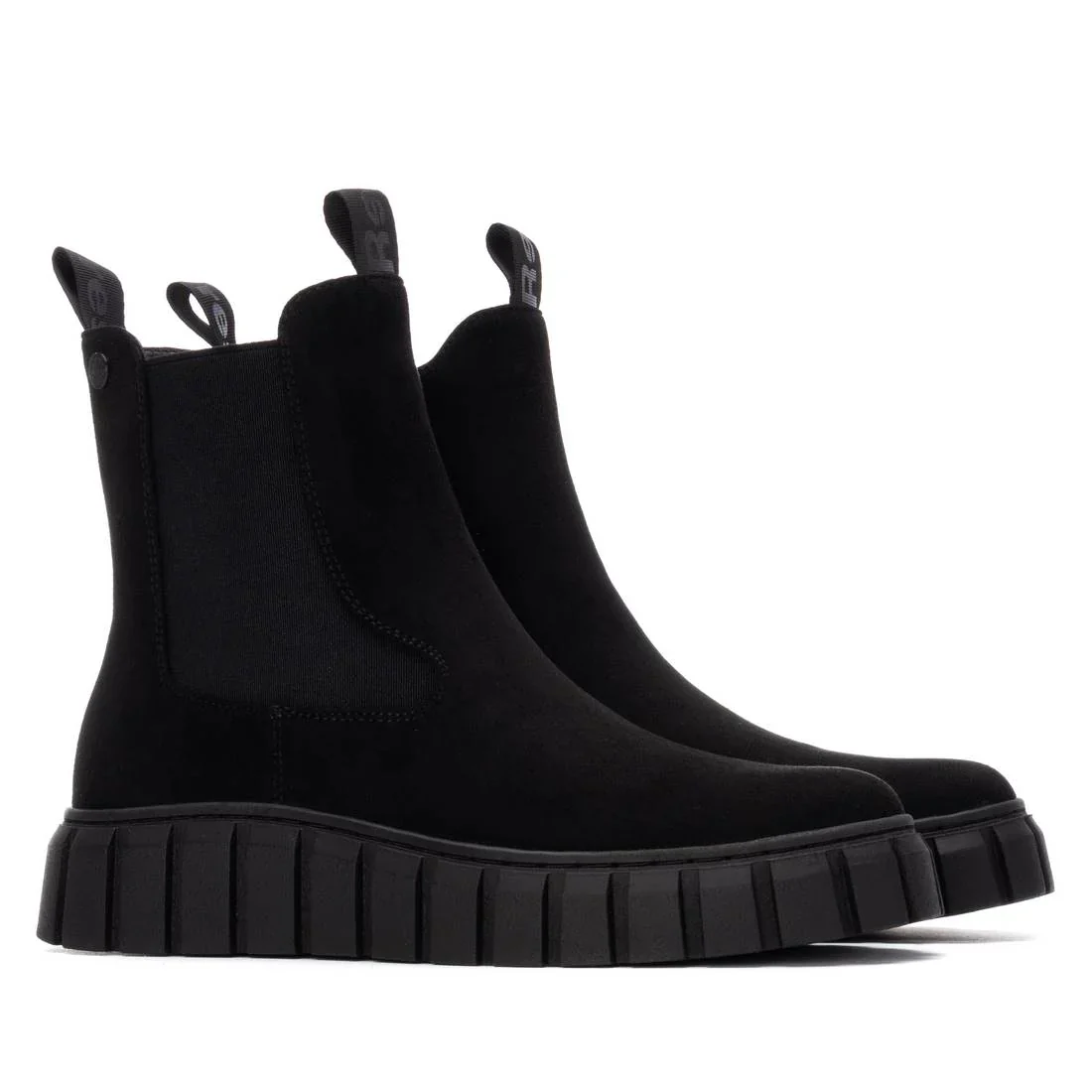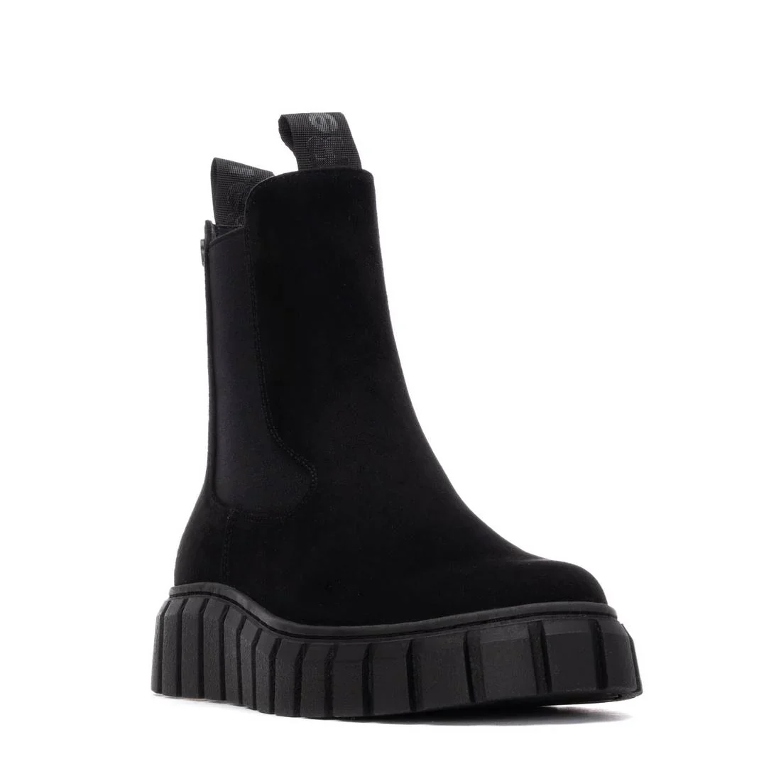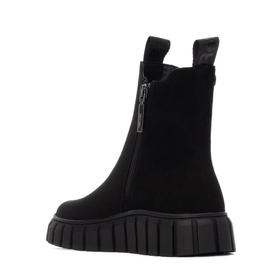 Stivaletti da donna di Refresh. Realizzati in morbida pelle scamosciata. Linguette anteriori e posteriori. Chiusura con cerniera. Pannello laterale elastico. Suola spessa in gomma. Soletta interna rimovibile. Questo modello ha ricevuto la certificazione vegana da PETA (Animal Rights Organization).