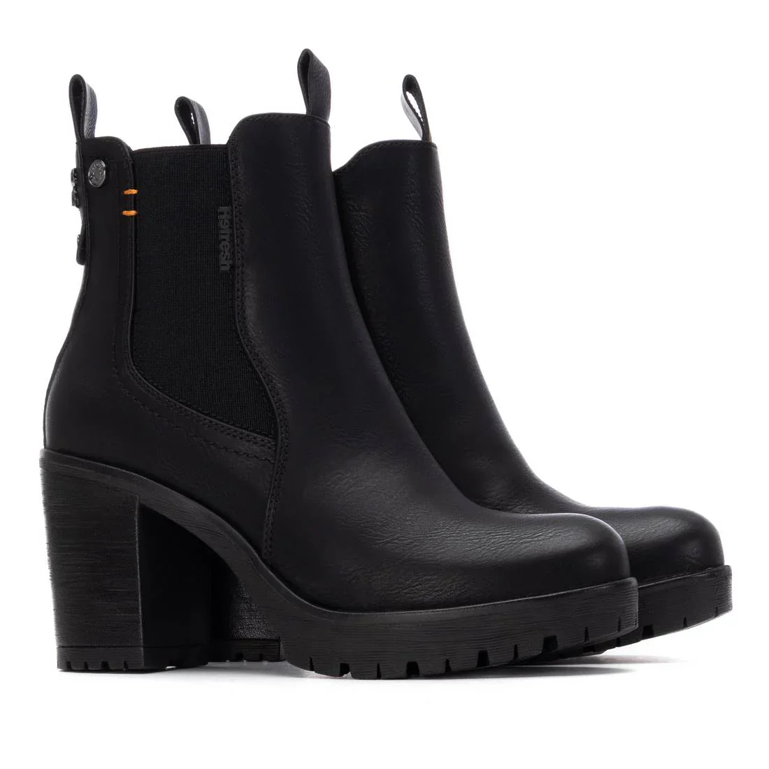 Stivaletto da donna di Refresh. Realizzato in materiale similpelle. Chiusura interna con cerniera. Stile Chelsea con elastico laterale e linguetta posteriore per una facile calzata. Tacco largo 9 cm con suola in gomma antiscivolo. Linguetta posteriore per una facile calzata. Soletta interna rimovibile. Questo modello è stato certificato vegano dall’organizzazione mondiale per i diritti degli animali PETA (Peta).