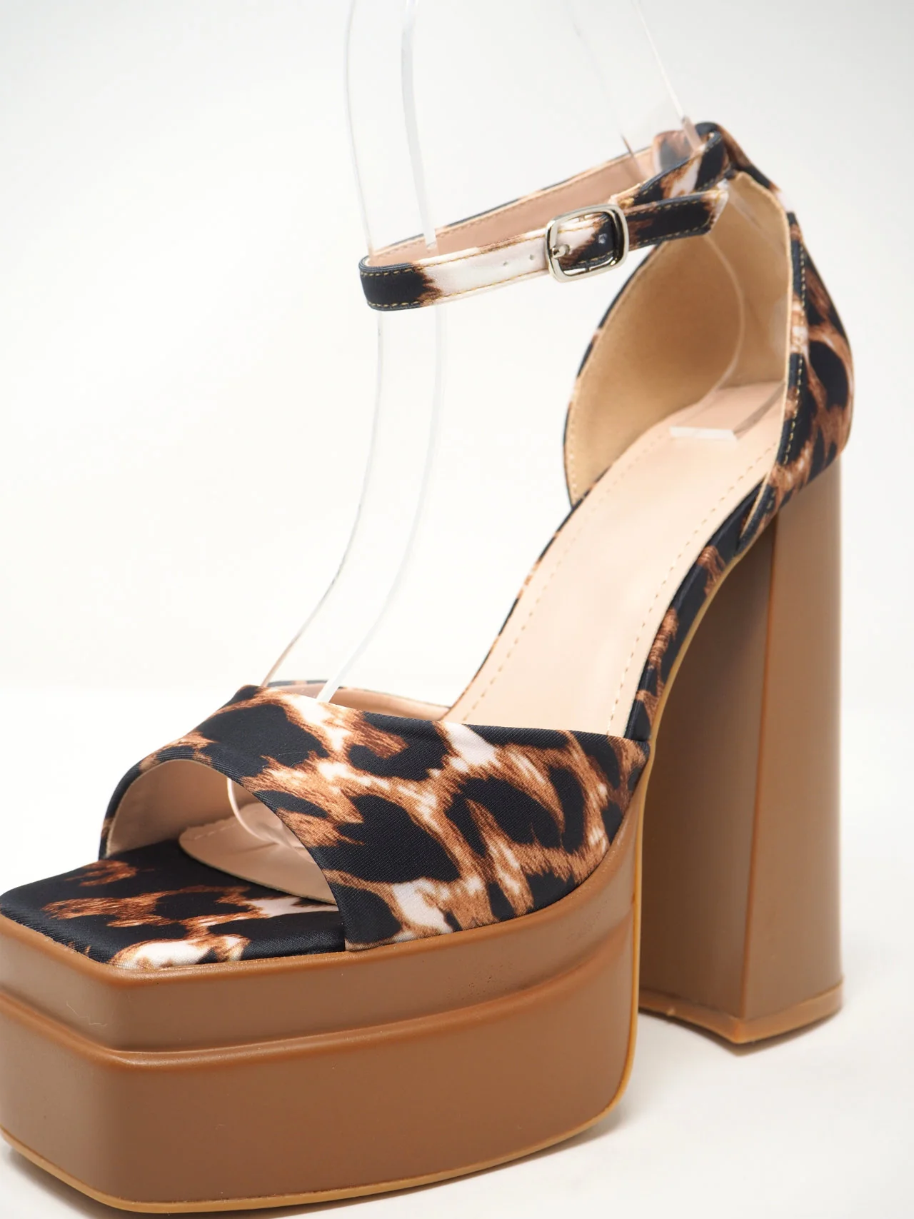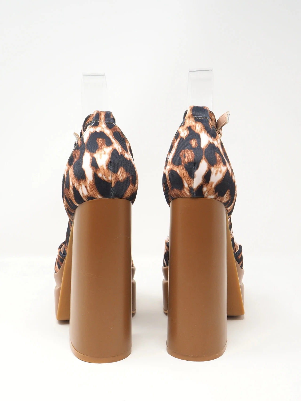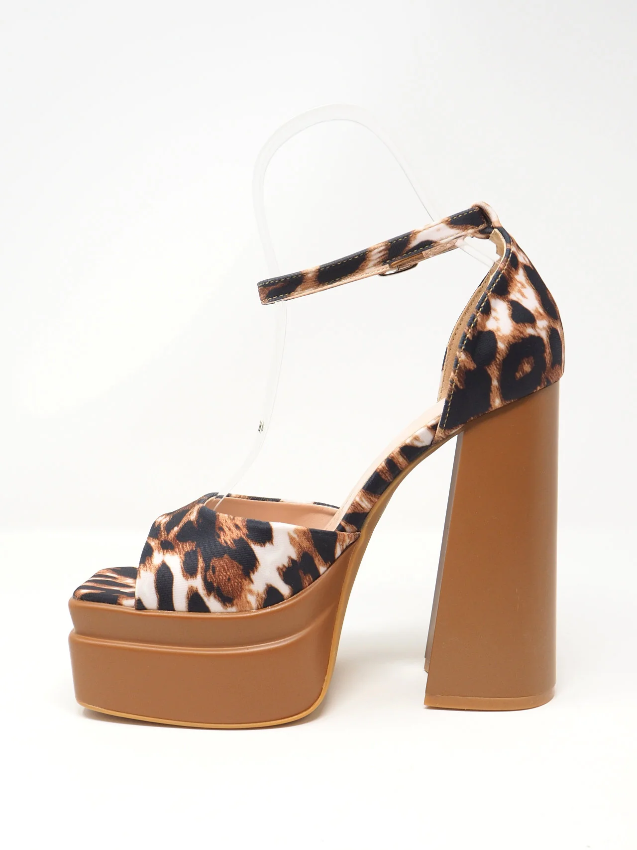 Sandali open toe da donna in tessuto ed ecopelle con tacco grosso e plateau, con cinturino alla caviglia. Molto comode e adatte a tante occasioni. Tomaia sintetica in tessuto effetto pelle Suola sintetica Plateau altezza: 4 cm Tacco altezza: 14 cm Altezza totale compreso tacco: 22 cm Colore in foto: Leopardato Art. 6821