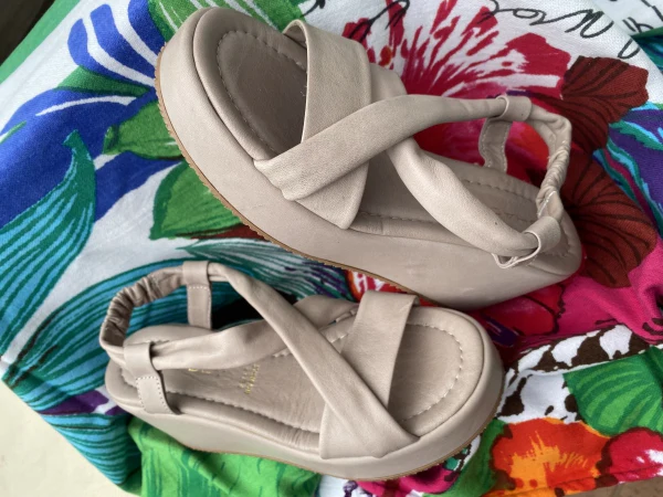 Shaddy 100243352 sandalo donna doppia fascia con zeppa visone