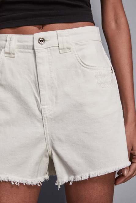 Gli shorts in bull denim sono un must-have per un look casual e fresco. Il laccio con anello metallico e il ricamo Fly sulle tasche aggiungono un tocco di originalità e stile.