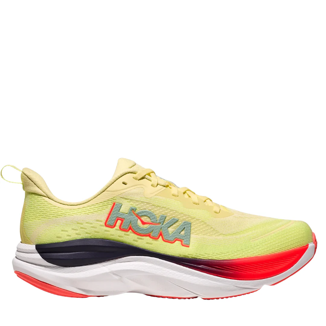 Le HOKA Skyflow sono scarpe da running su strada progettate per offrire una corsa morbida, fluida e reattiva negli allenamenti quotidiani e nelle uscite di media-lunga distanza. Pensate come vero daily trainer premium, combinano l’ammortizzazione tipica HOKA con una geometria moderna che favorisce transizioni naturali e un’andatura efficiente.