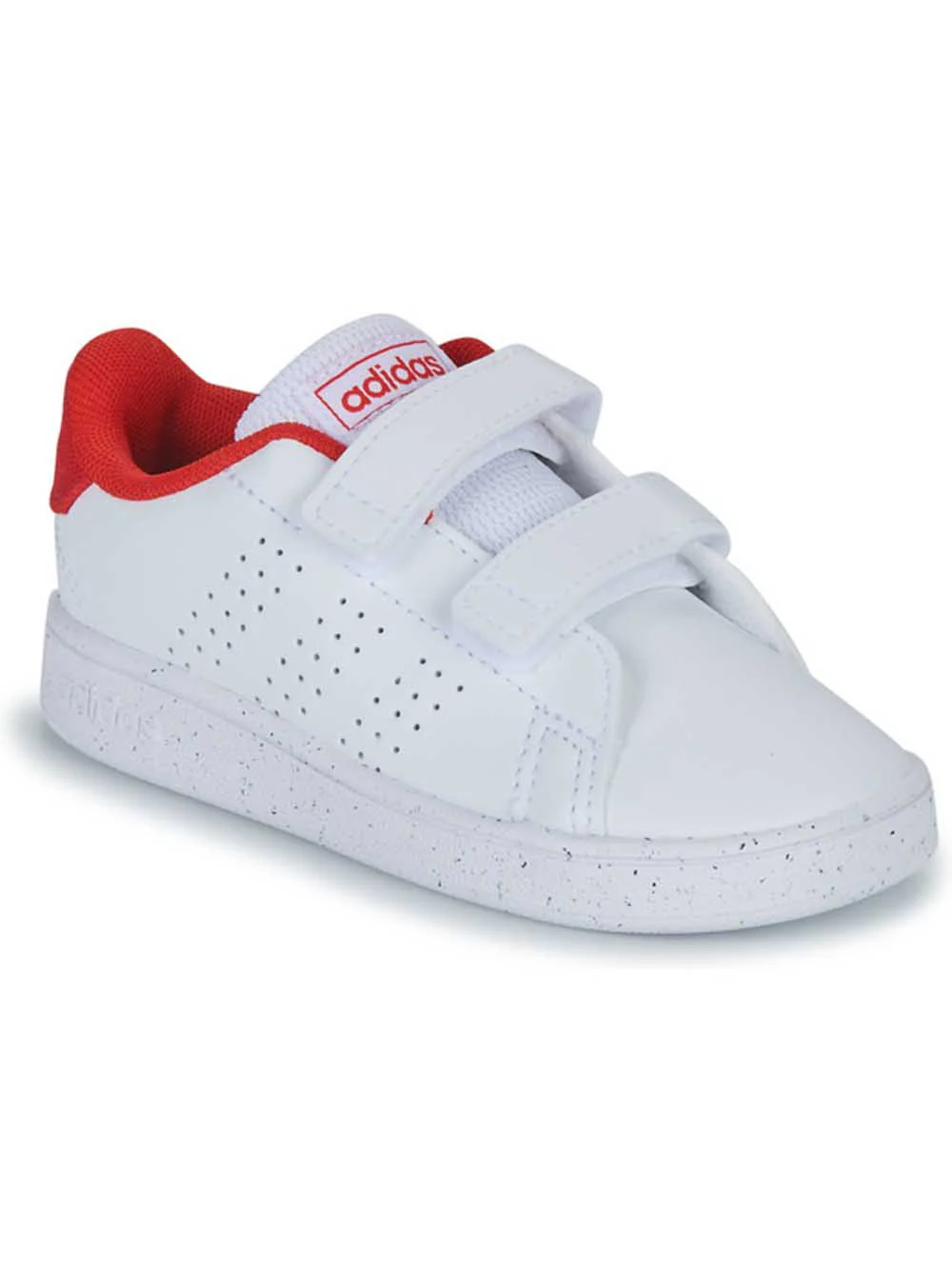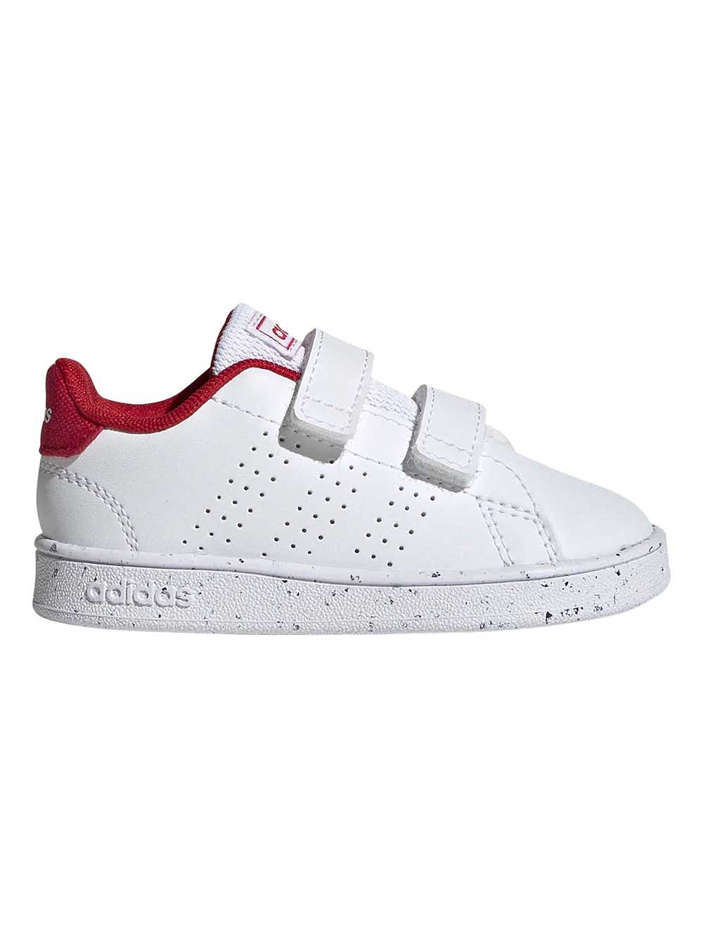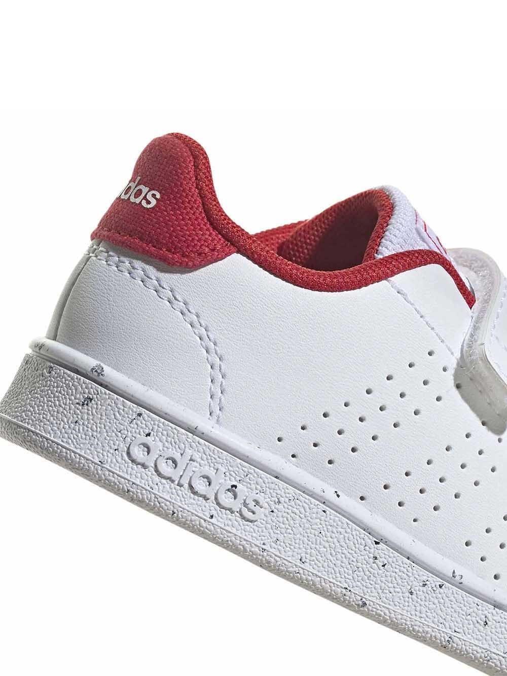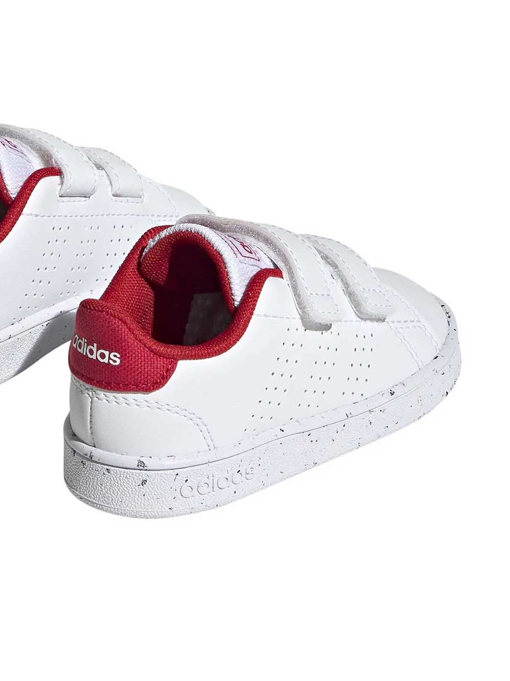 Sneakers Adidas bianca Advantage da bambino in pelle con strappo Art:H06216 Dettagli:Questa sneakers dallo stile retrò ha un design semplice ma d’effetto. Realizzata in ecopelle bianca e tallone rosso, presenta un allacciatura con strappo, facile da infilare. La suola robusta in gomma preformata resiste anche ai giochi più scatenati.Prodotto originale
