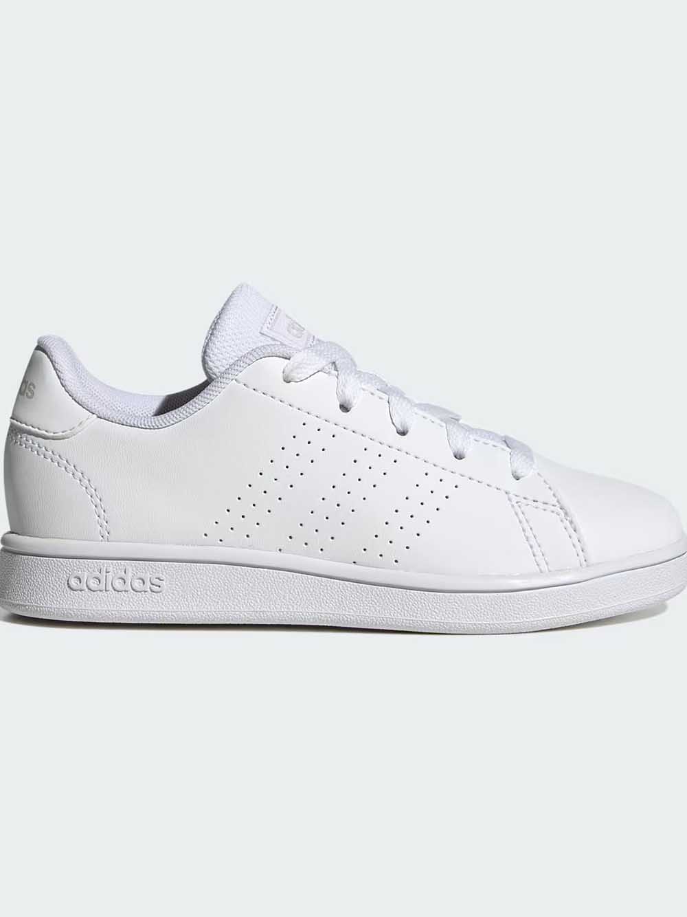 Sneakers Adidas da bambino jr Advantage K in pelle bianca Art:IG2511 Dettagli:Questa sneakers dallo stile retrò ha un design semplice ma d’effetto. Realizzata in ecopelle bianca, morbida e versatile perché facile da indossare in ogni occasione. La suola robusta in gomma preformata resiste anche ai giochi più scatenati.Prodotto originale