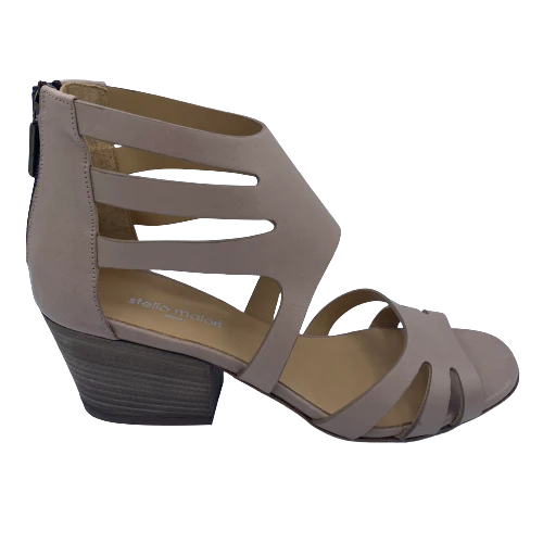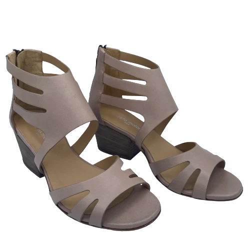 Sandalo in pelle color fango con zip di chiusura centrale posteriore e tacco 5 cm