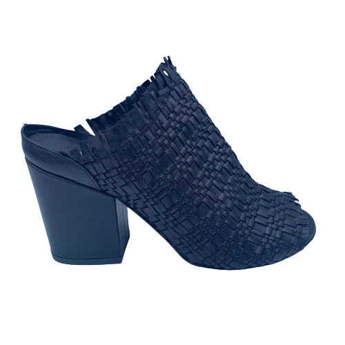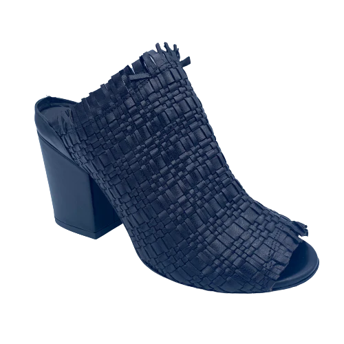 Sabot in pelle intrecciata nera con tacco altezza 9 cm