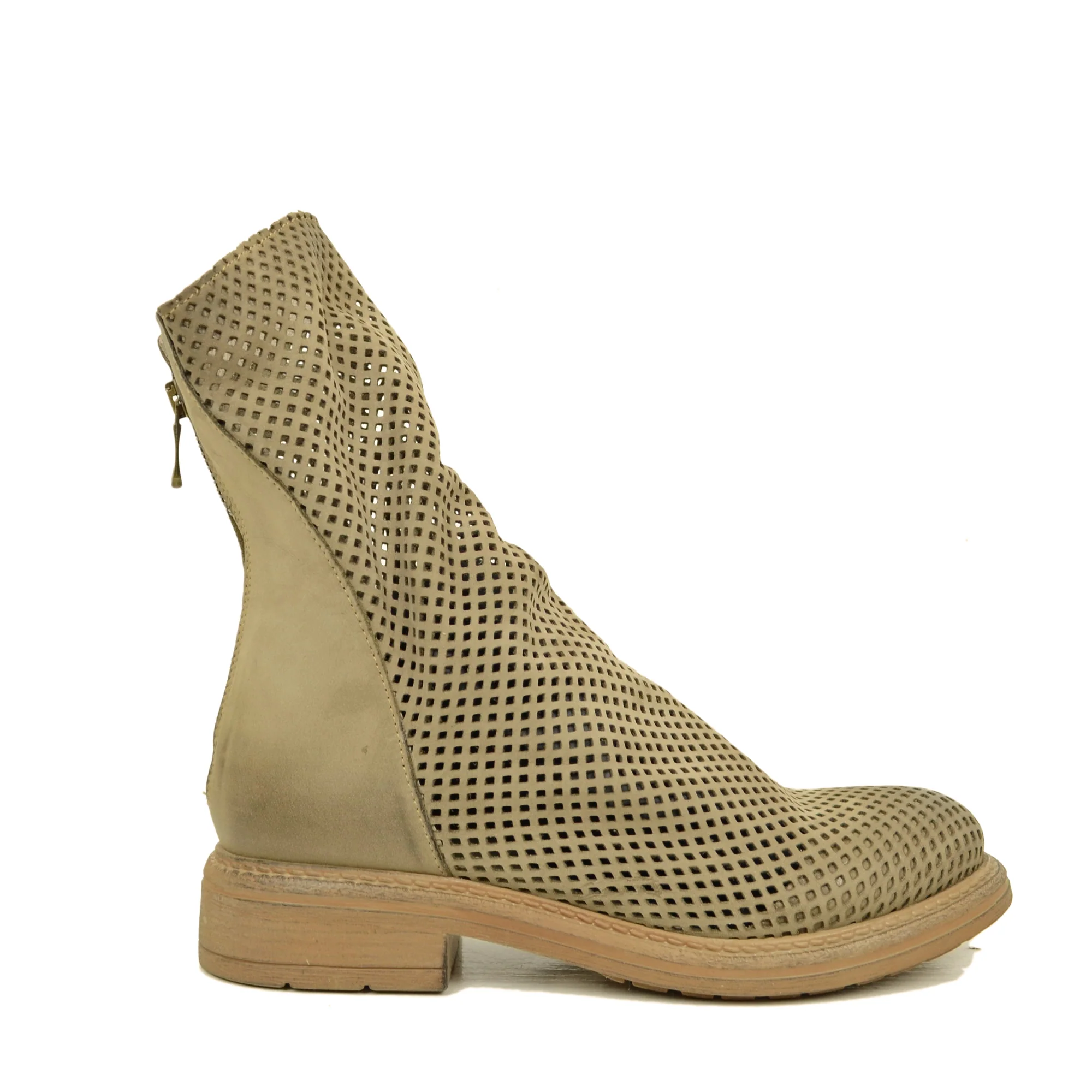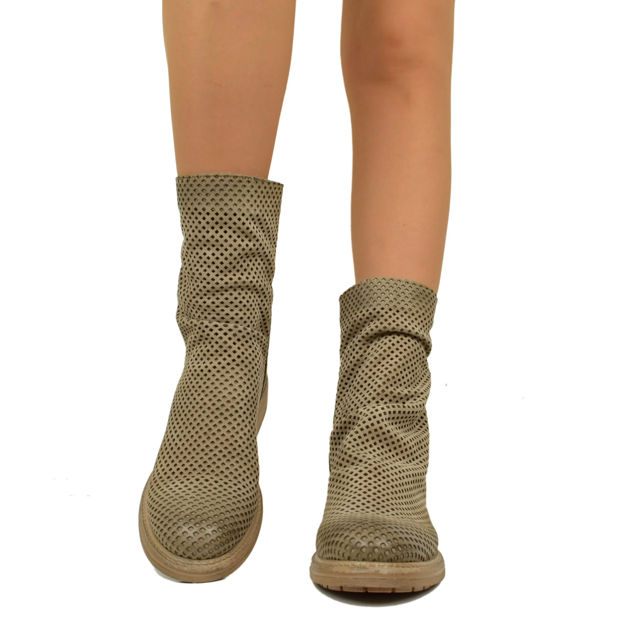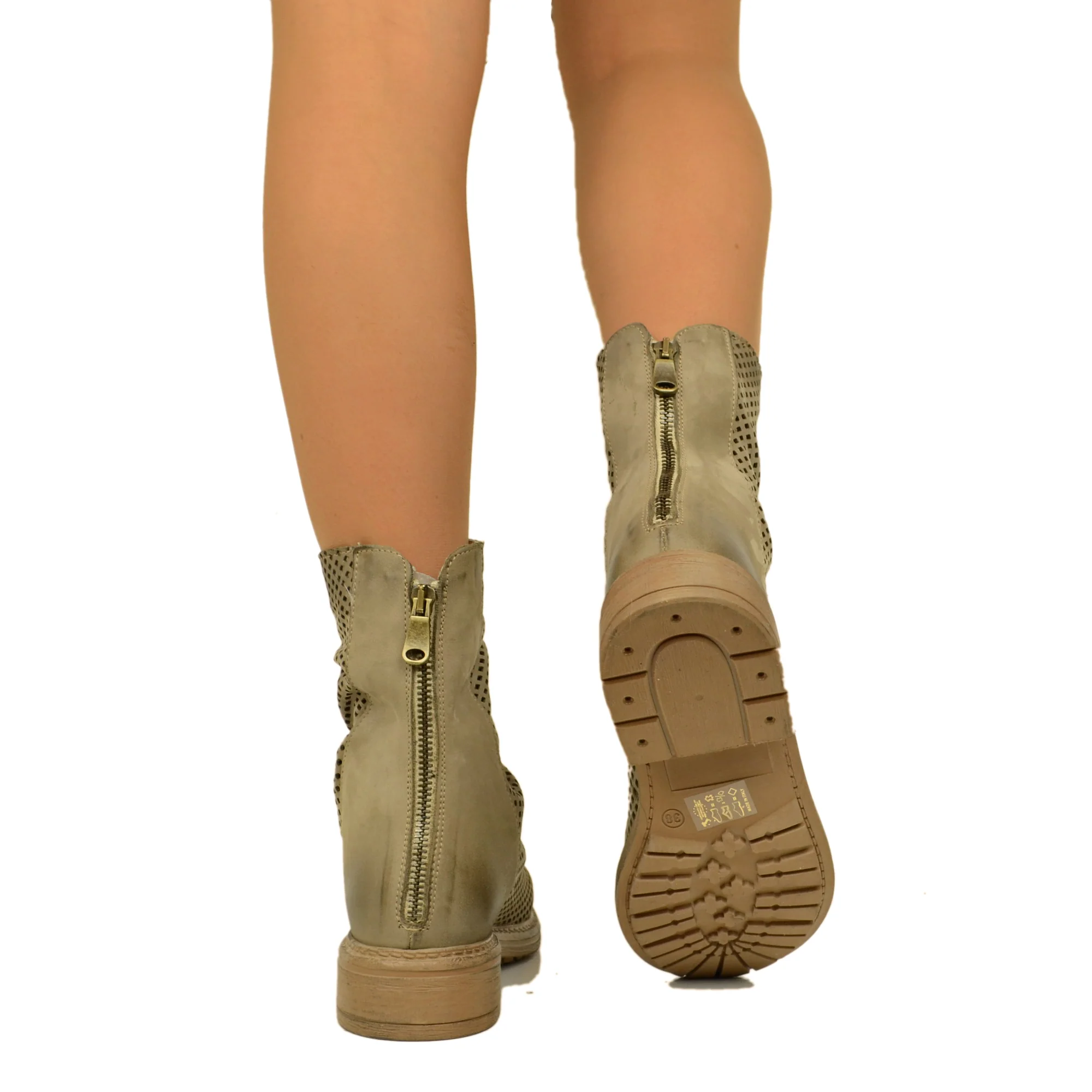 Stivaletti Biker Donna Traforati in Pelle Taupe con Zip