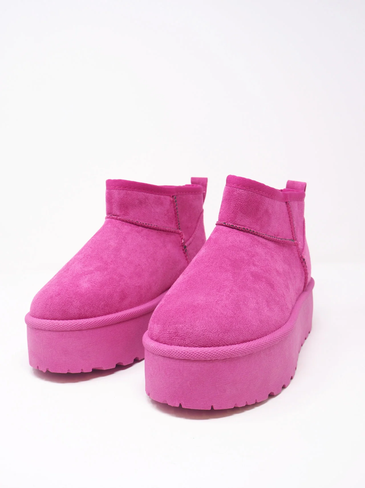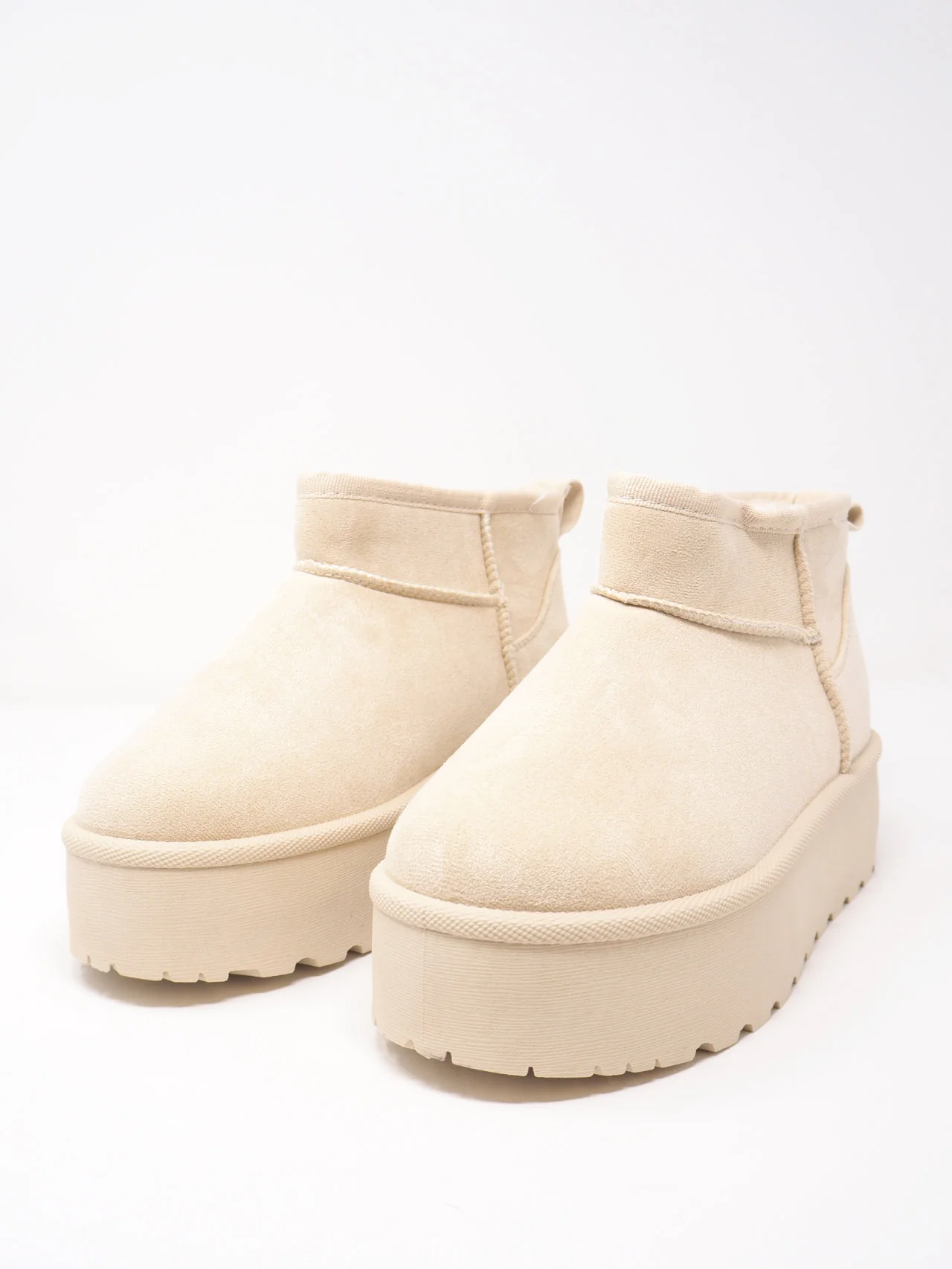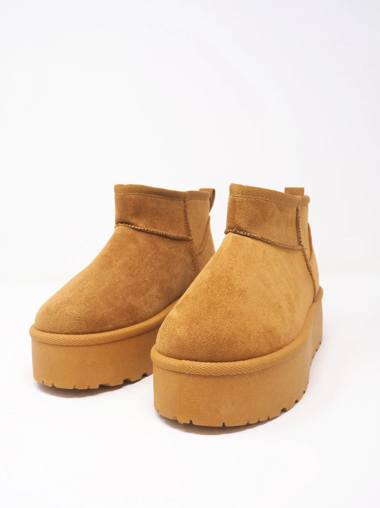 - Comodi stivali bassi da donna in tessuto tipo camoscio con pelo dentro, con para unita, dal look fashion e trendy