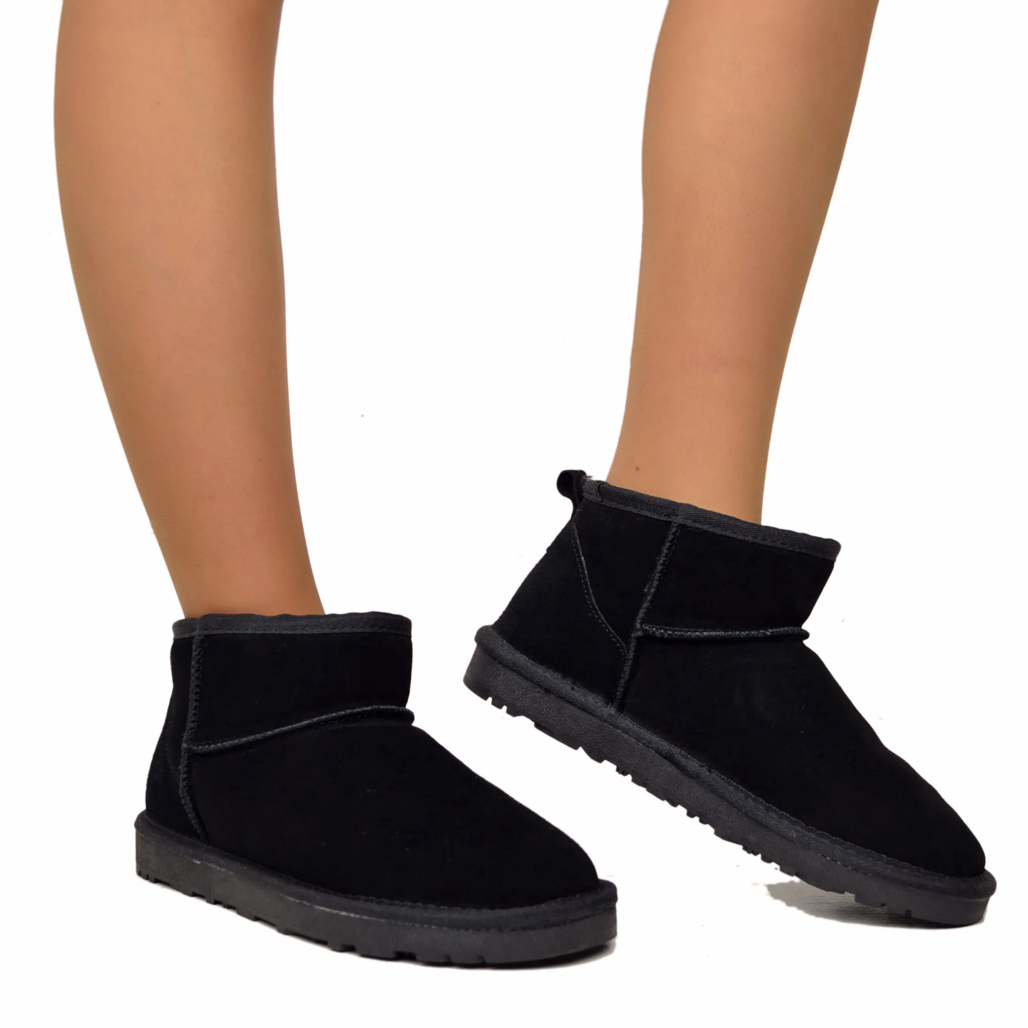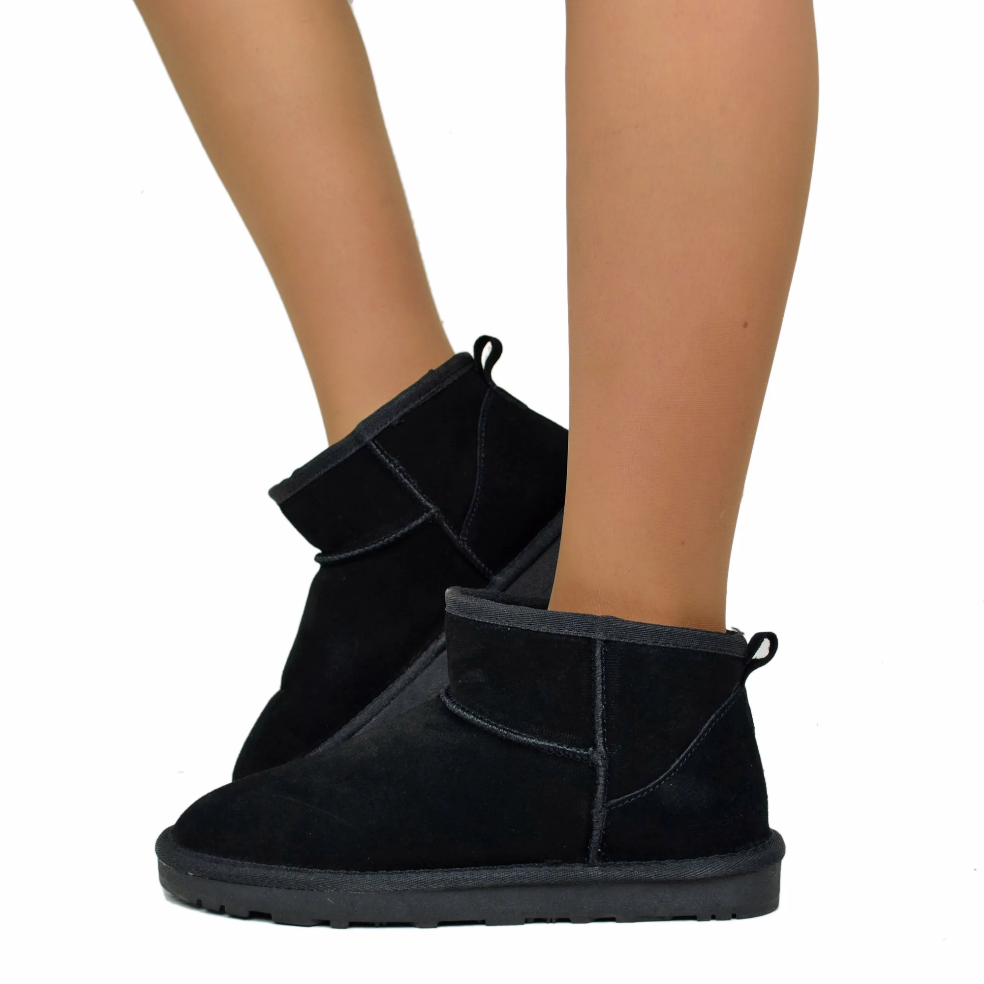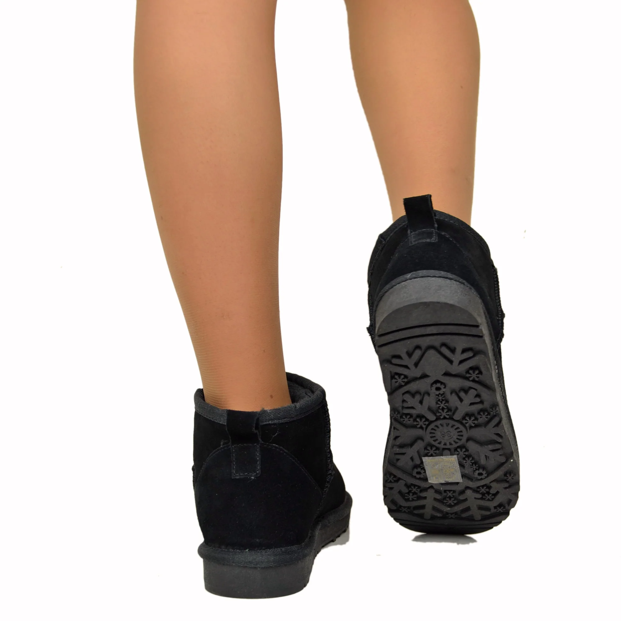 Tuffati nel comfort del Tacco Ultra Mini in Pelle Scamosciata Imbottiti in 100% Lana nel color Neri. Super Caldi!