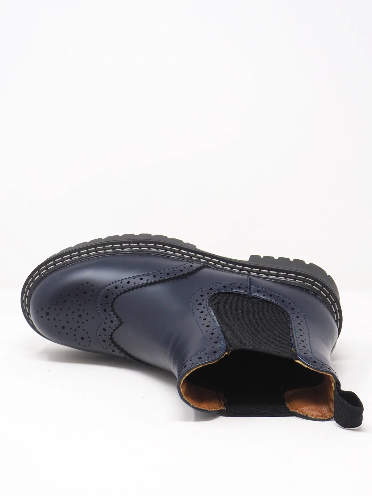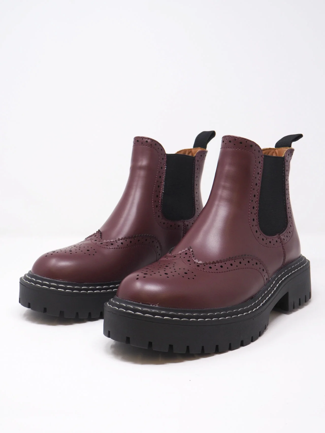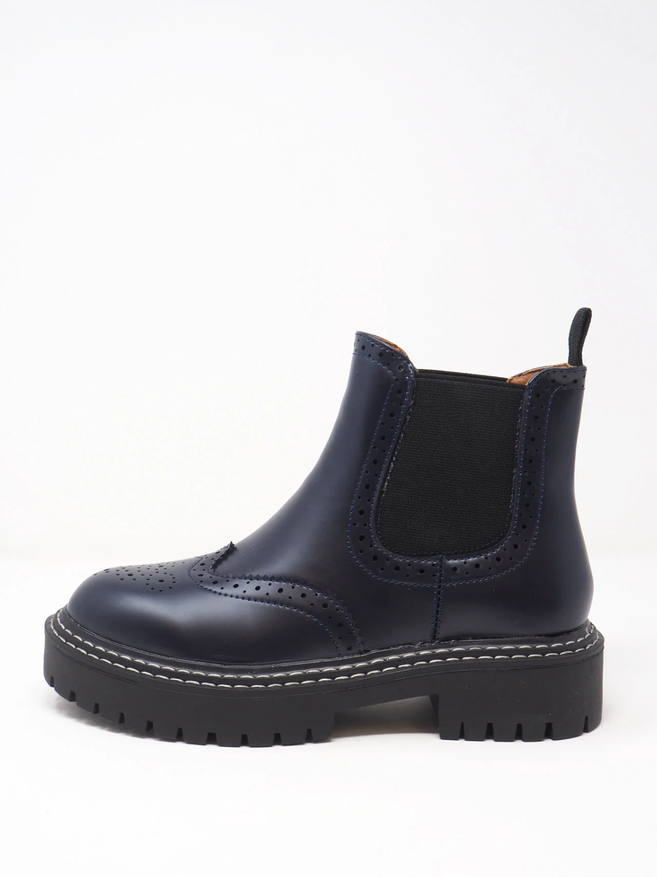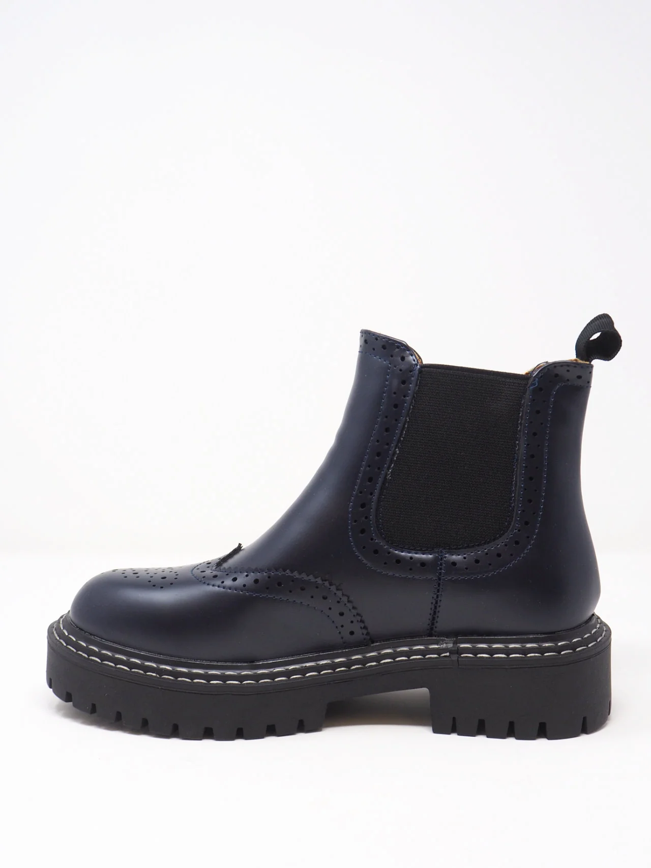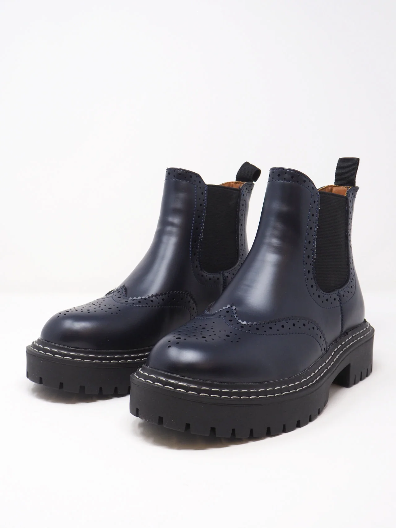 - Stivali da donna con elastico ai lati e ricami tipo inglese, con para a carrarmato, in tessuto effetto pelle dal look fashion e trendy