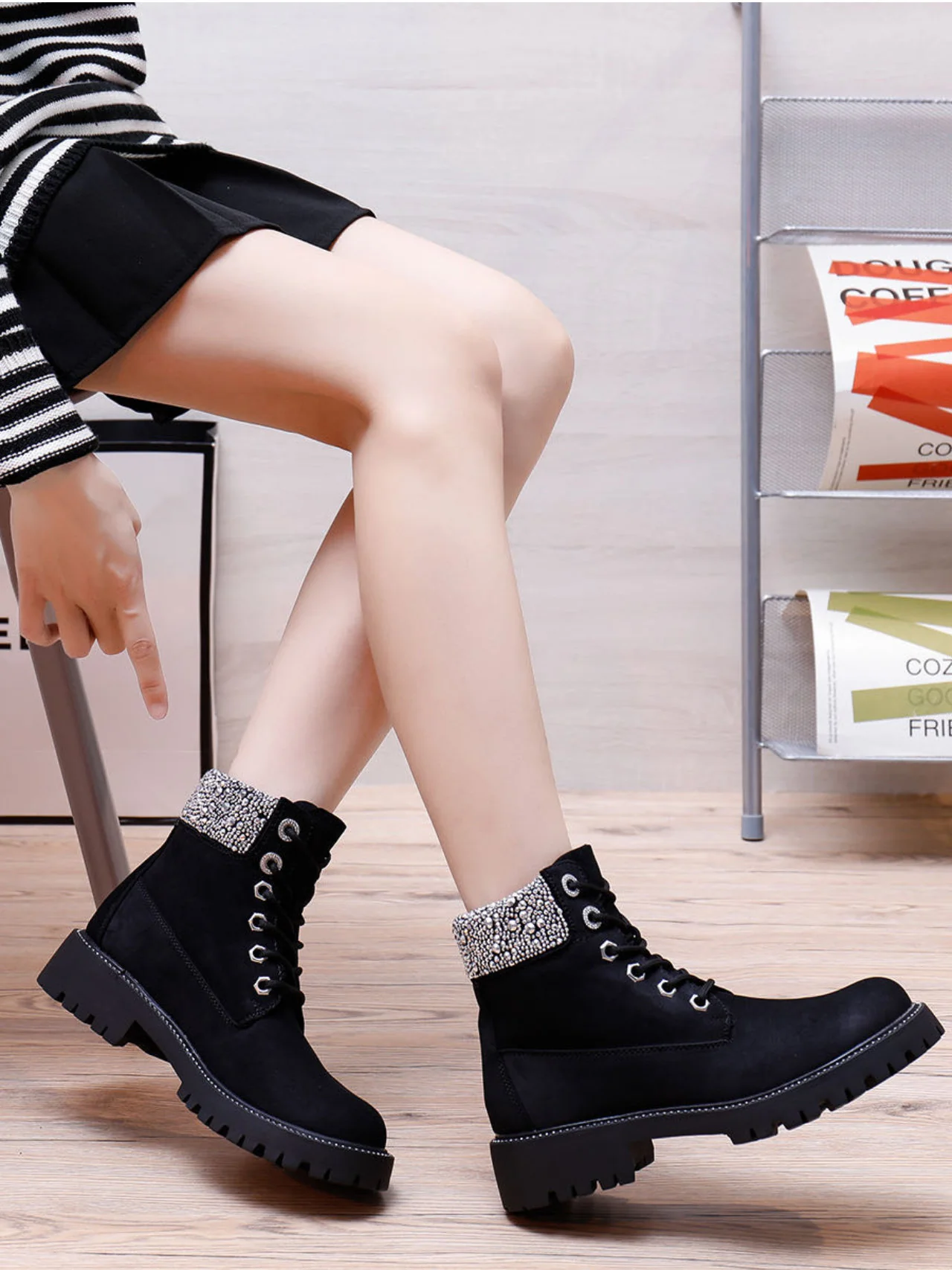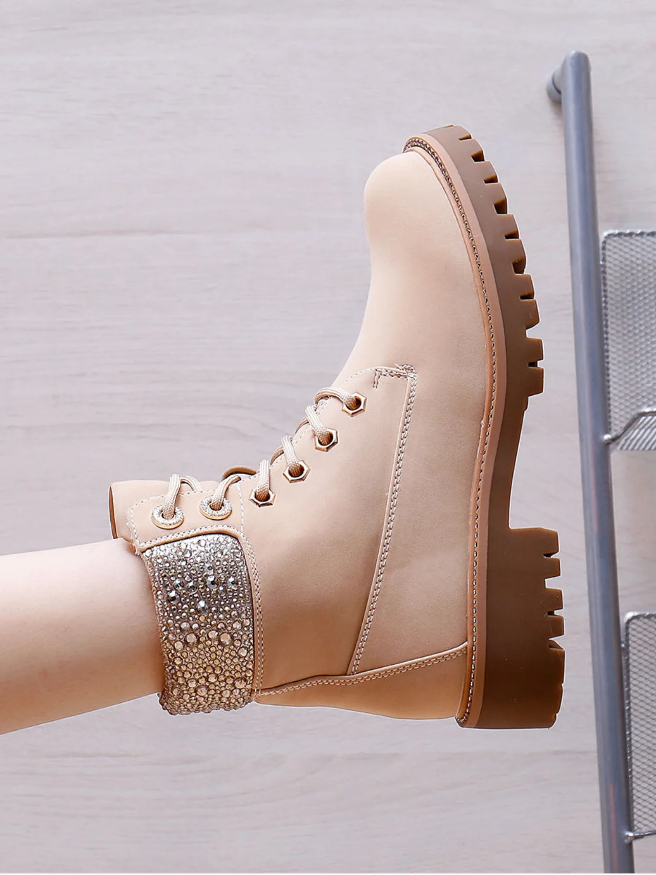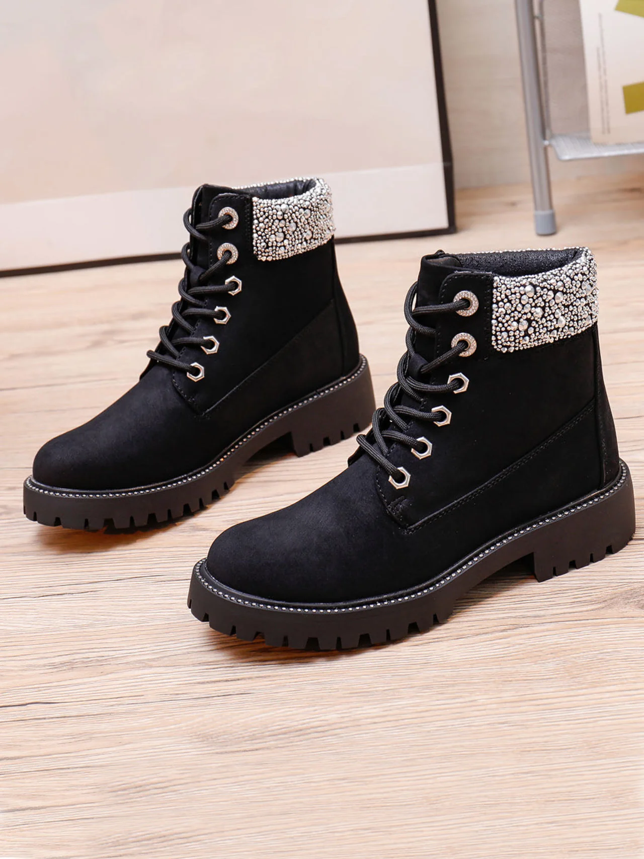 - Stivali da donna stringati con strass, con para a carrarmato, dal look fashion e trendy