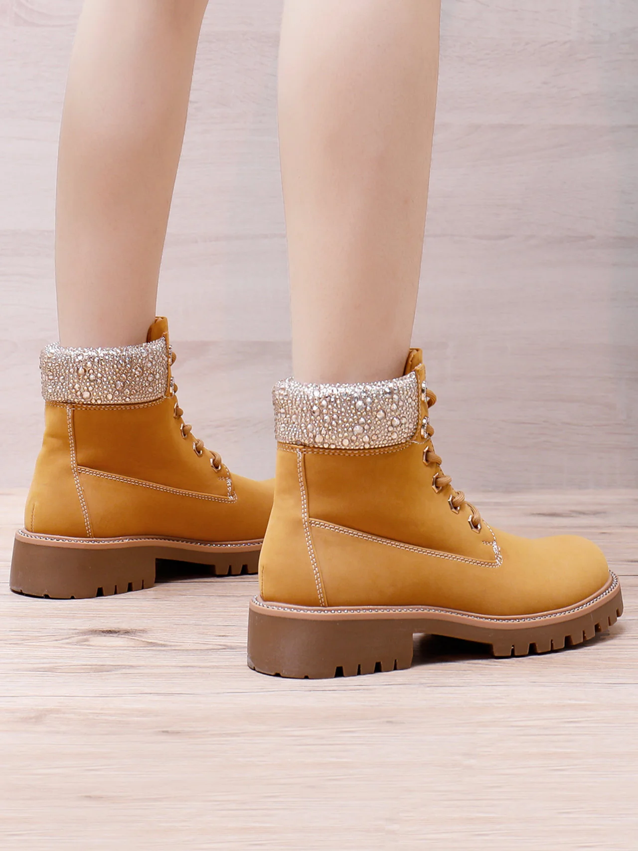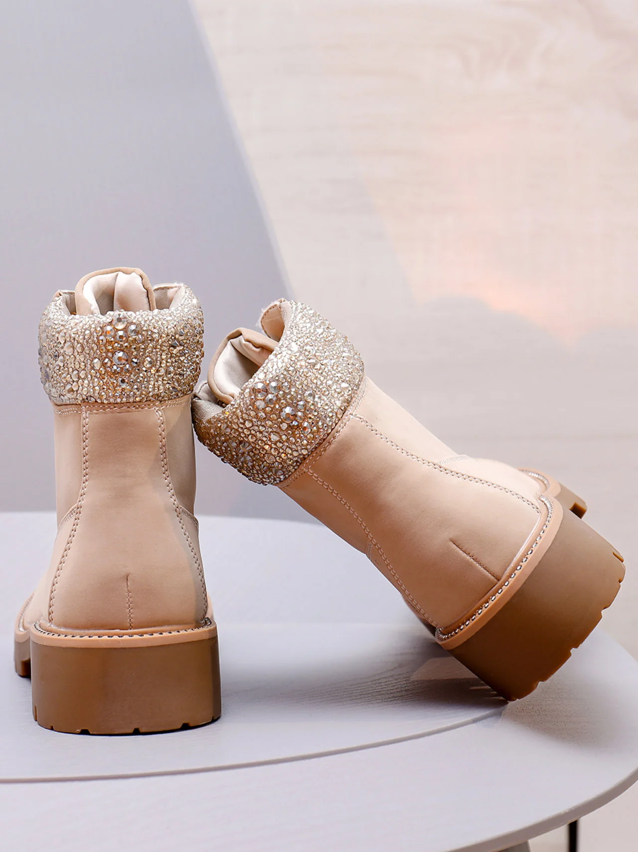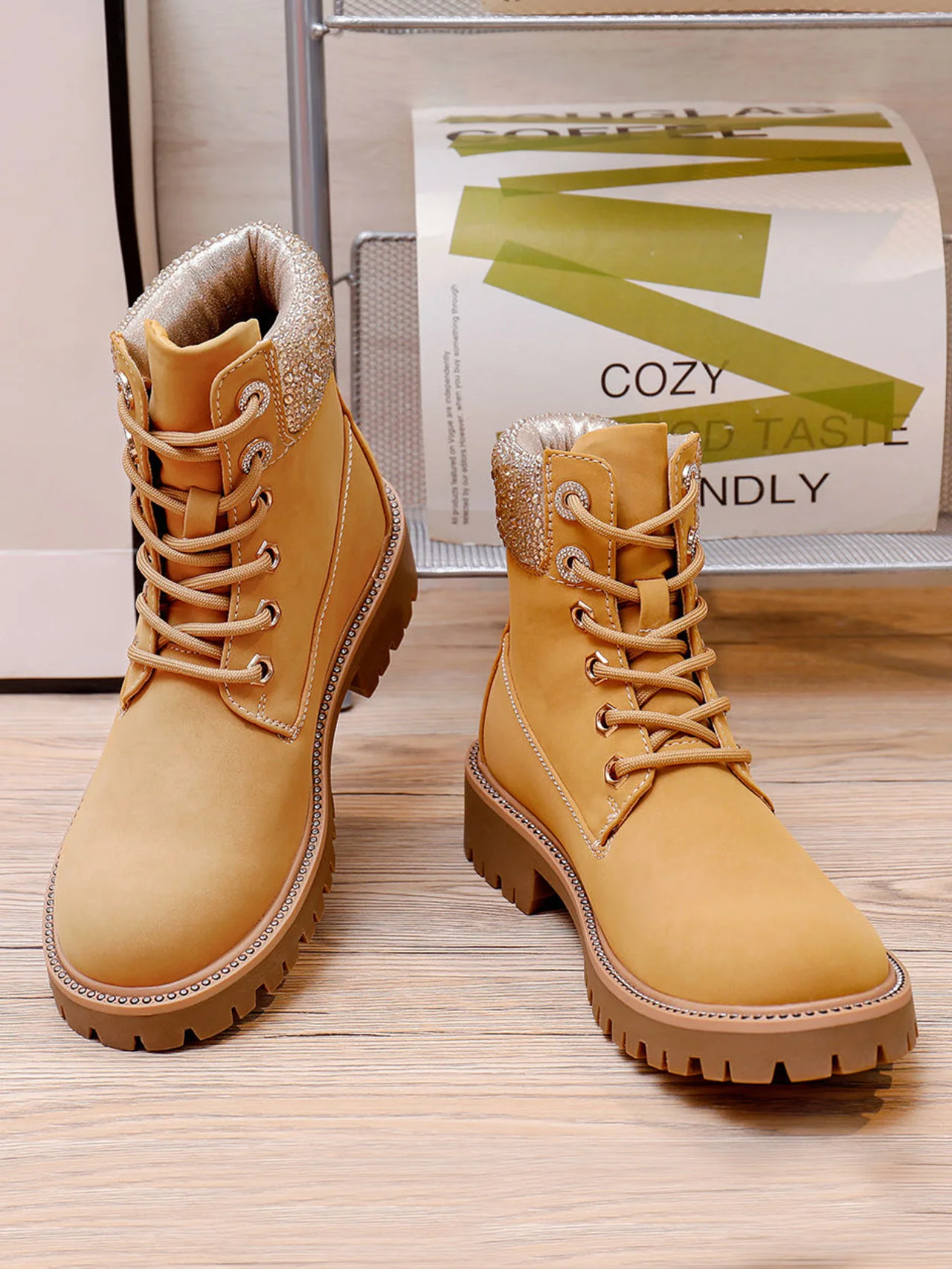 - Stivali da donna stringati con strass, con para a carrarmato, dal look fashion e trendy