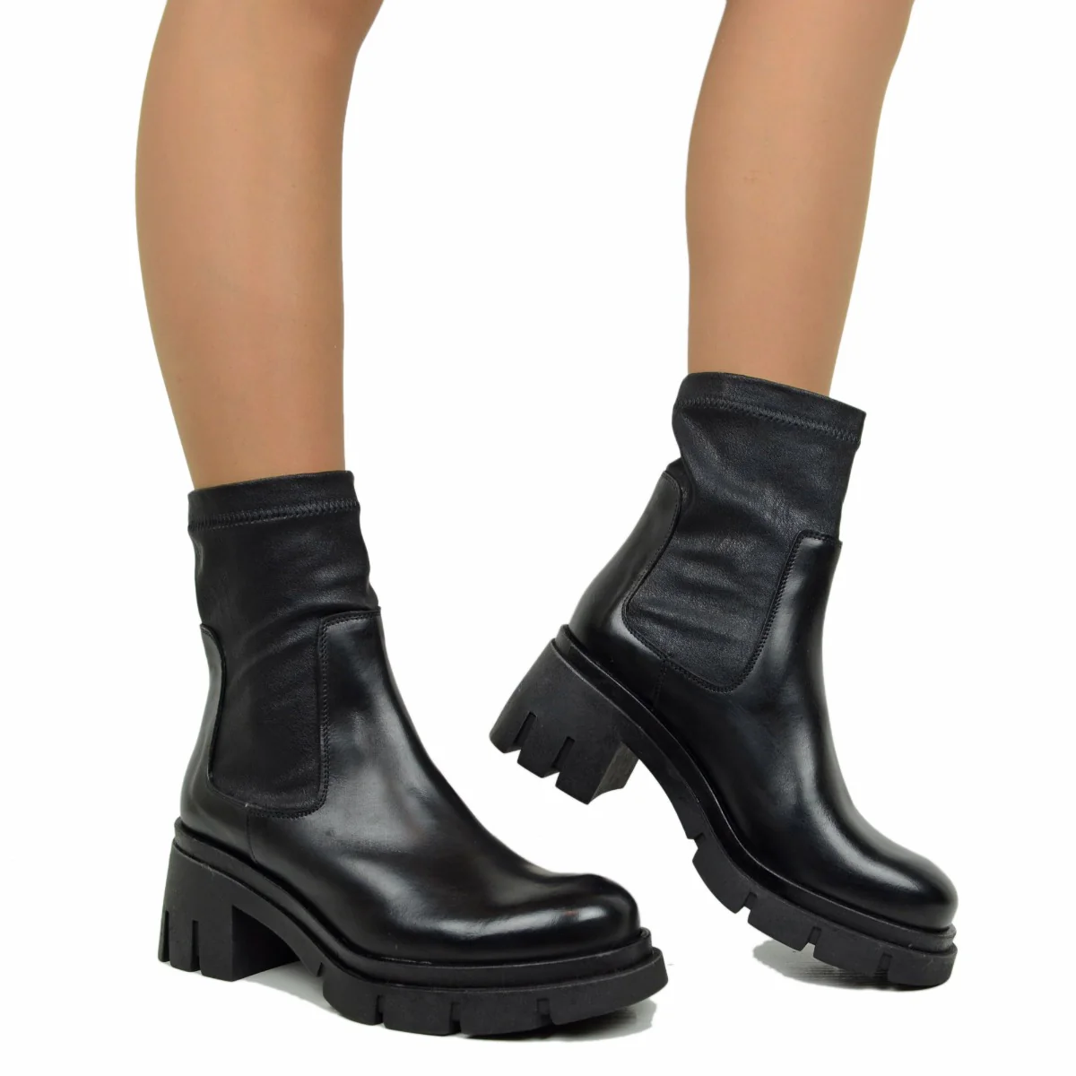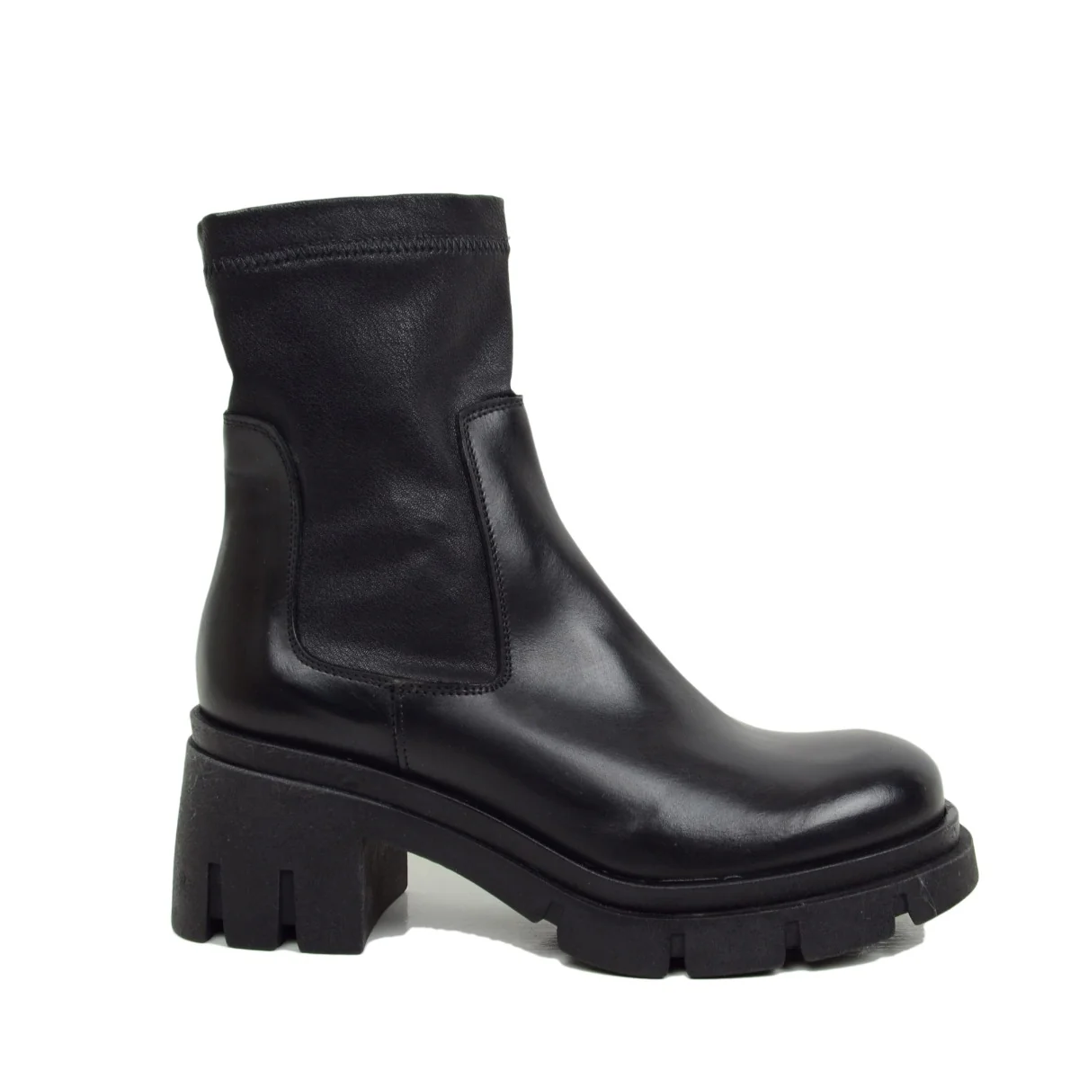 Stivaletti Donna Elasticizzati in Pelle Neri con Plateau Made in Italy.