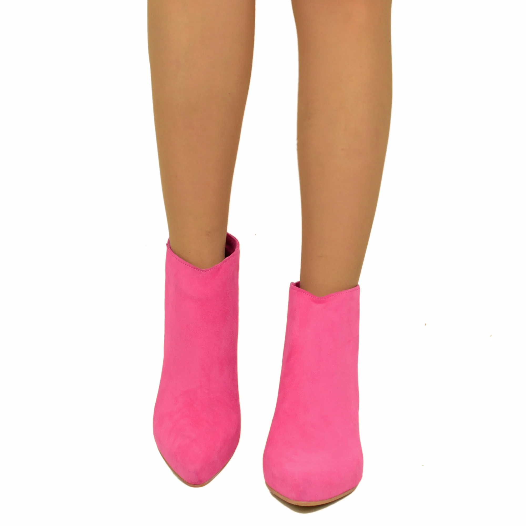 Stivaletti Donna in Pelle Scamosciata Fuxia con Zip.