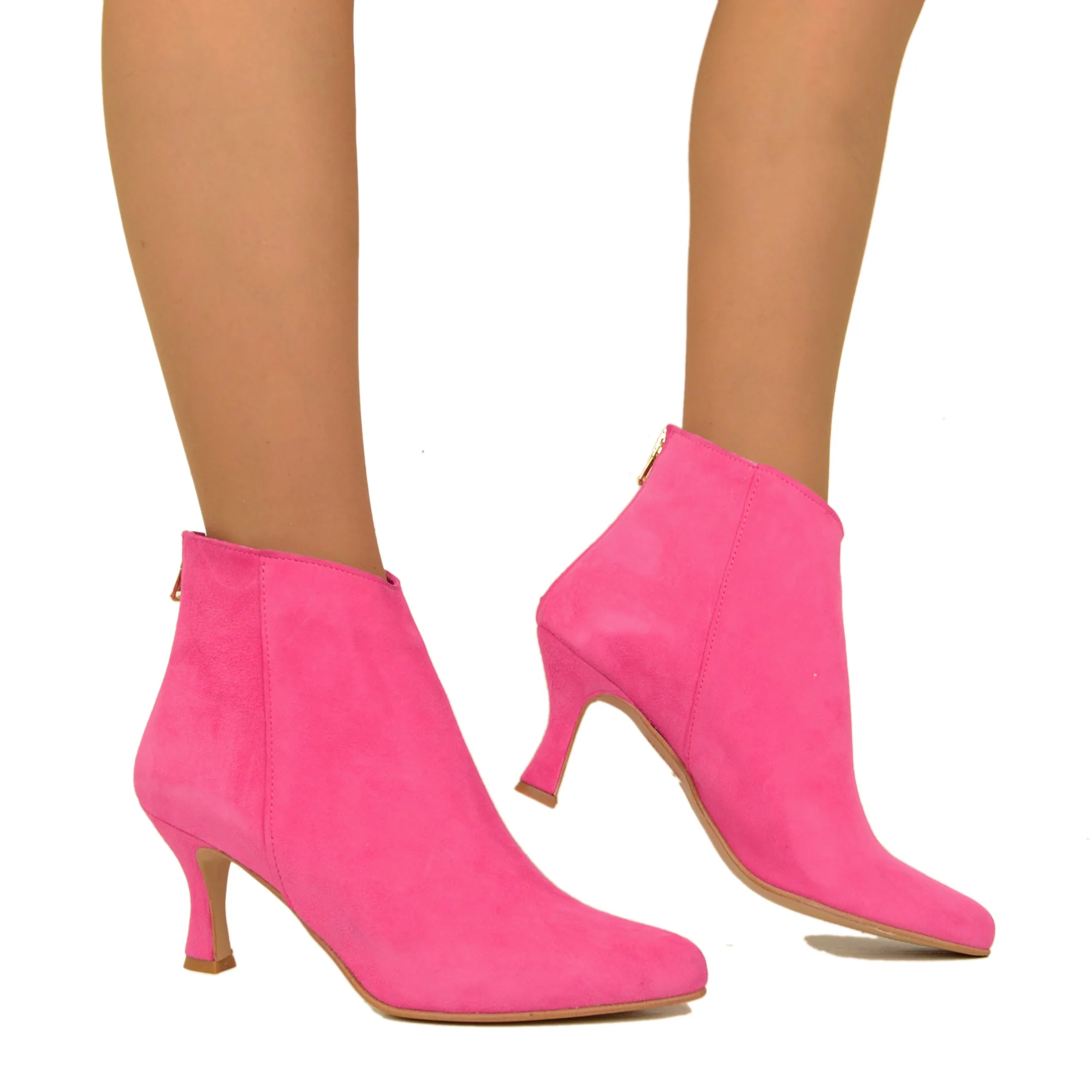 Stivaletti Donna Fuxia in Pelle Scamosciata con Zip Made in Italy