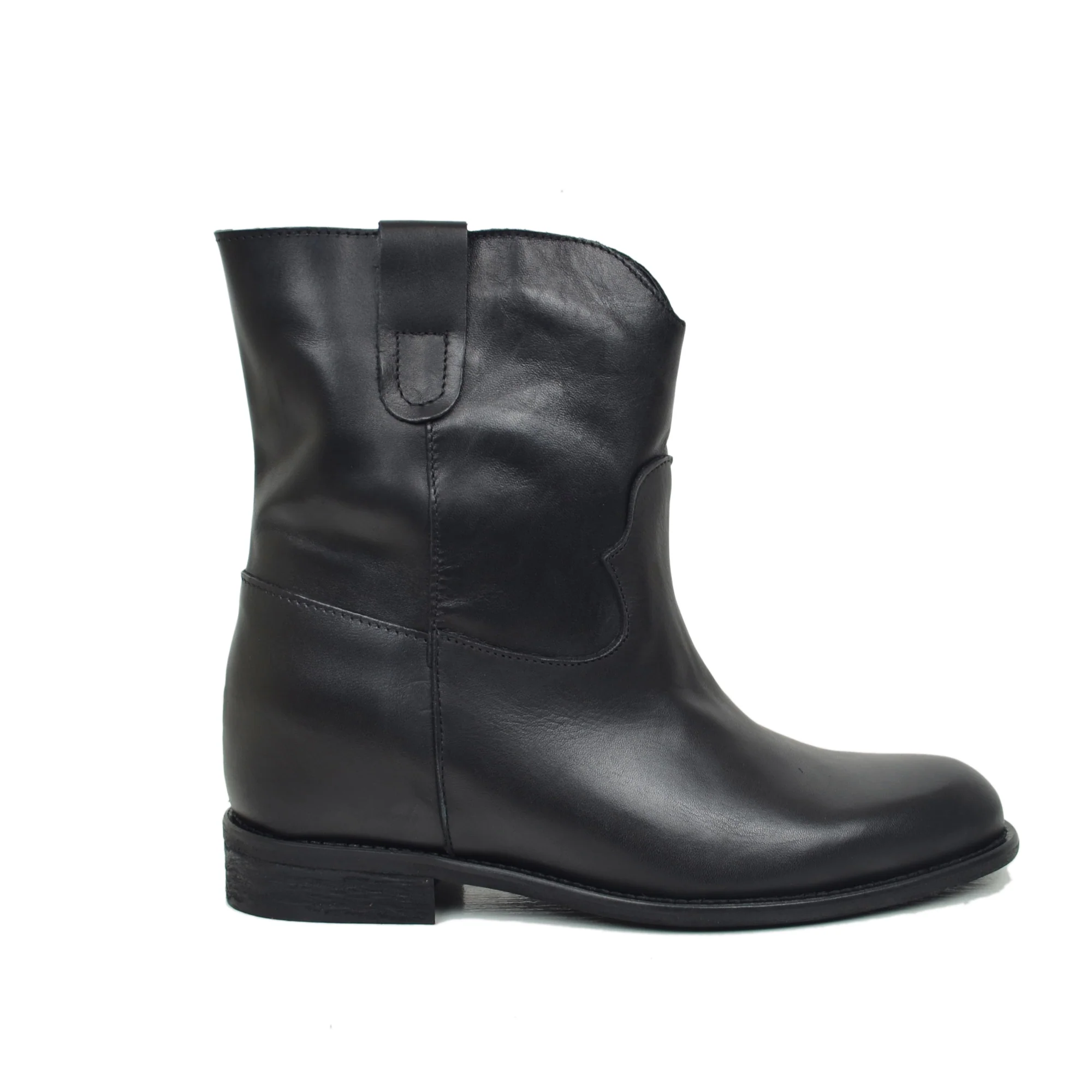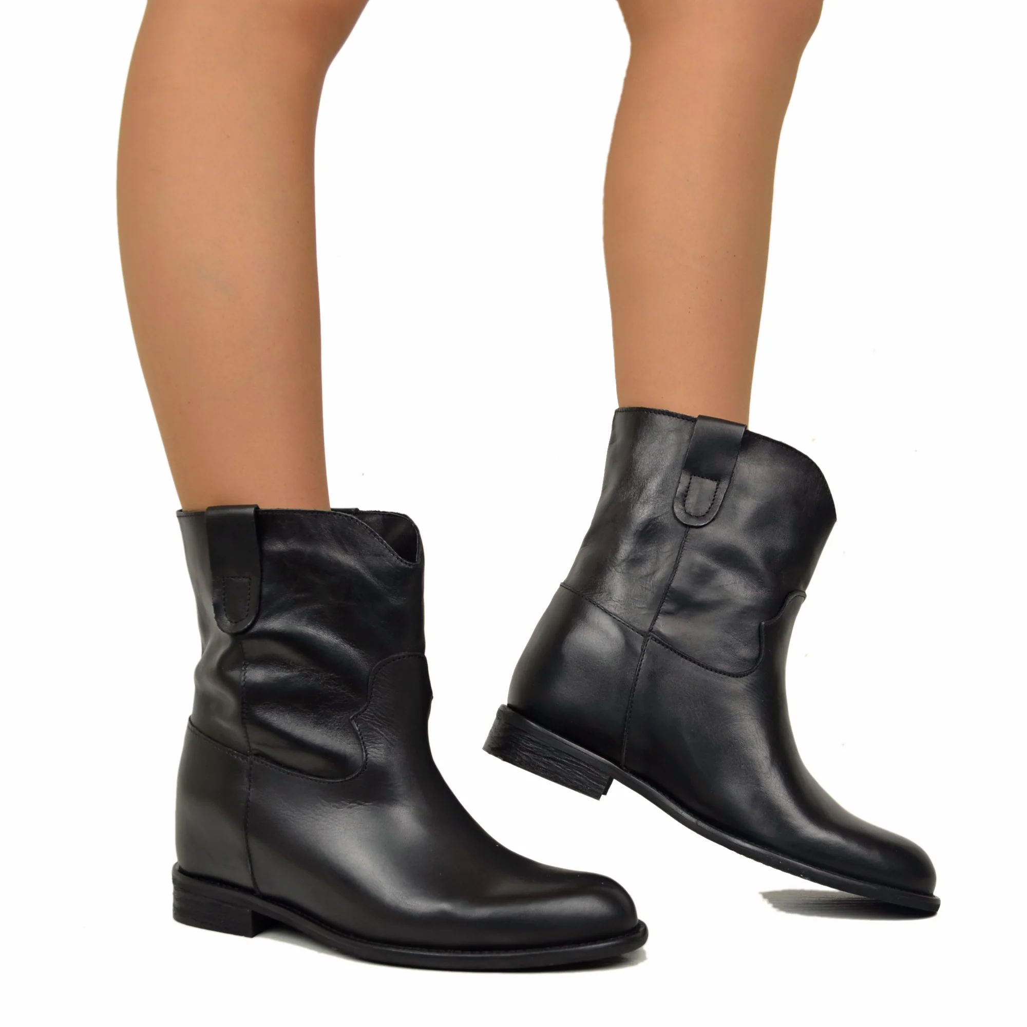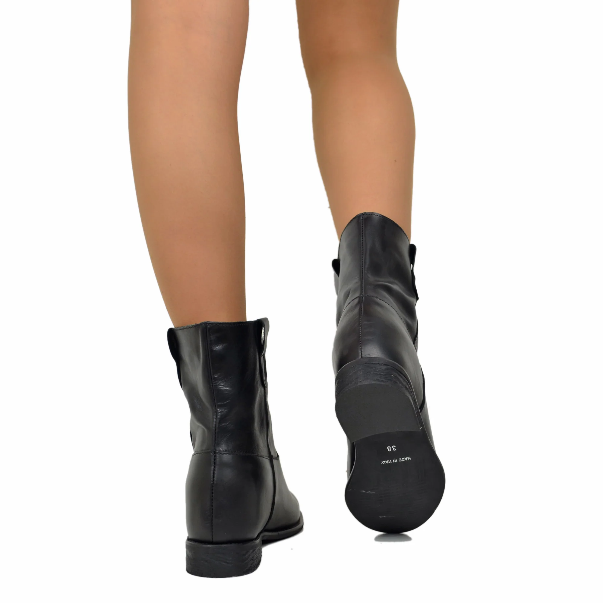 Stivaletti Donna in Pelle Neri con Zeppa Interna Made in Italy