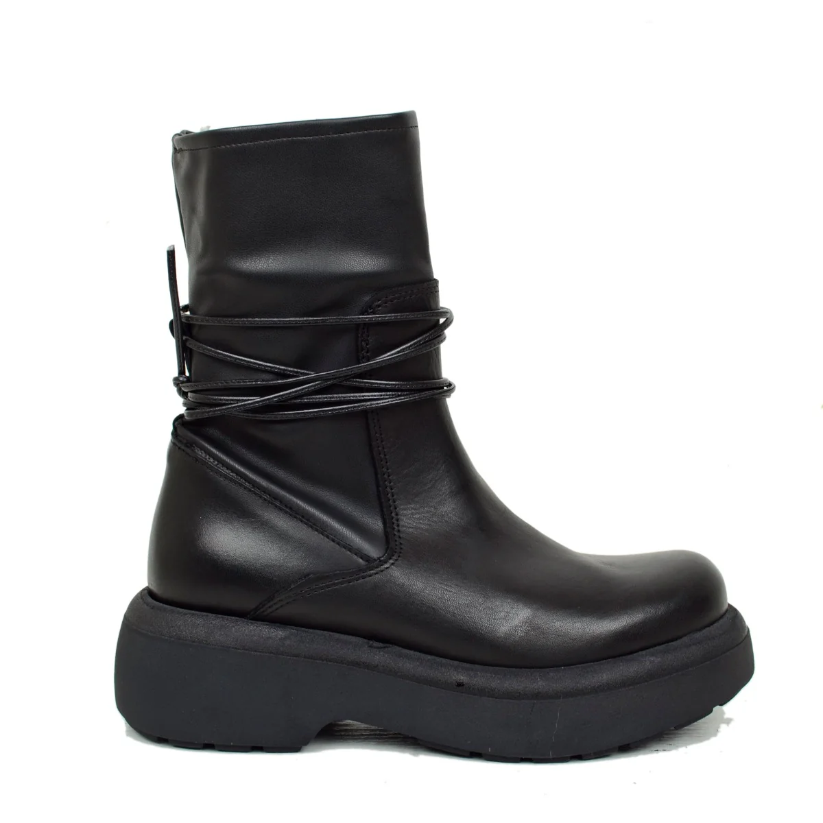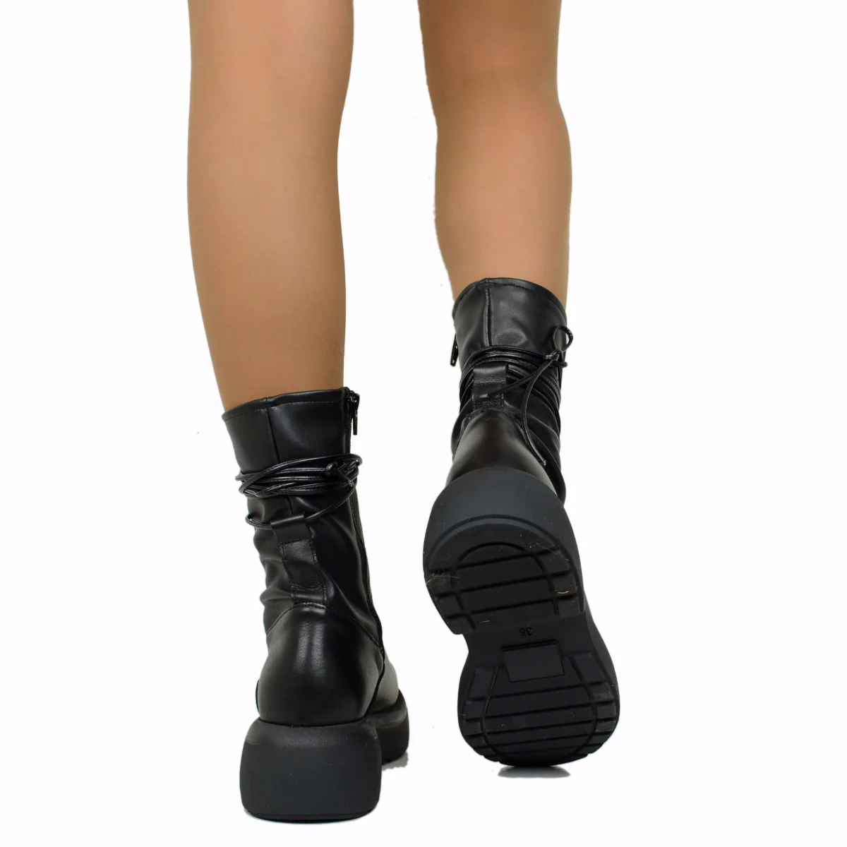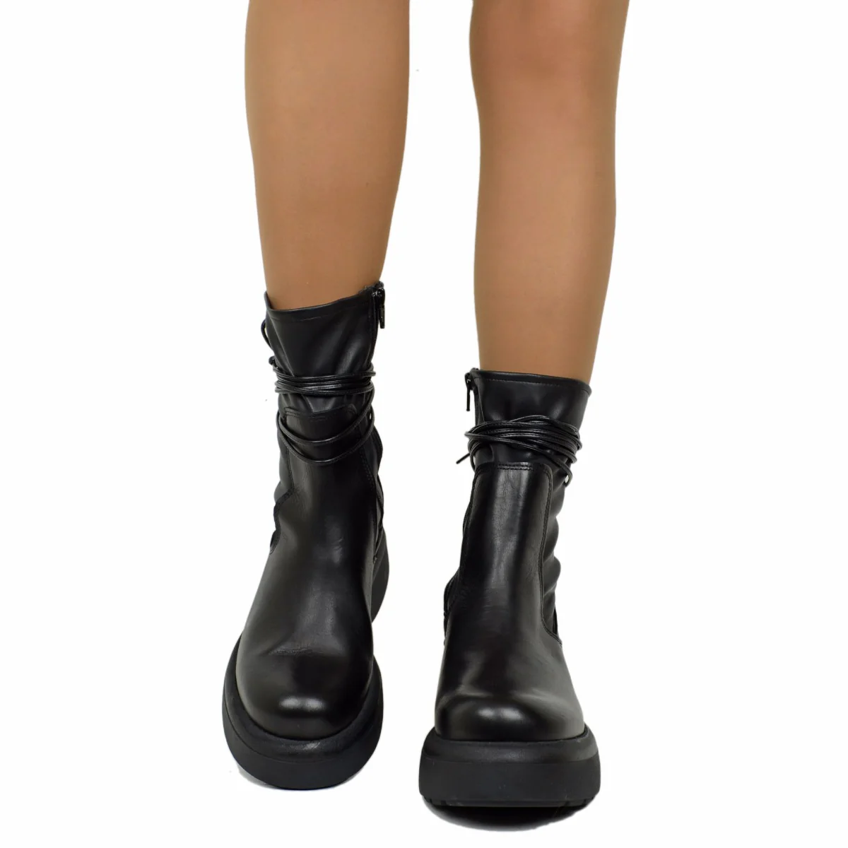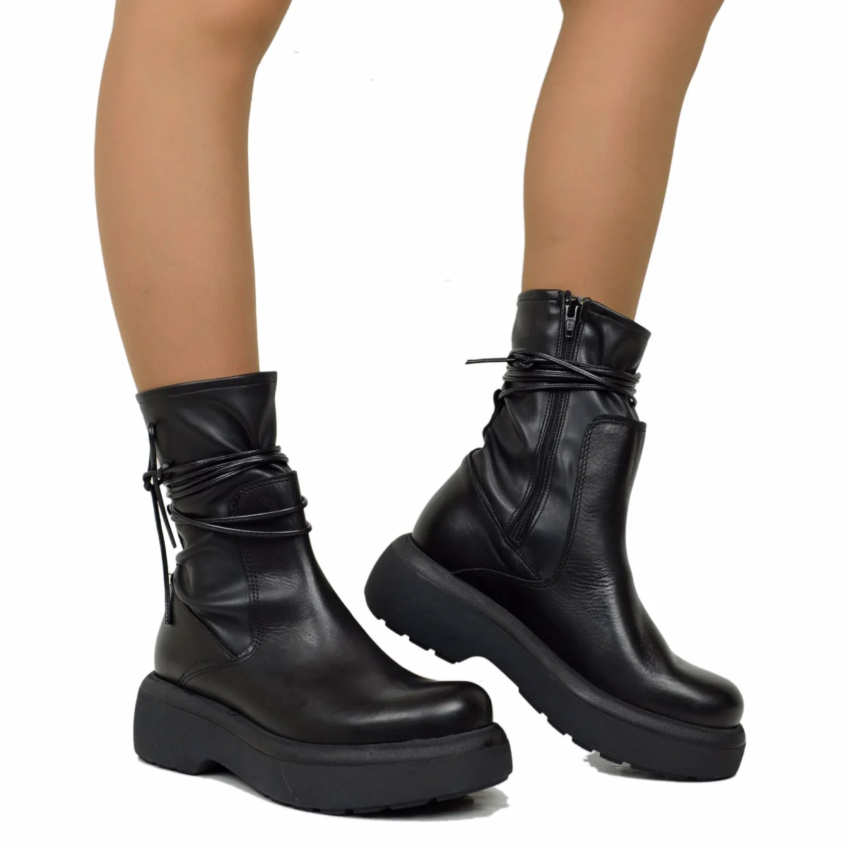 Stivaletti Donna Platform Elasticizzati con Lacci Made in Italy. Stivaletti Donna Neri con Zip Laterale.