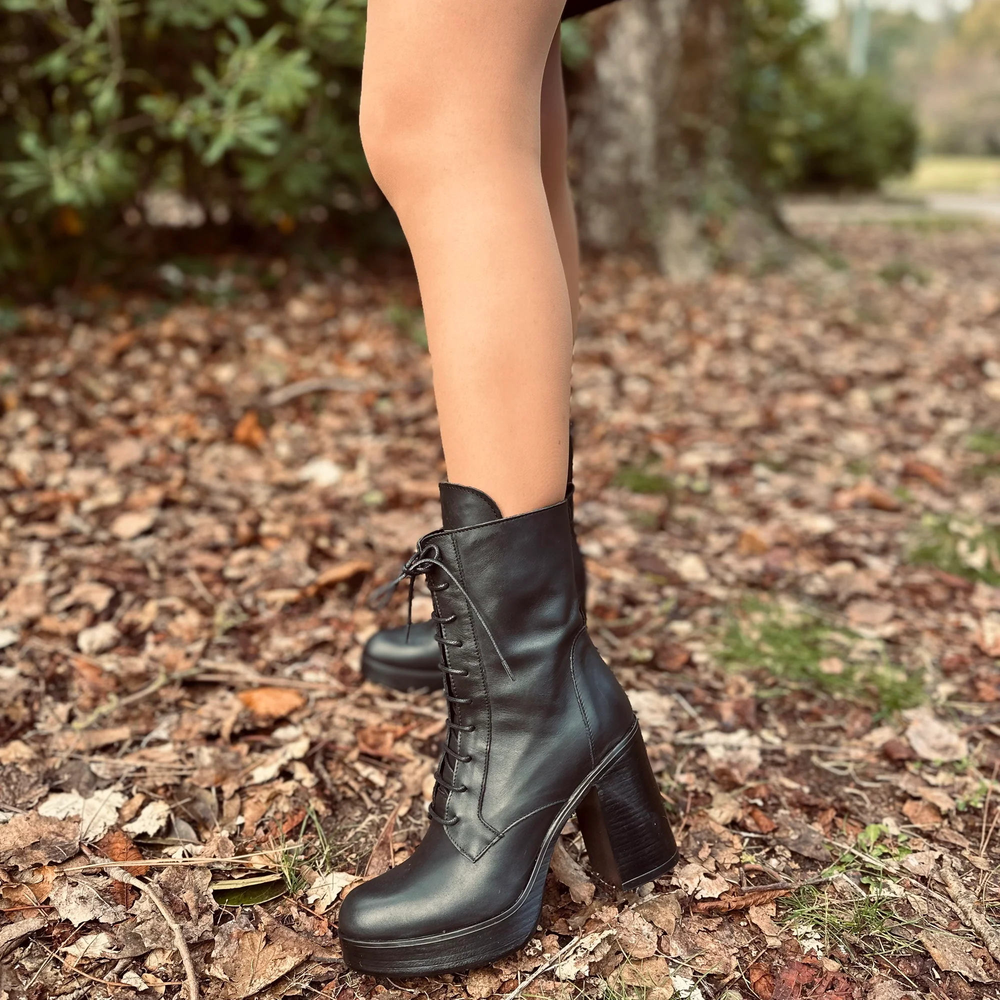 Rinnova il tuo stile con i nostri Stivaletti Rock da Donna con Plateau, Made in Italy. Tacco alto e largo, con zip laterale e lacci. Aggiungi al tuo outfit un tocco di ribellione e scopri l’artigianalitร del Made in Italy.