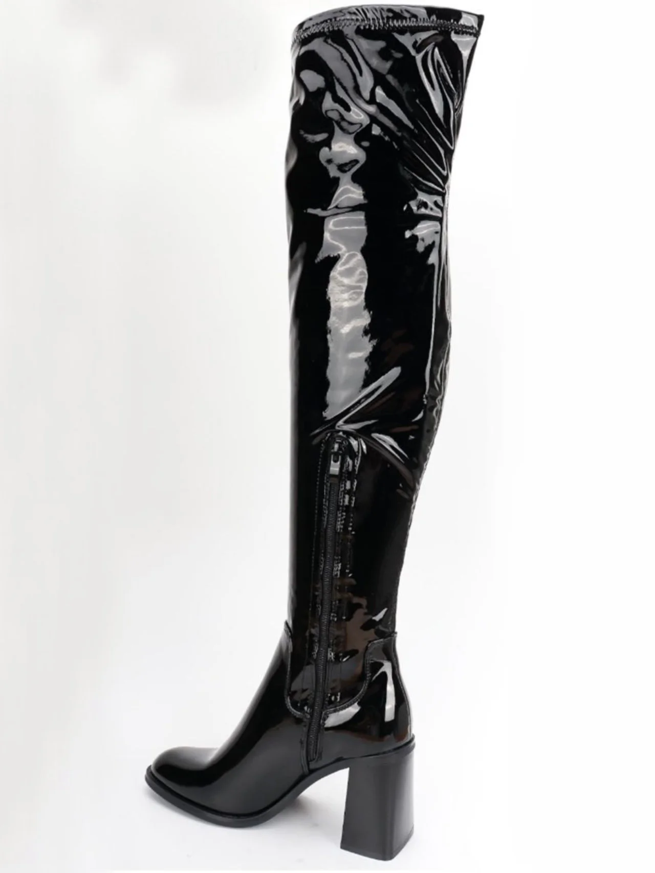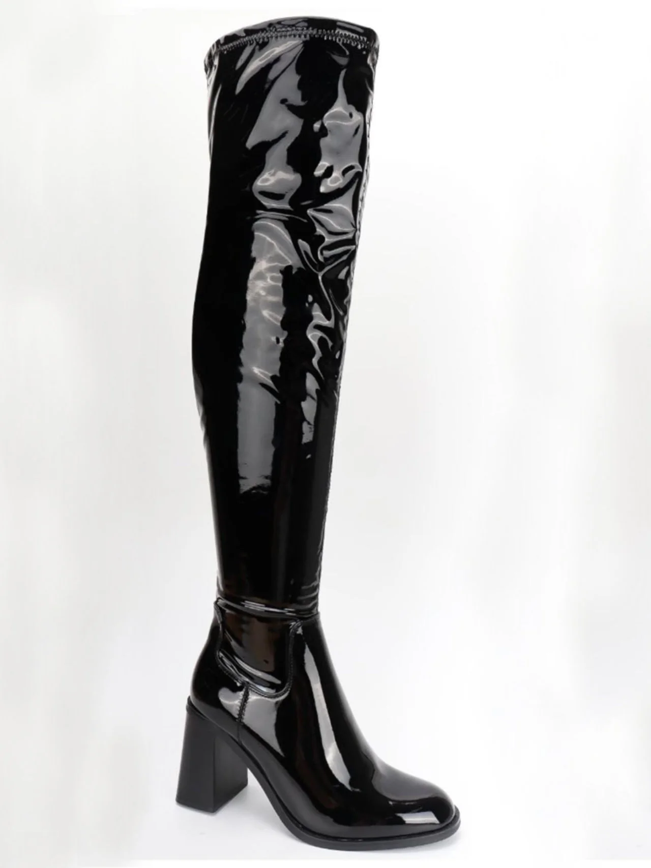 - Calzare trendy ed eleganti, questi stivali alti di gamba lucidi sopra il ginocchio non possono mancare nel tuo guardaroba. Realizzati in materiale ecopelle di ottima qualità, un tacco grosso li rende anche comodi!
