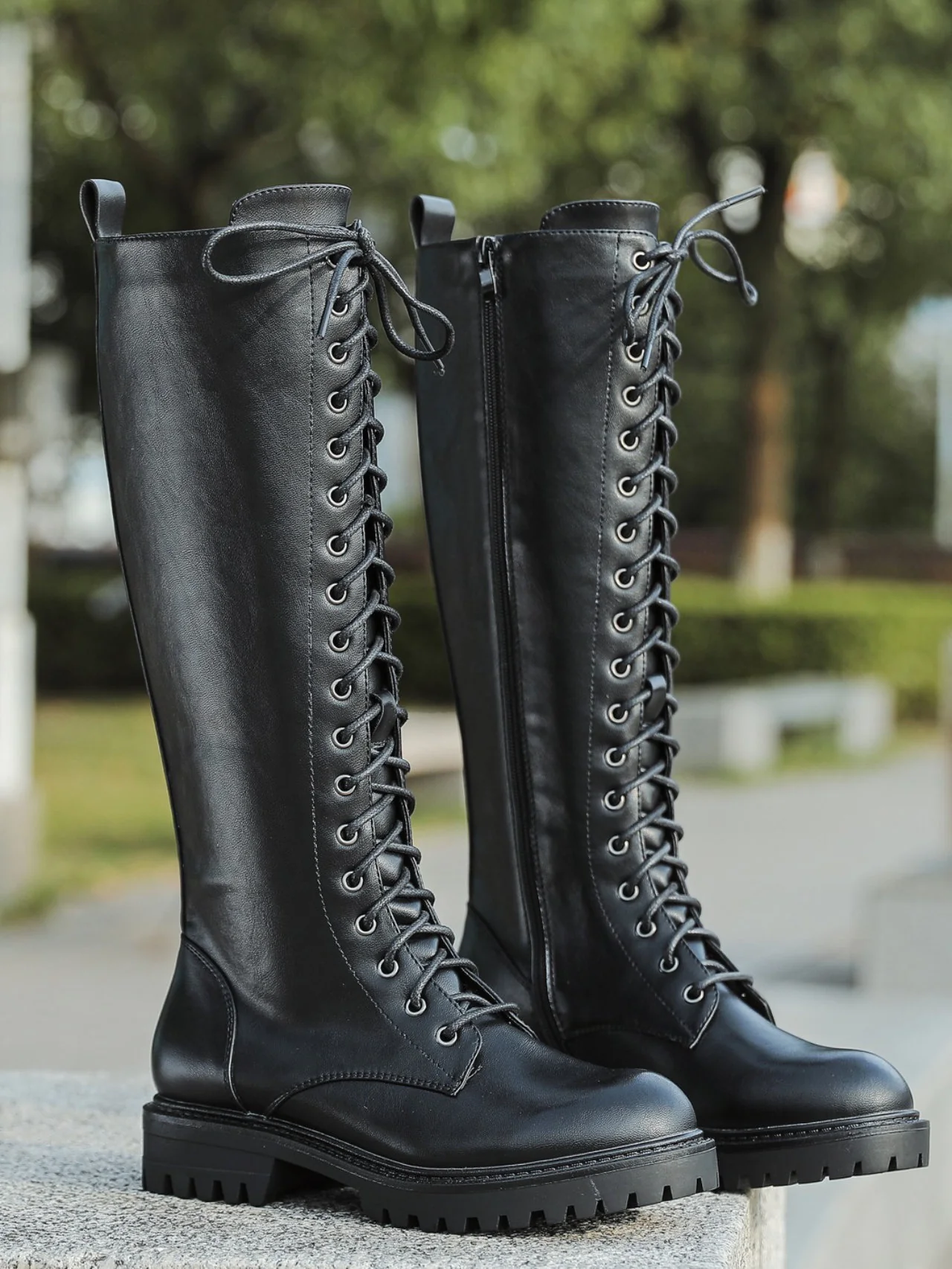 - Stivali da donna con lacci, cerniera a tutta lunghezza e tomaia in ecopelle resistente con para a carrarmato: un look originale e audace!