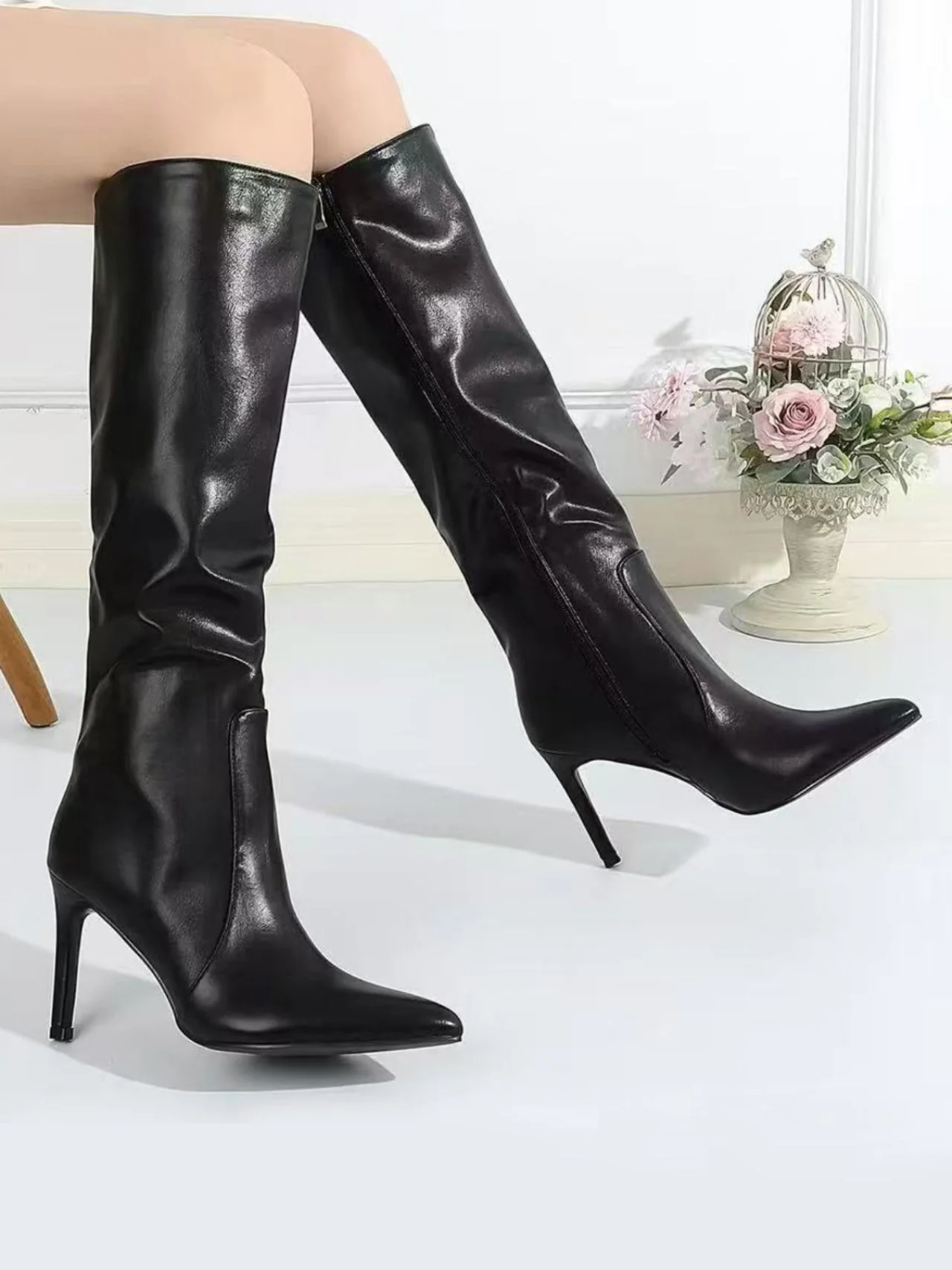 - Scopri l’eleganza senza compromessi con questi stivali alti in ecopelle, il capo imprescindibile per chi desidera uno stile sofisticato e contemporaneo. La punta e il tacco a spillo creano una silhouette affascinante e raffinata, perfetti per elevare qualsiasi look con un tocco di classe. Un investimento di stile che non passa inosservato.