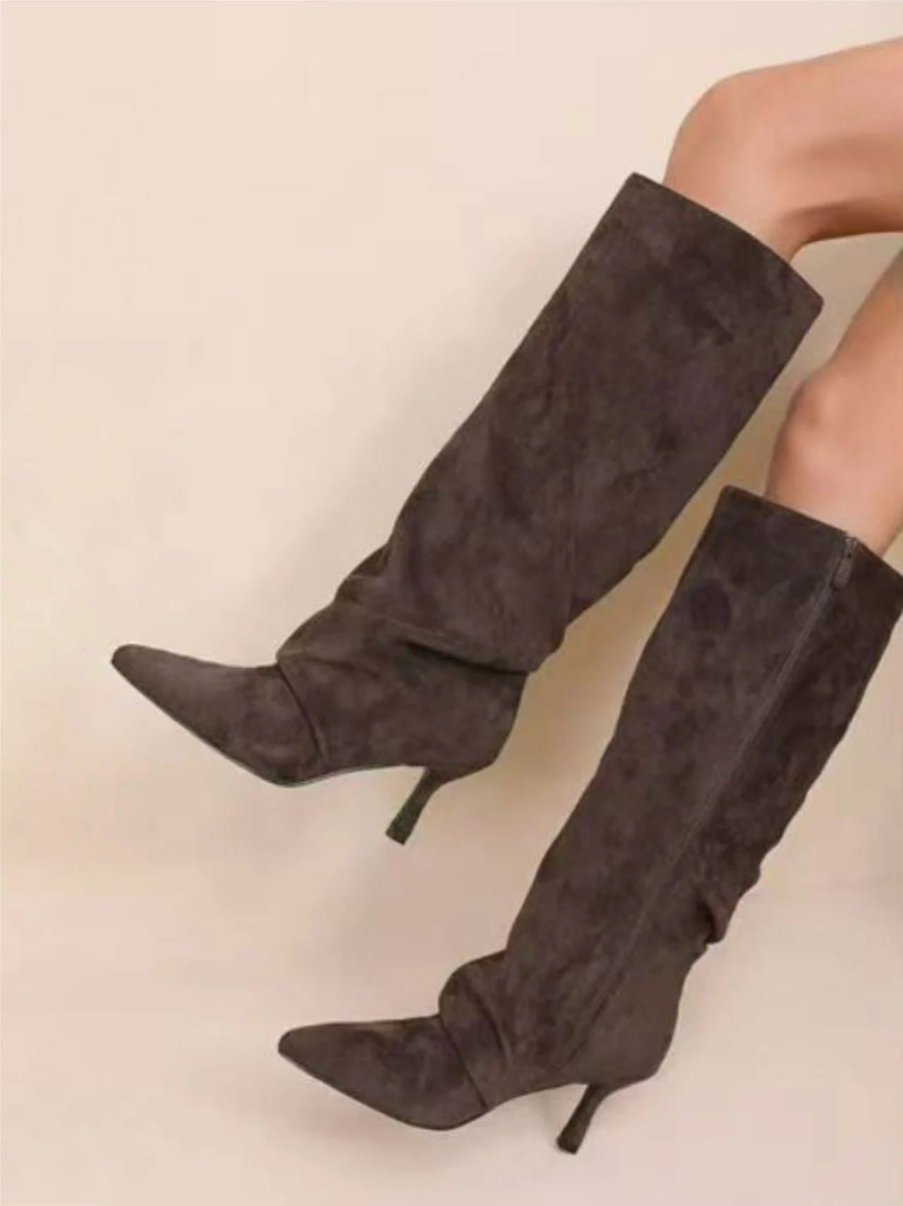 Stivali arricciati scamosciati