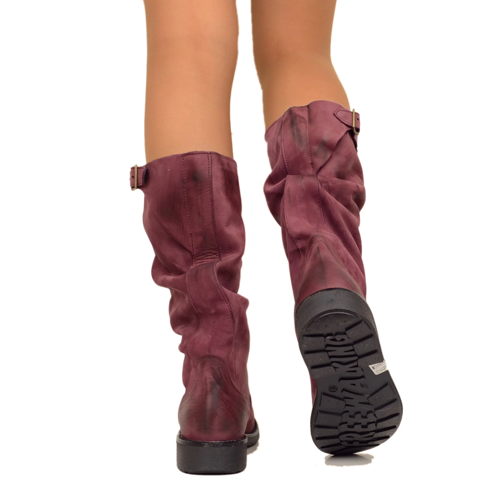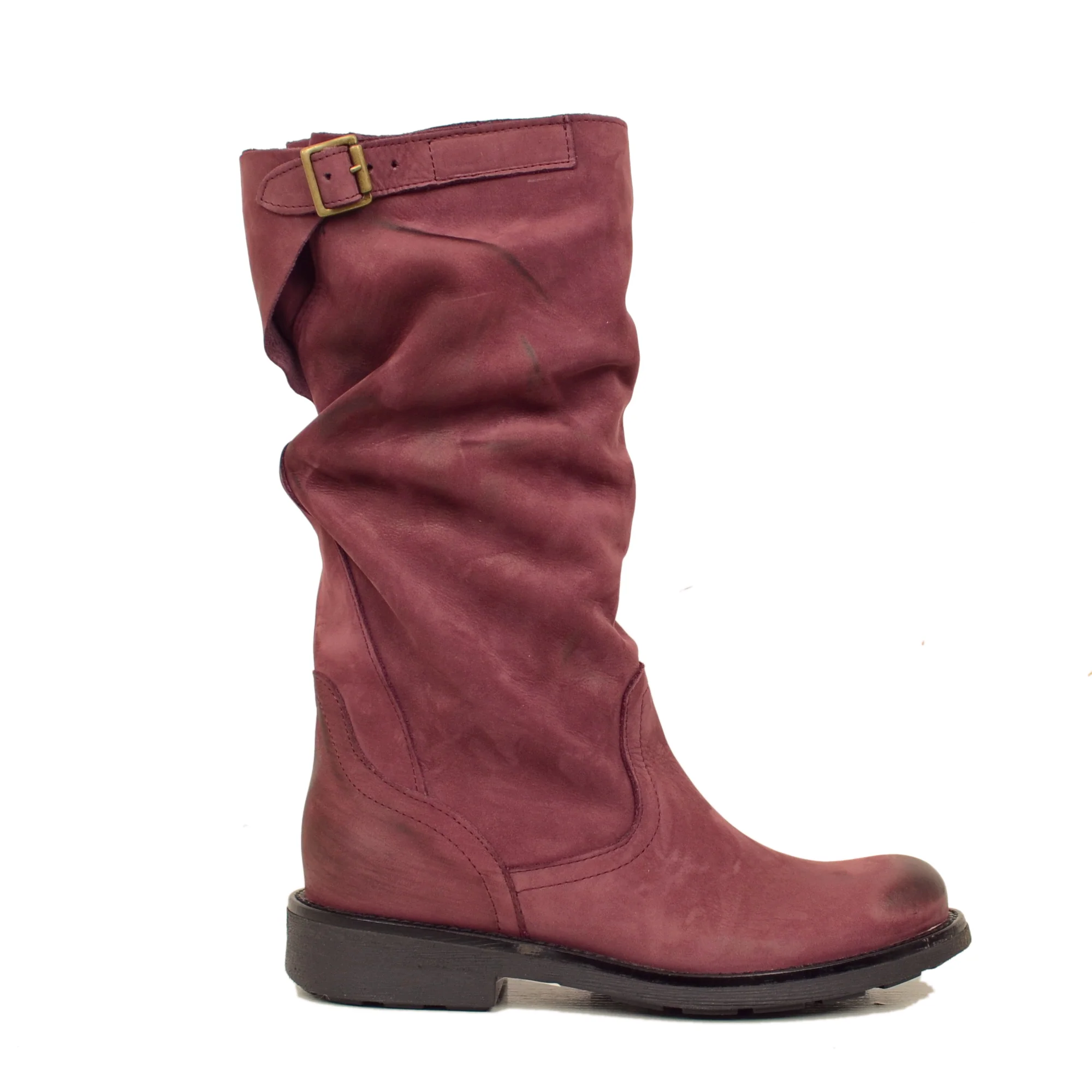Stivali Biker Boots a Metà Polpaccio in Pelle Vintage Bordeaux