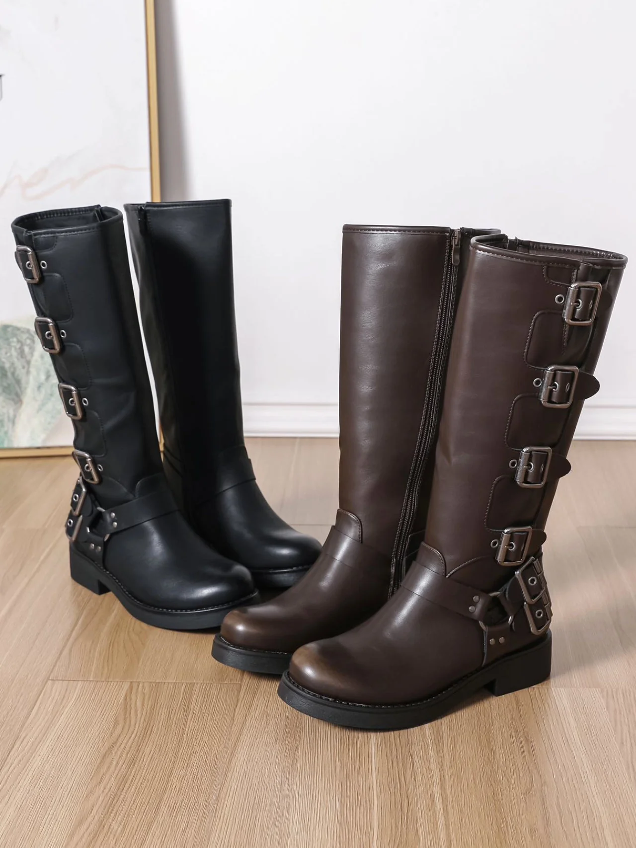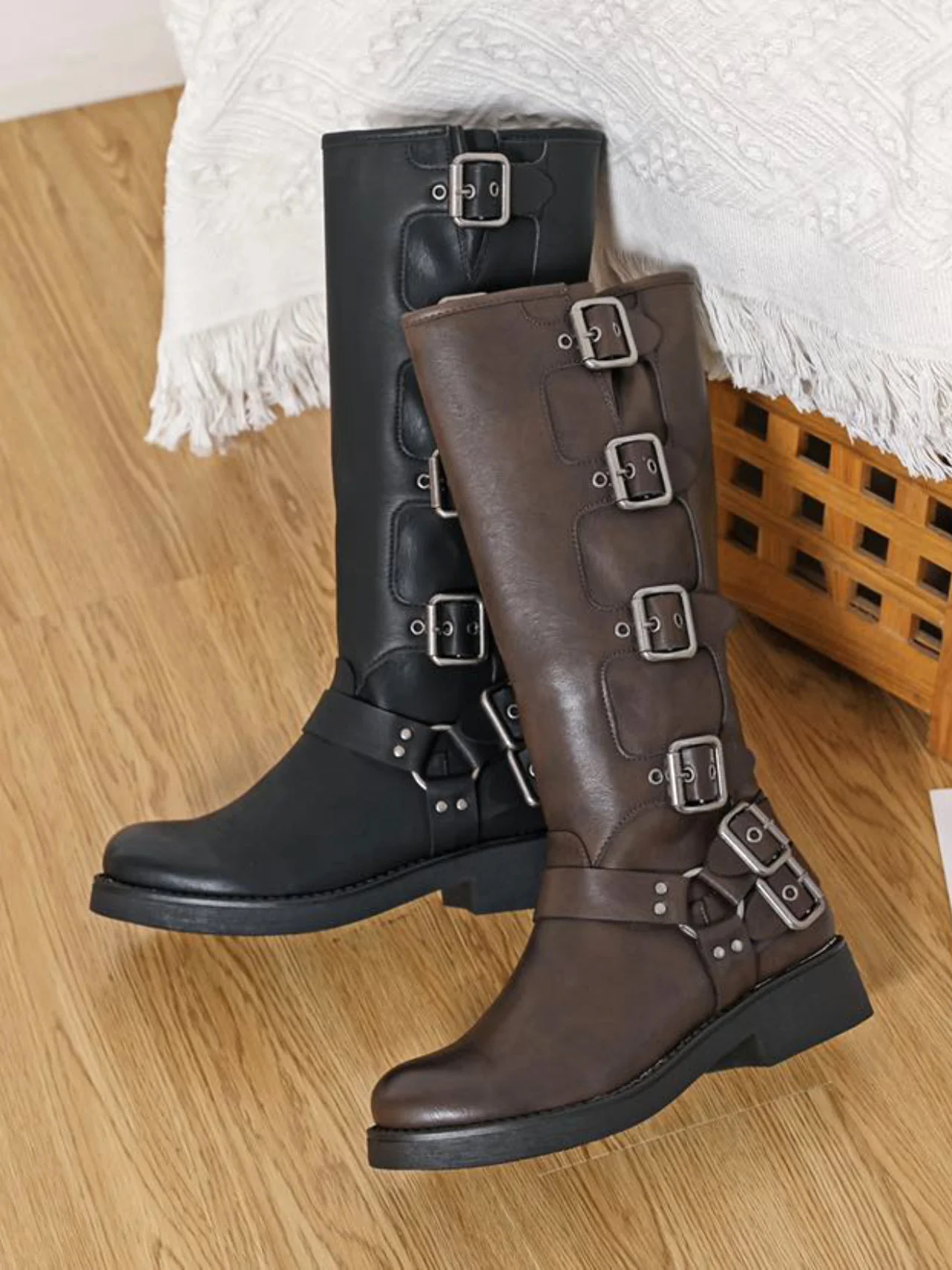 - Aggiungi un tocco di glamour e tendenza al tuo armadio con i nuovi stivali alti da donna con fibbie. Realizzati in ecopelle di qualità, questi stivali sono comodi e resistenti, perfetti per un look sofisticato e di classe. Non perdere l’occasione di migliorare il tuo stile con questi must-have!