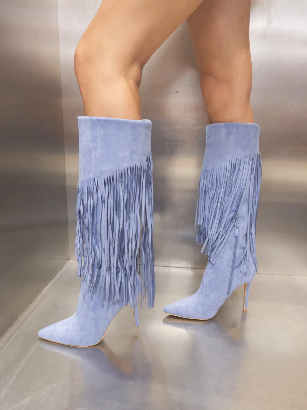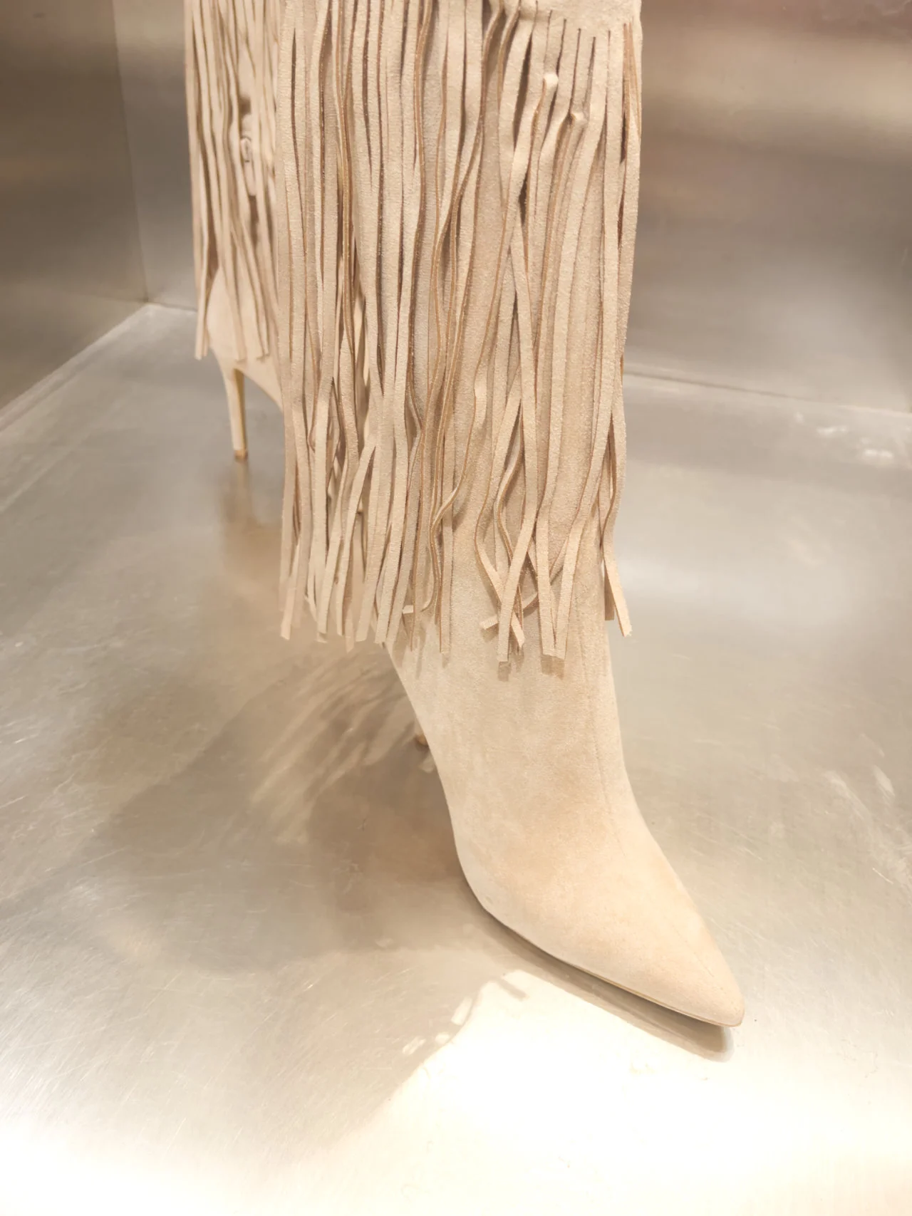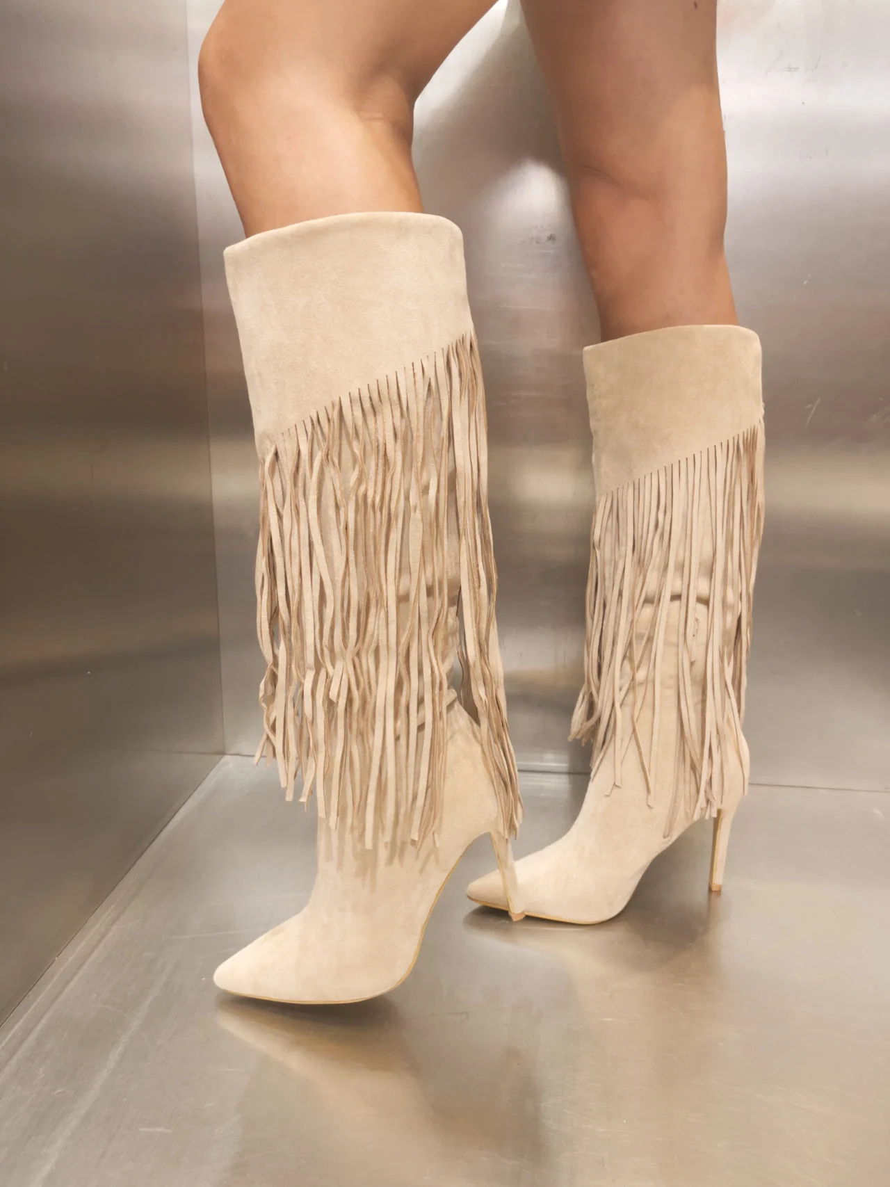 I nostri stivali con frange, sono fatti in ecopelle effetto camoscio e sono l’accessorio perfetto per rendere ogni outfit unico! Con tacco a spillo. Non resisterete alla versatilità, ai colori e allo stile di questi stivali con frange, che aggiungeranno carattere ed eleganza ai vostri look!