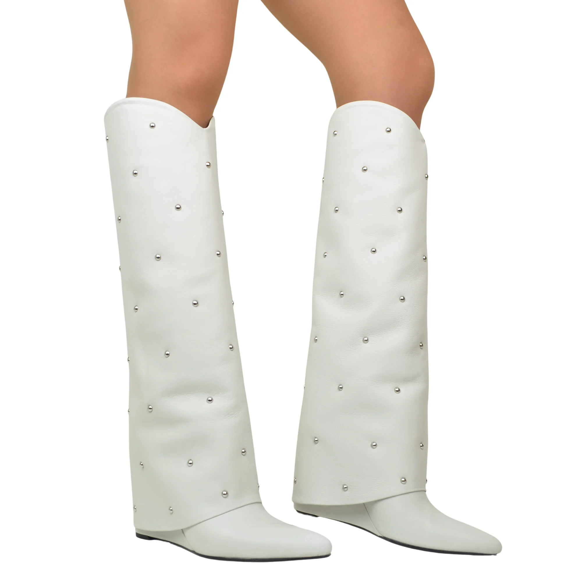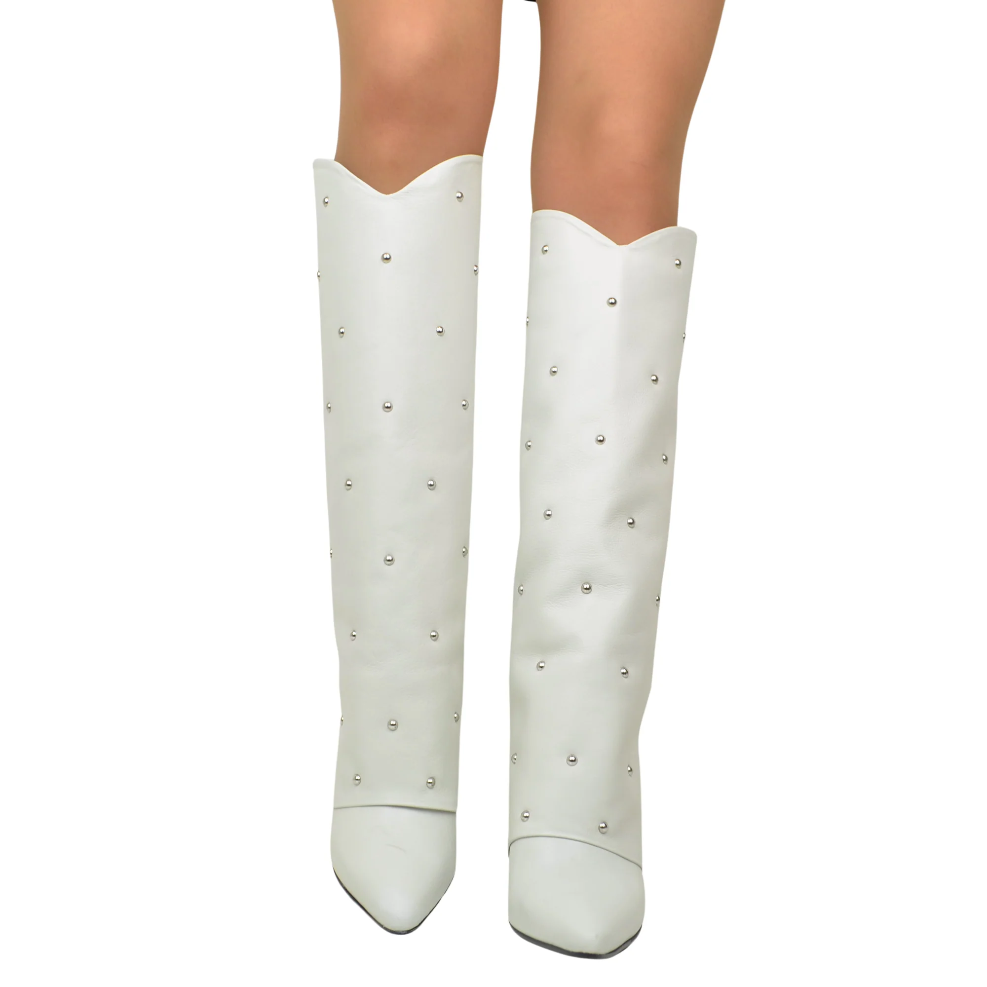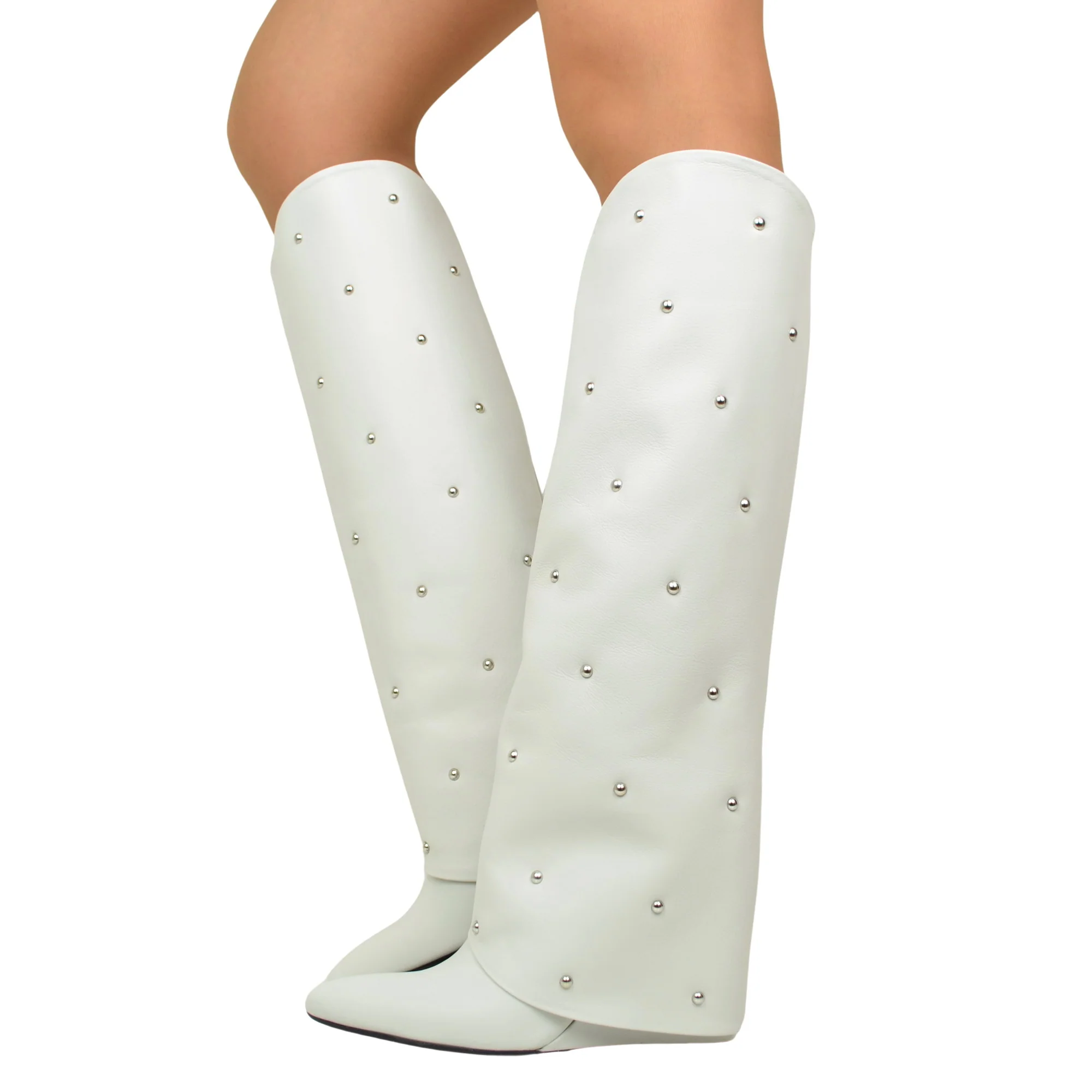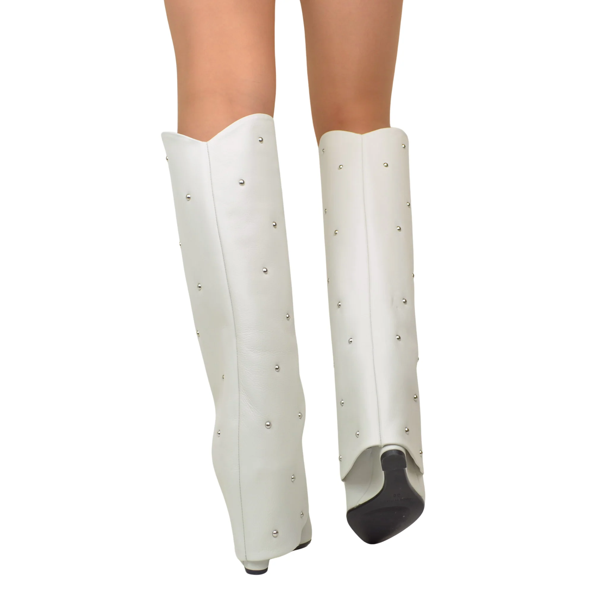 Stivali con Ghetta e Borchie Argentate Tacco a Zeppa di 9 Cm Limited Edition Bianchi