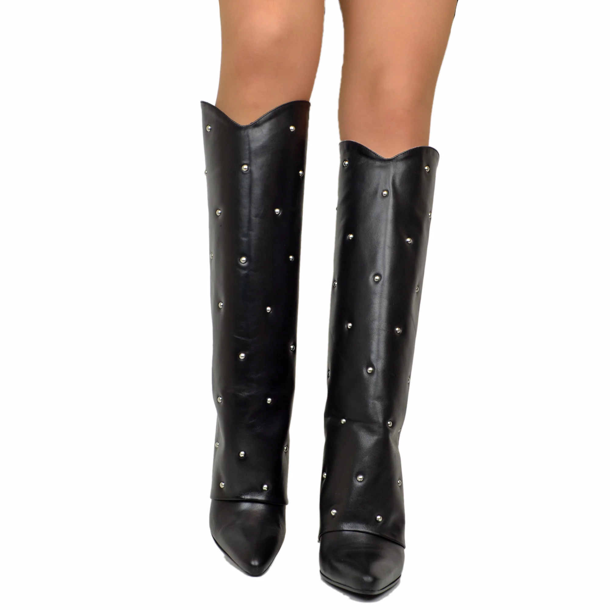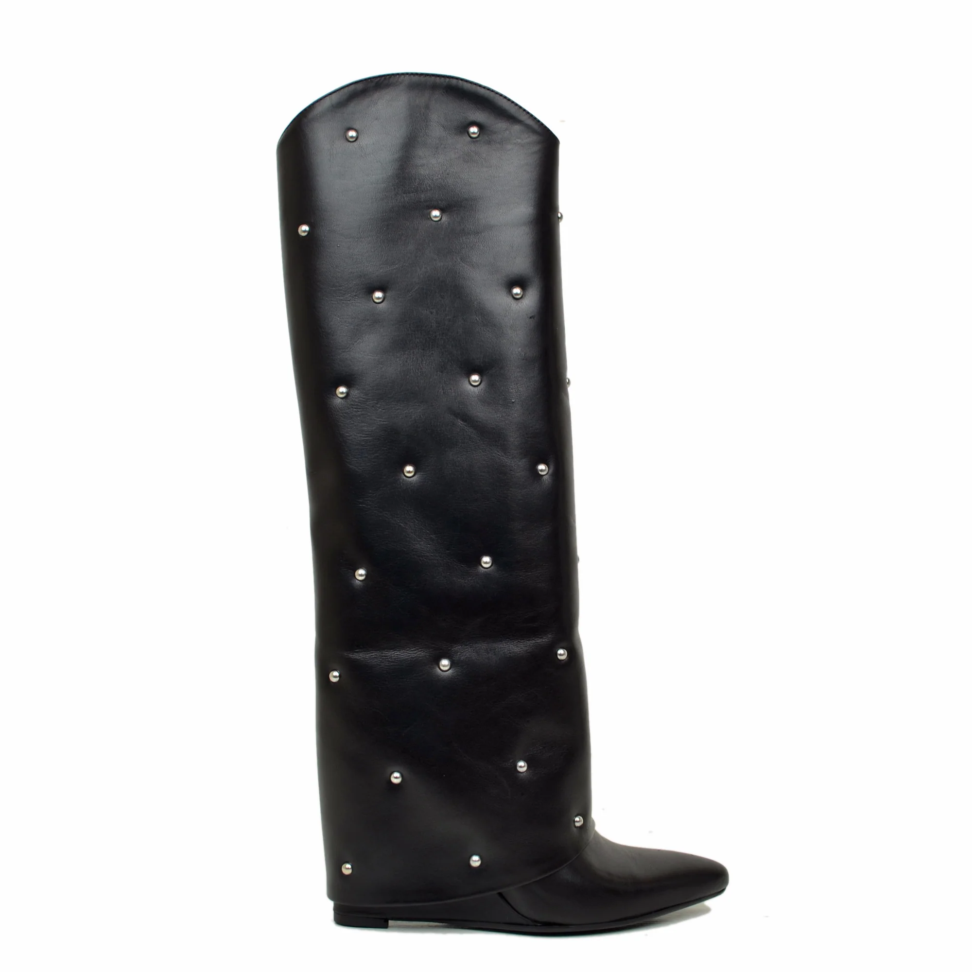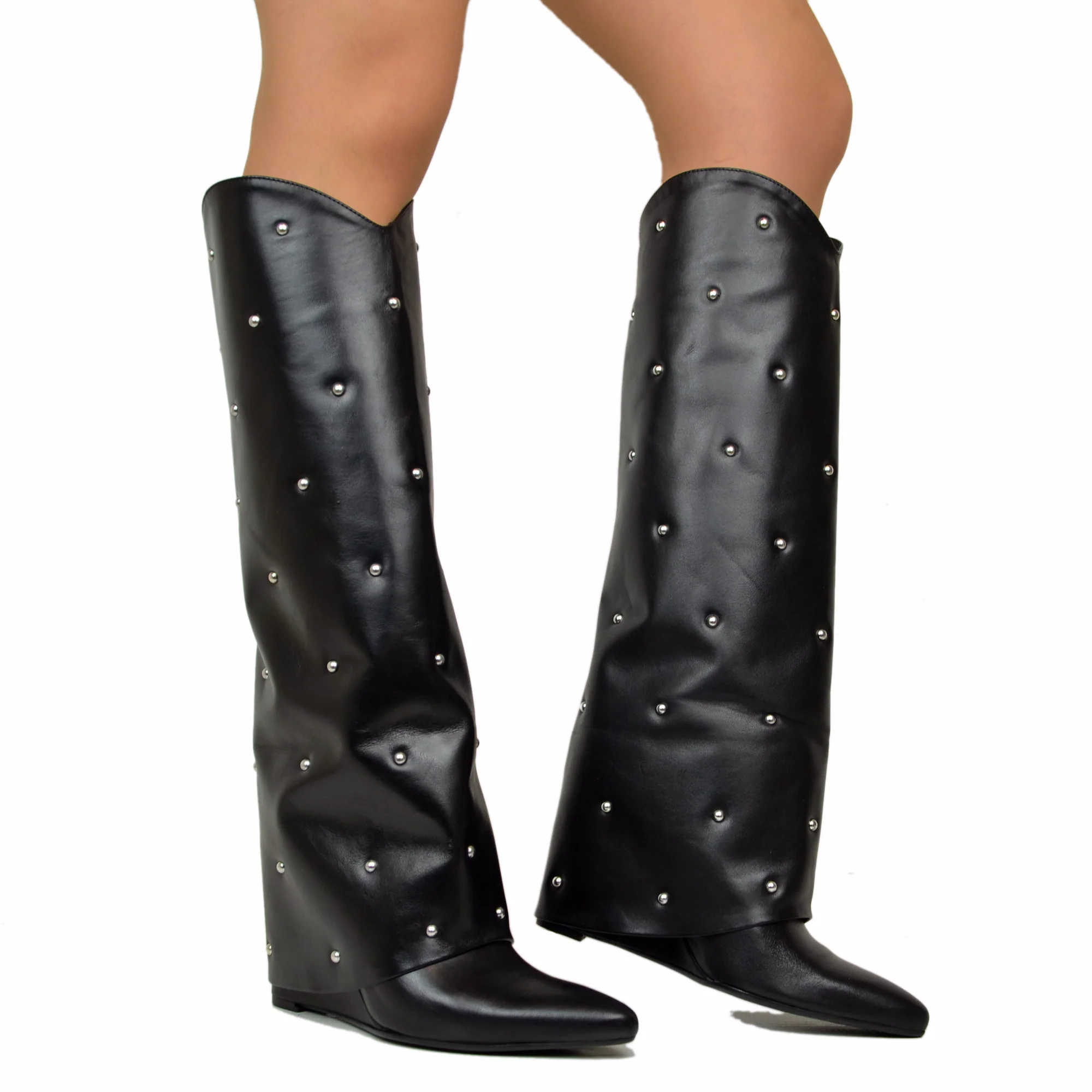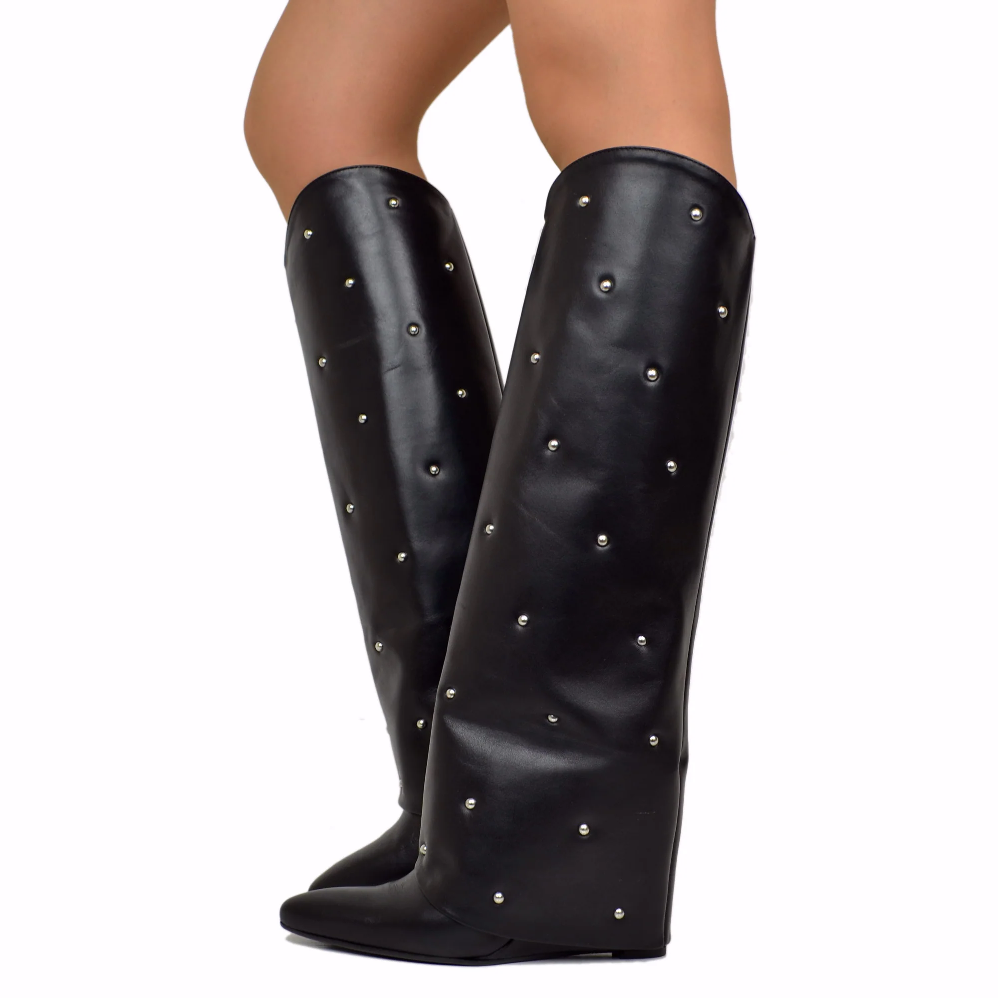 Stivali con Ghetta e Borchie Argentate Tacco a Zeppa di 9 Cm Limited Edition