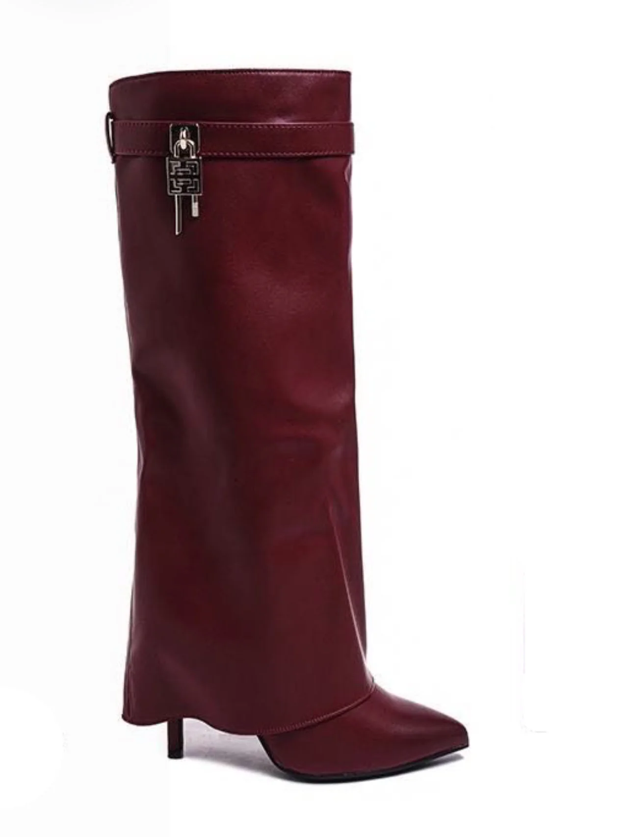 Stivali eleganti con risvolto e pendaglio in pelle sintetica. Versatili e sofisticati, perfetti per completare qualsiasi outfit con stile.