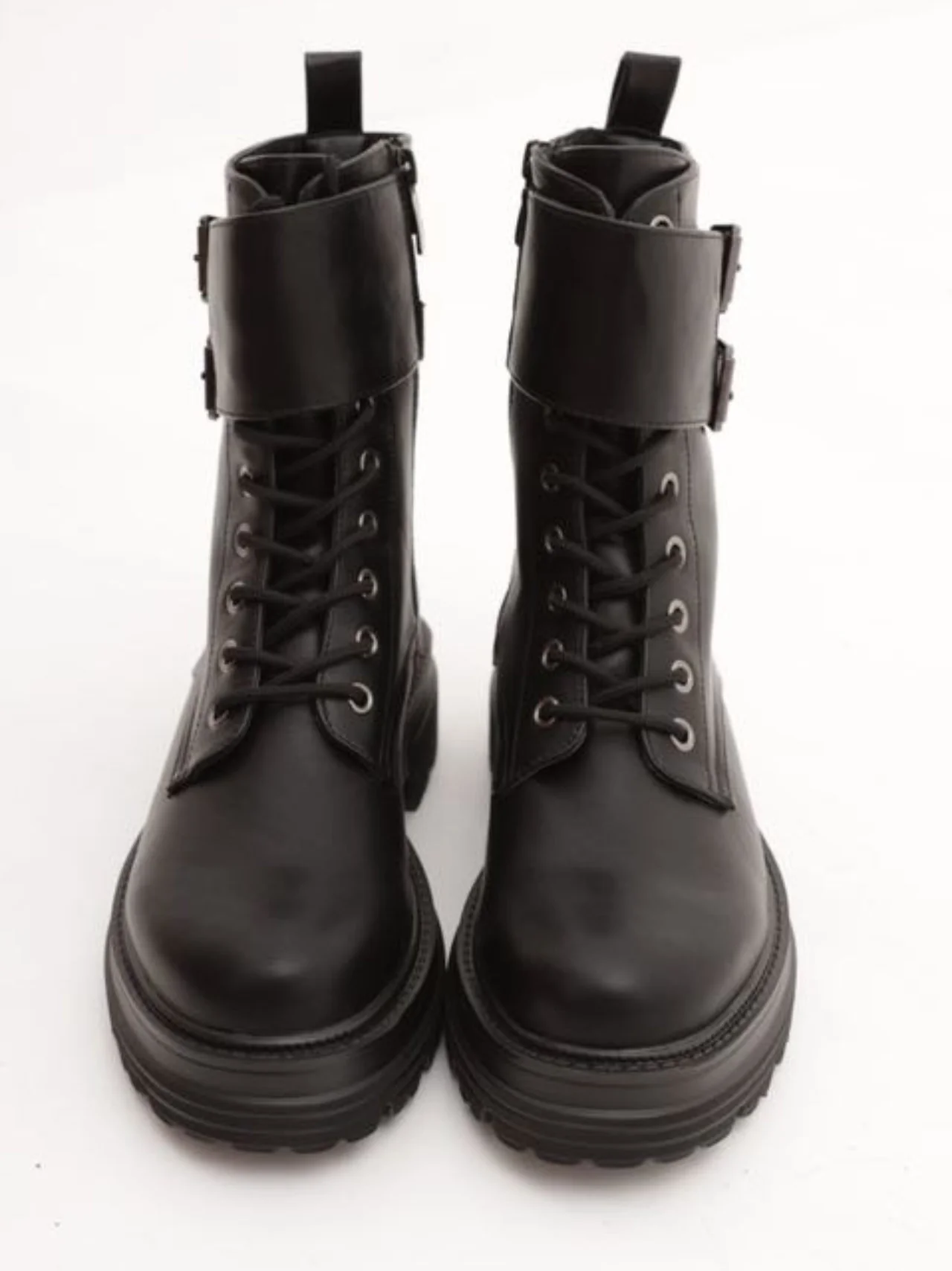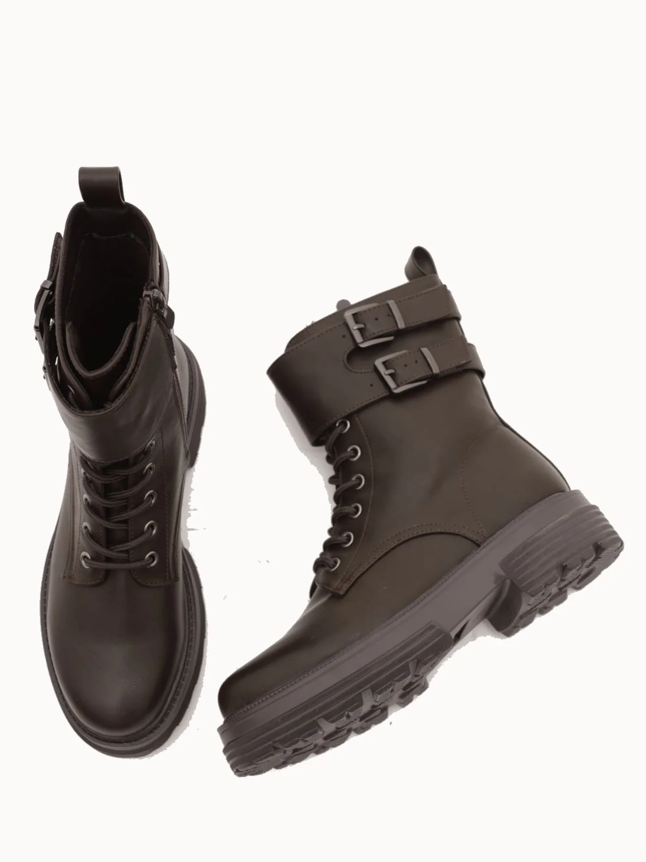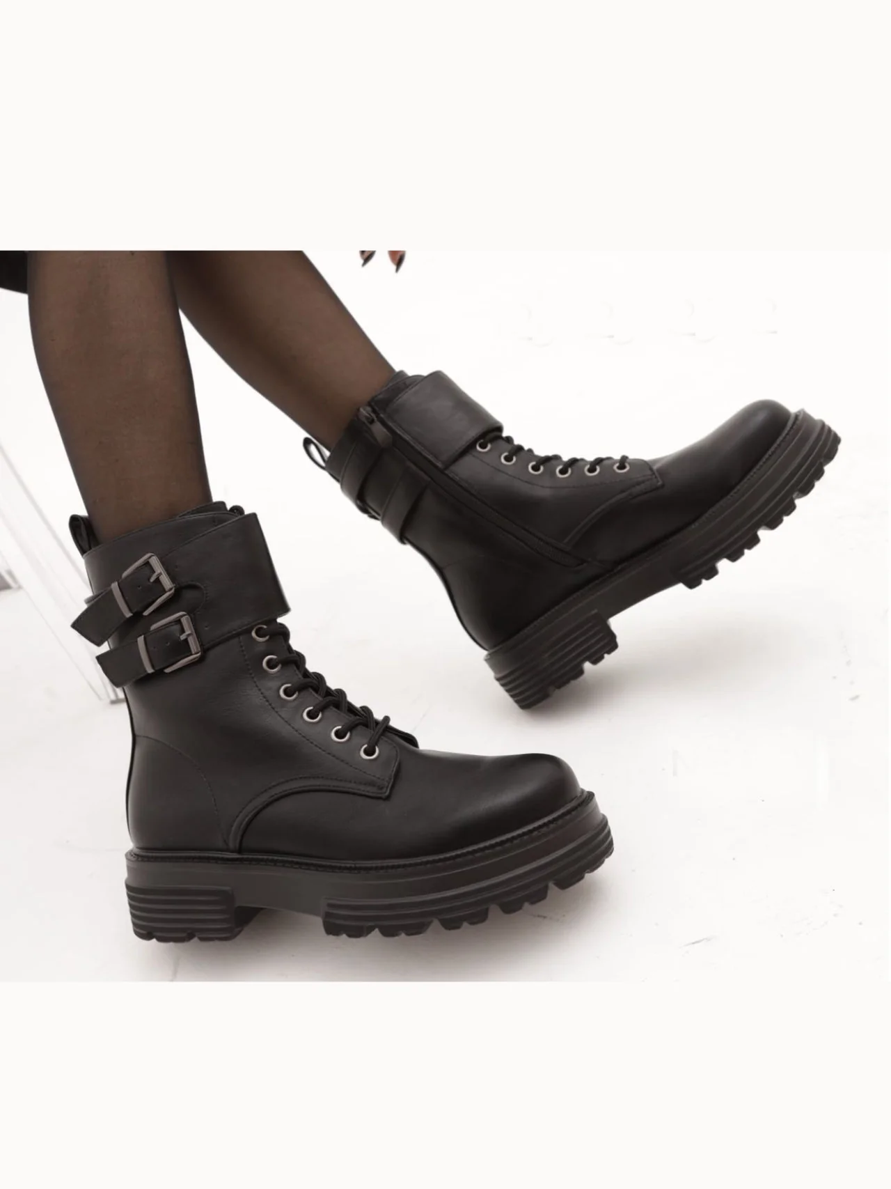 Innalza il tuo stile con i nostri esclusivi stivali stringati con fibbie. Grazie alla pregiata pelle sintetica, otterrai un look elegante e impeccabile.