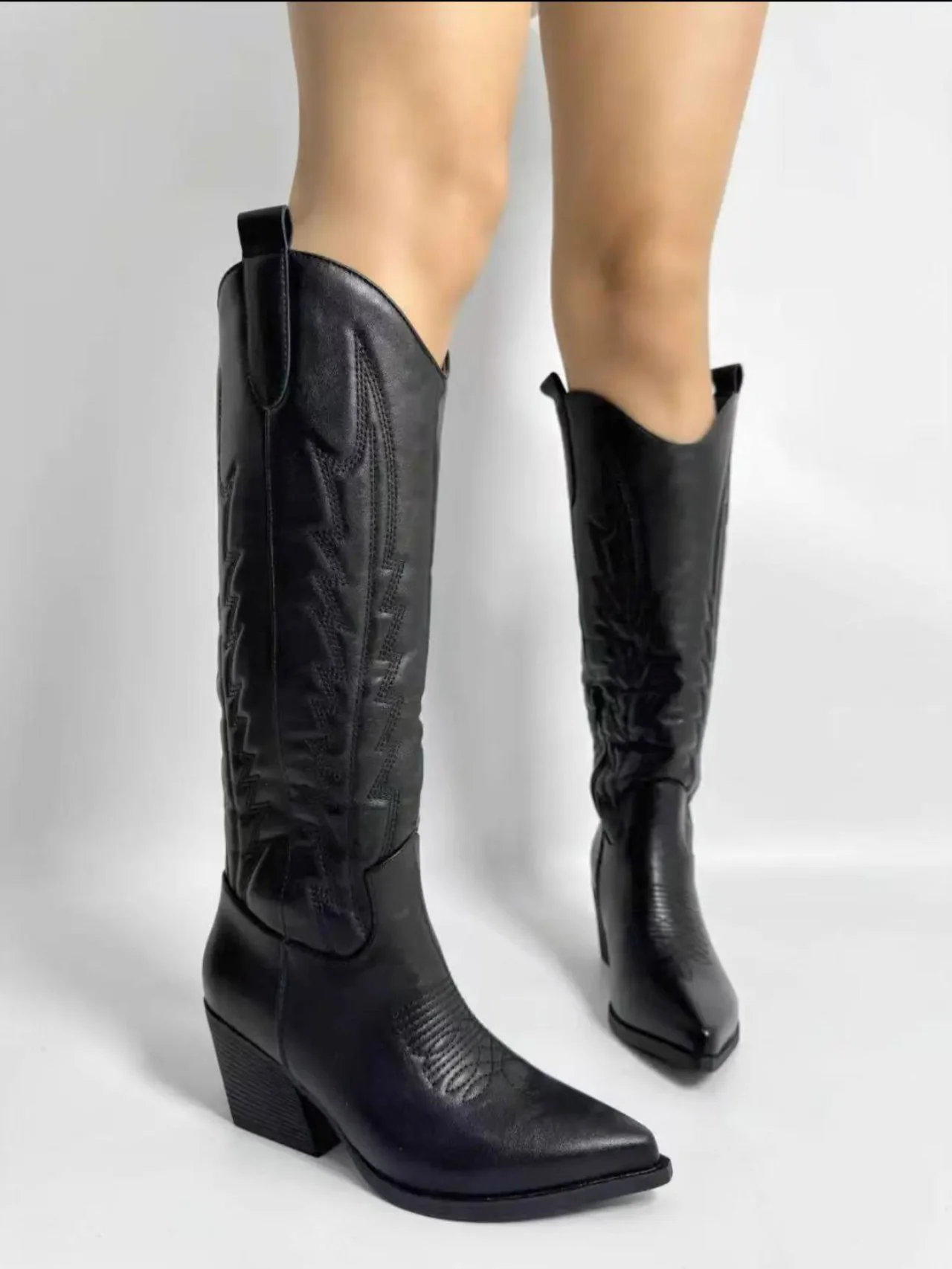 Aggiungi eleganza al tuo stile con gli stivali texani con cuciture, ideali per un outfit raffinato e sempre trendy..