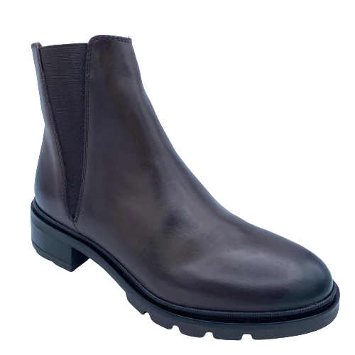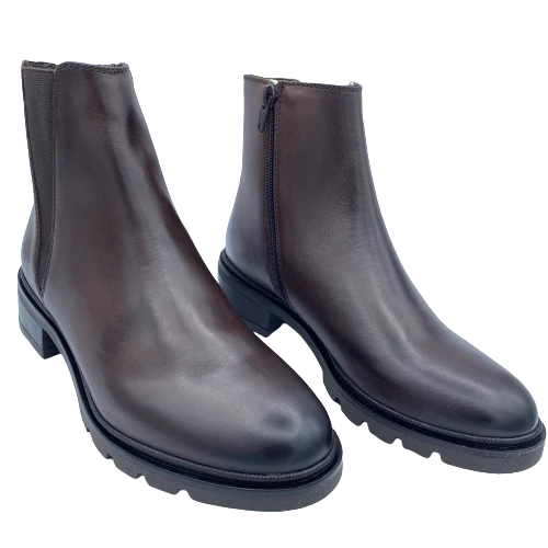 Stivaletto in pelle testa moro con elastico laterale e zip interna di chiusura, fondo gomma
