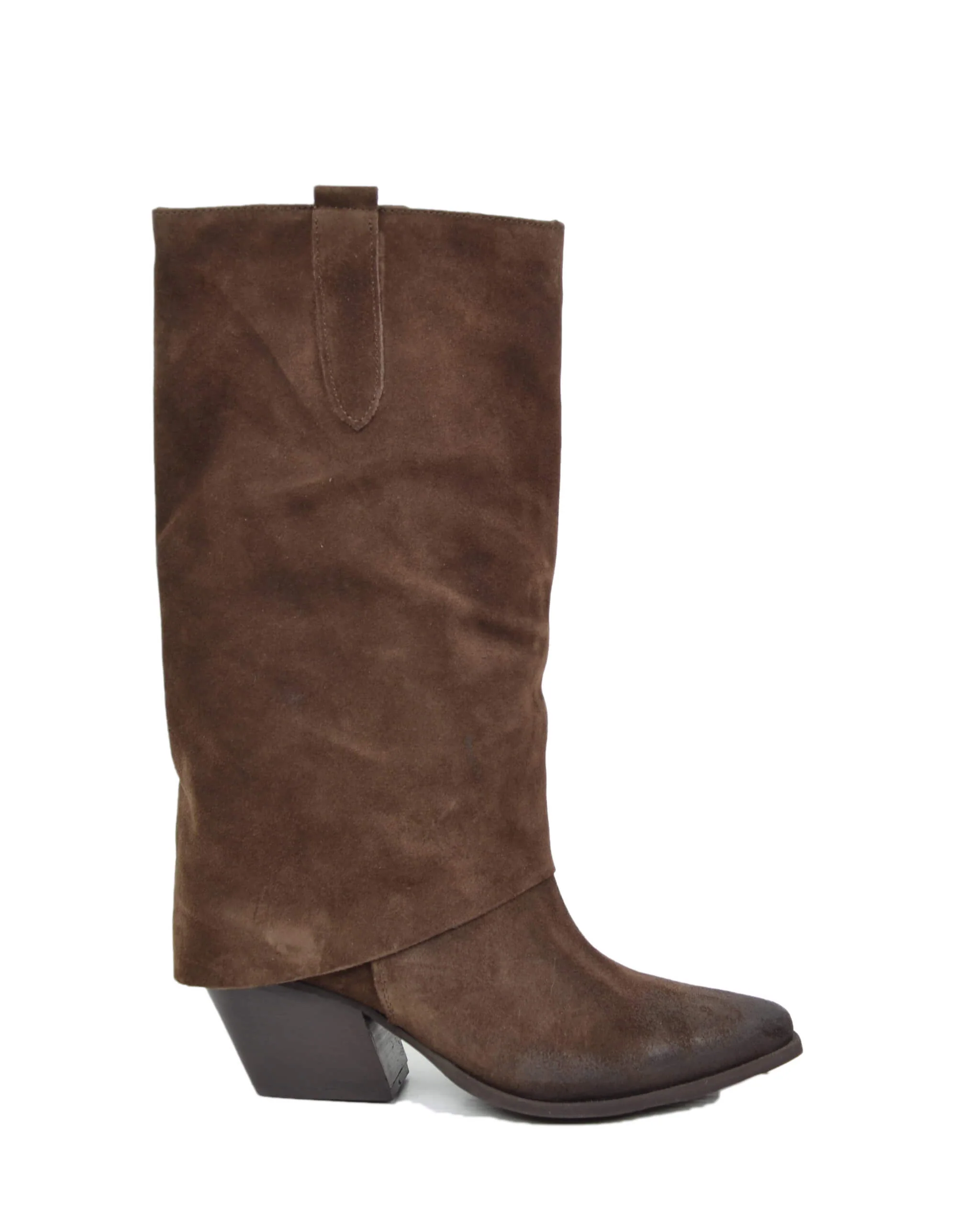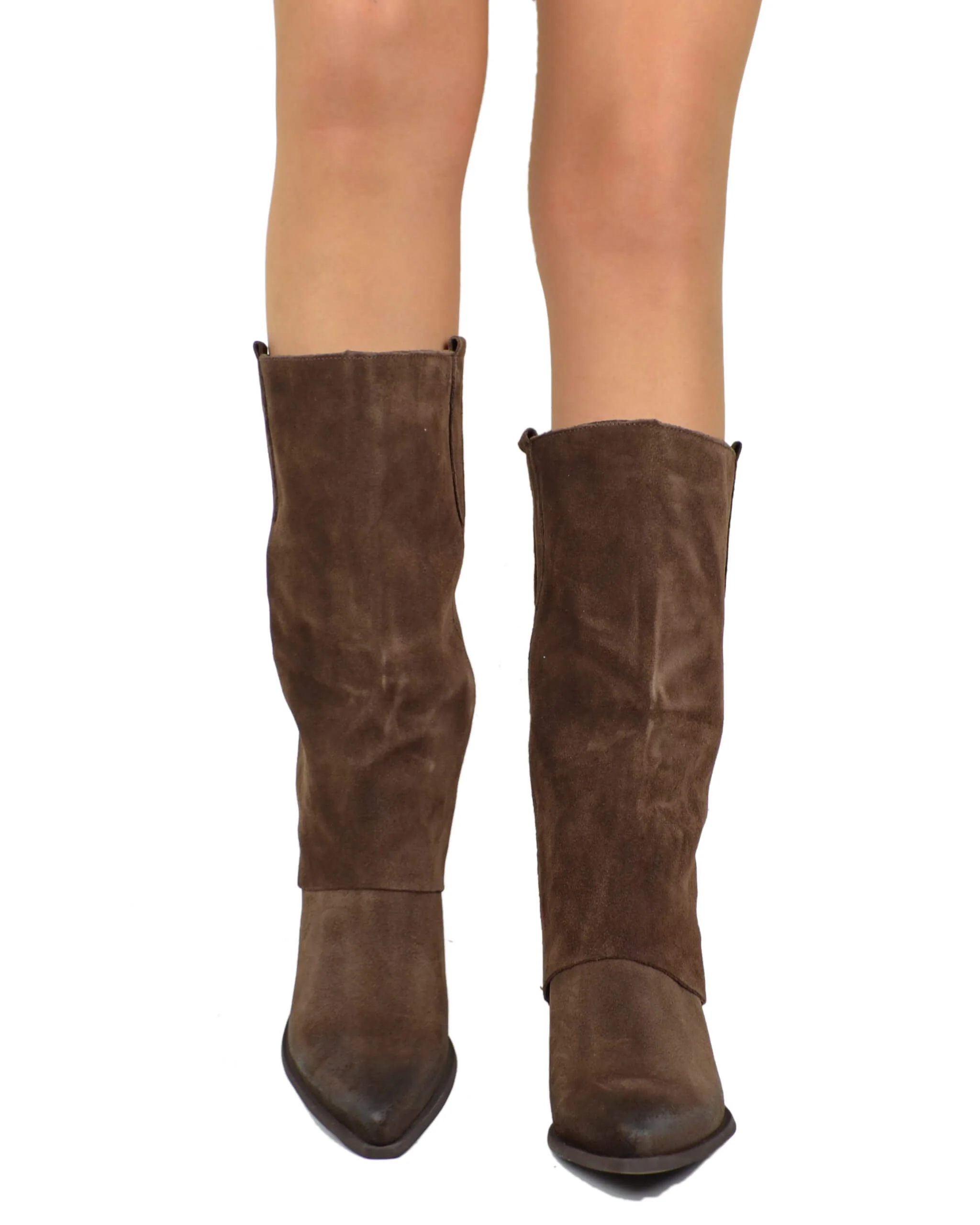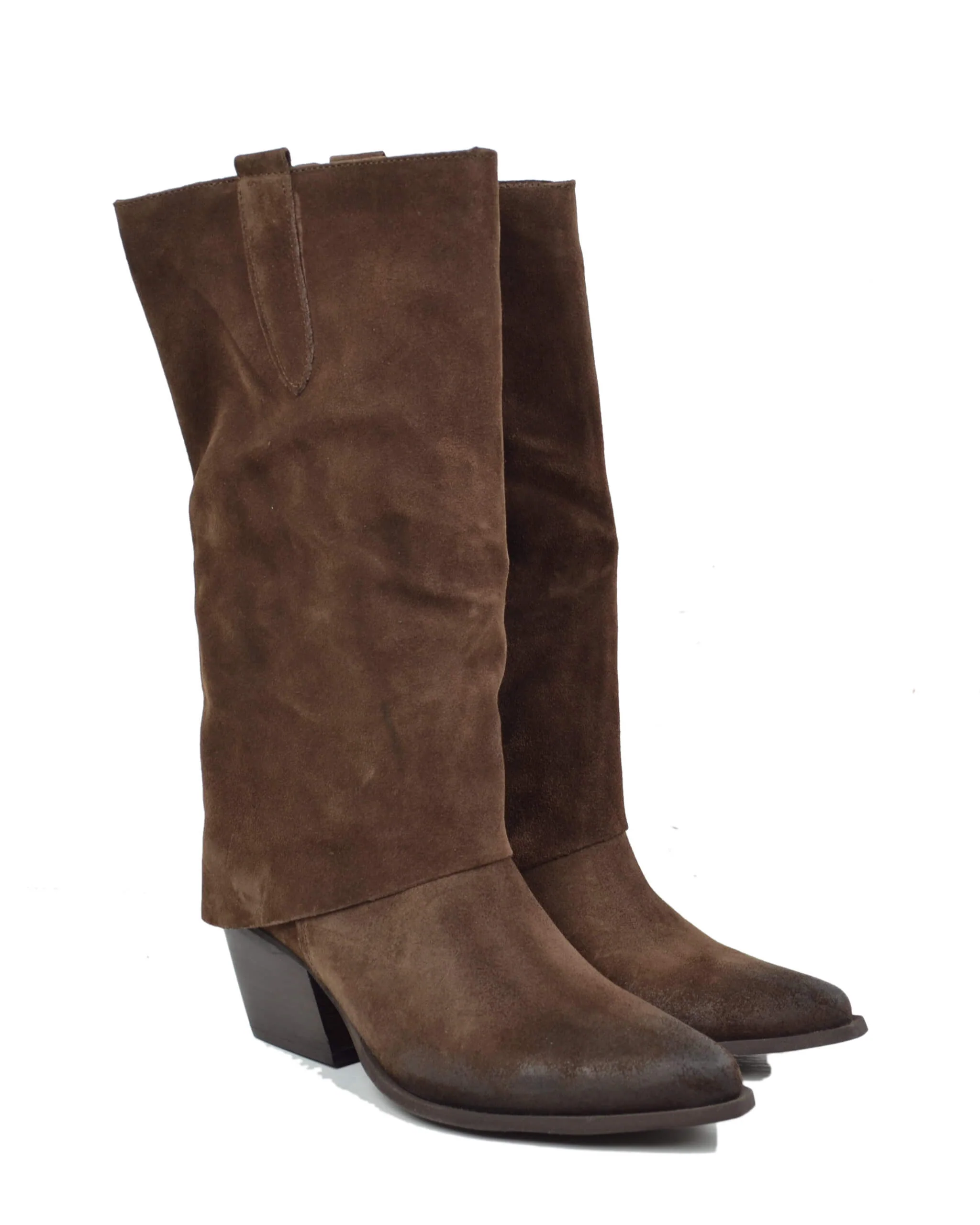 Texani con Ghetta Cioccolato Tacco Medio Vera Pelle Scamosciata Artigianali Marroni