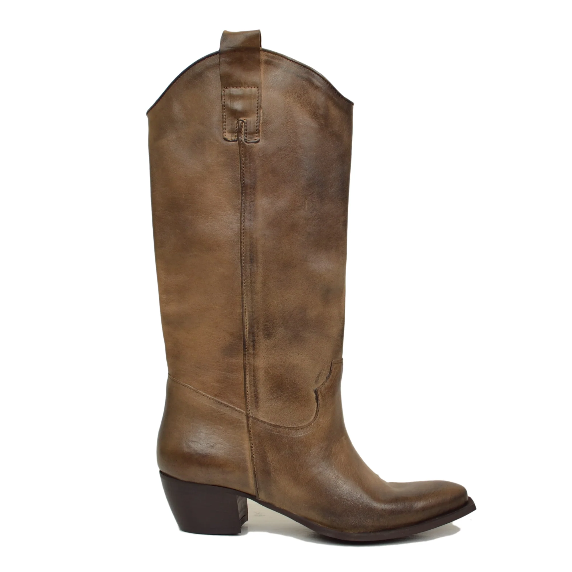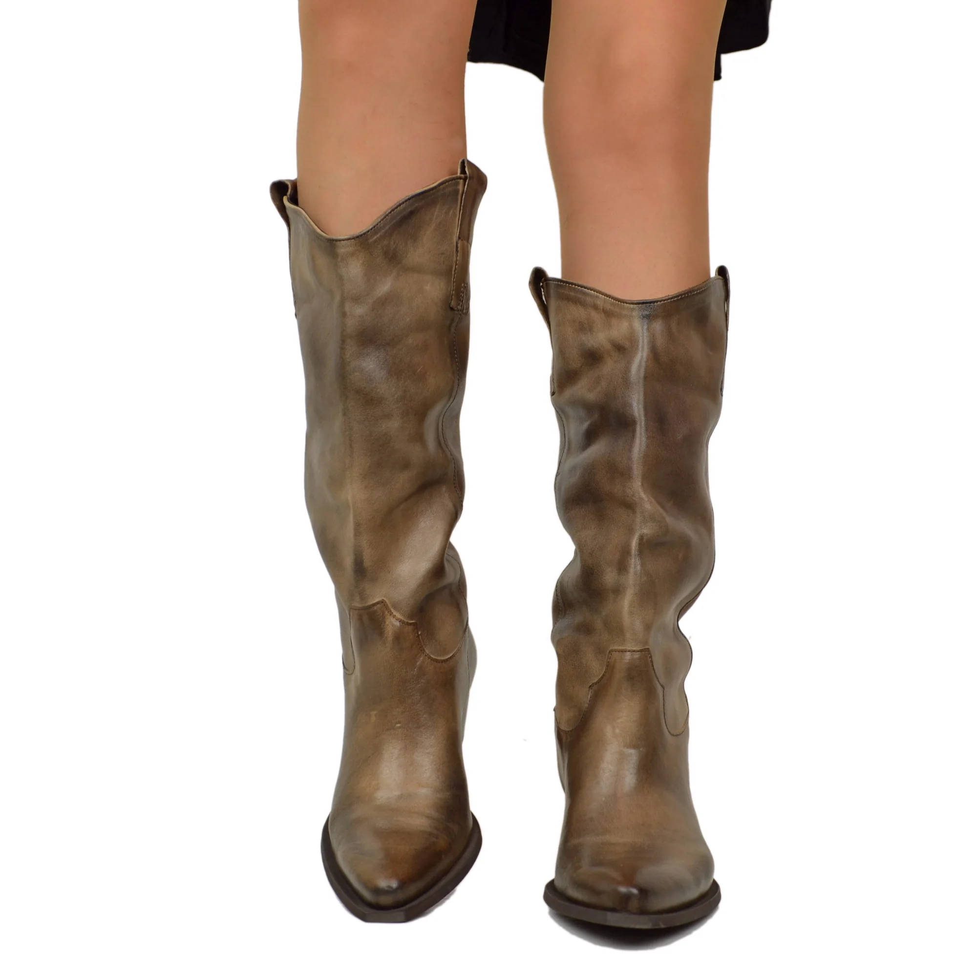 Texani Grintosi Lisci Fondo Sportivo Tacco 5 cm Pelle Taupe