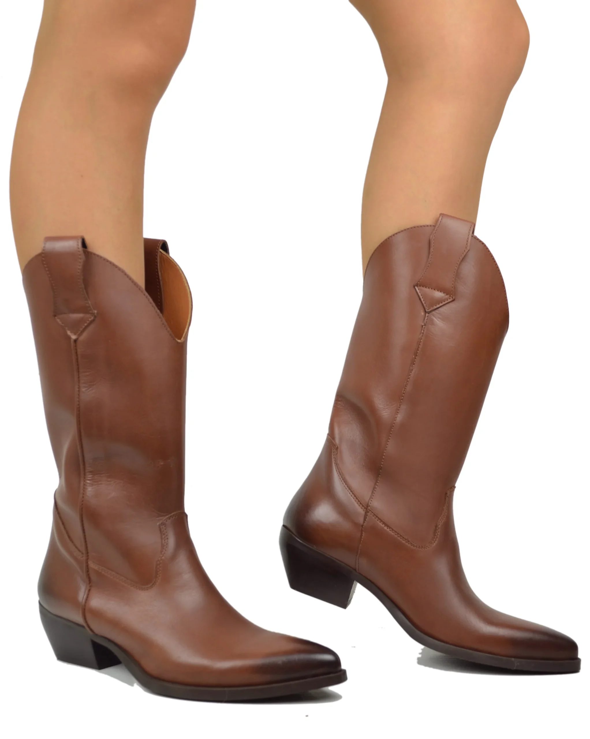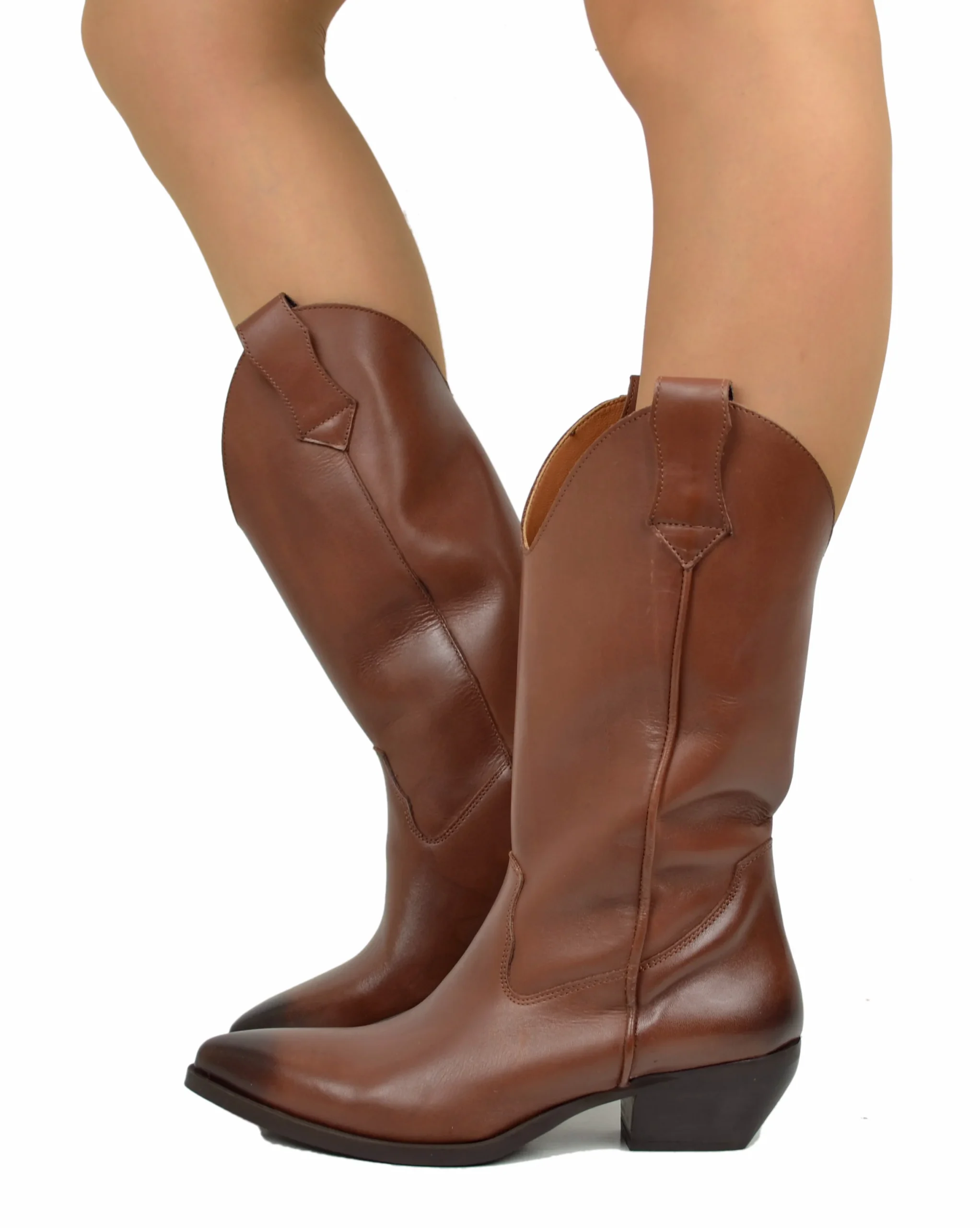Texani VERA PELLE Made in Italy Stivali da Cowboy Cuoio Lisci Camperos