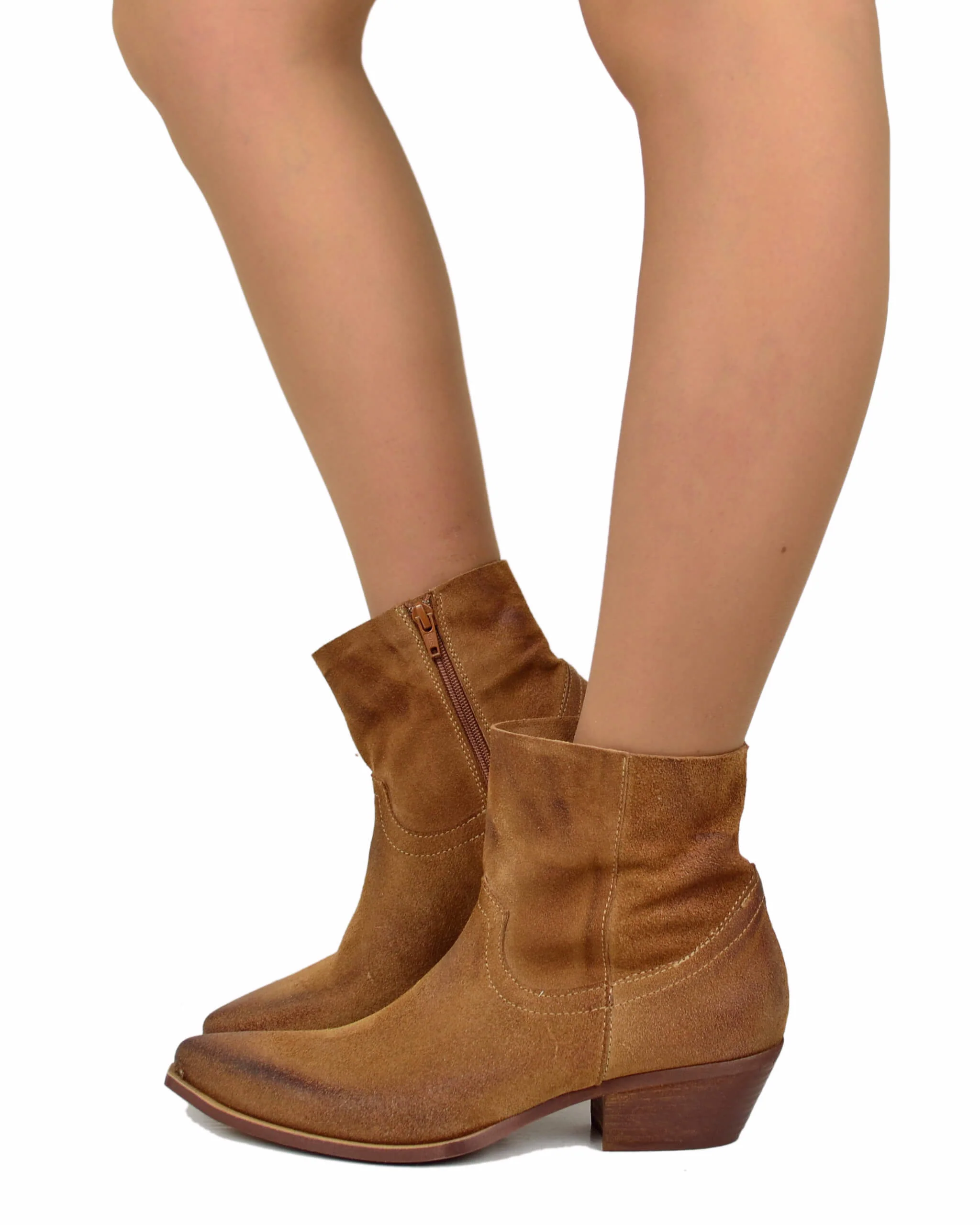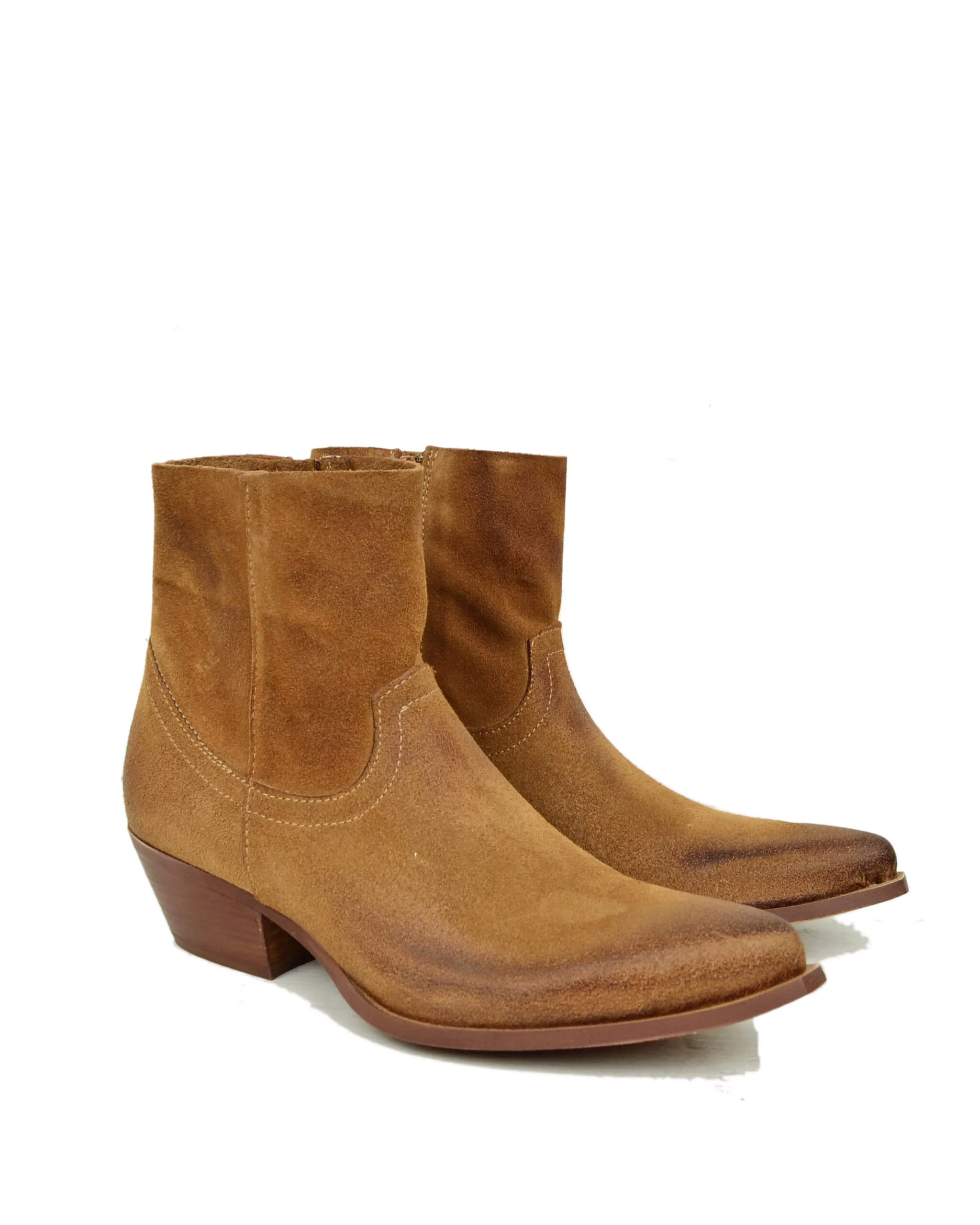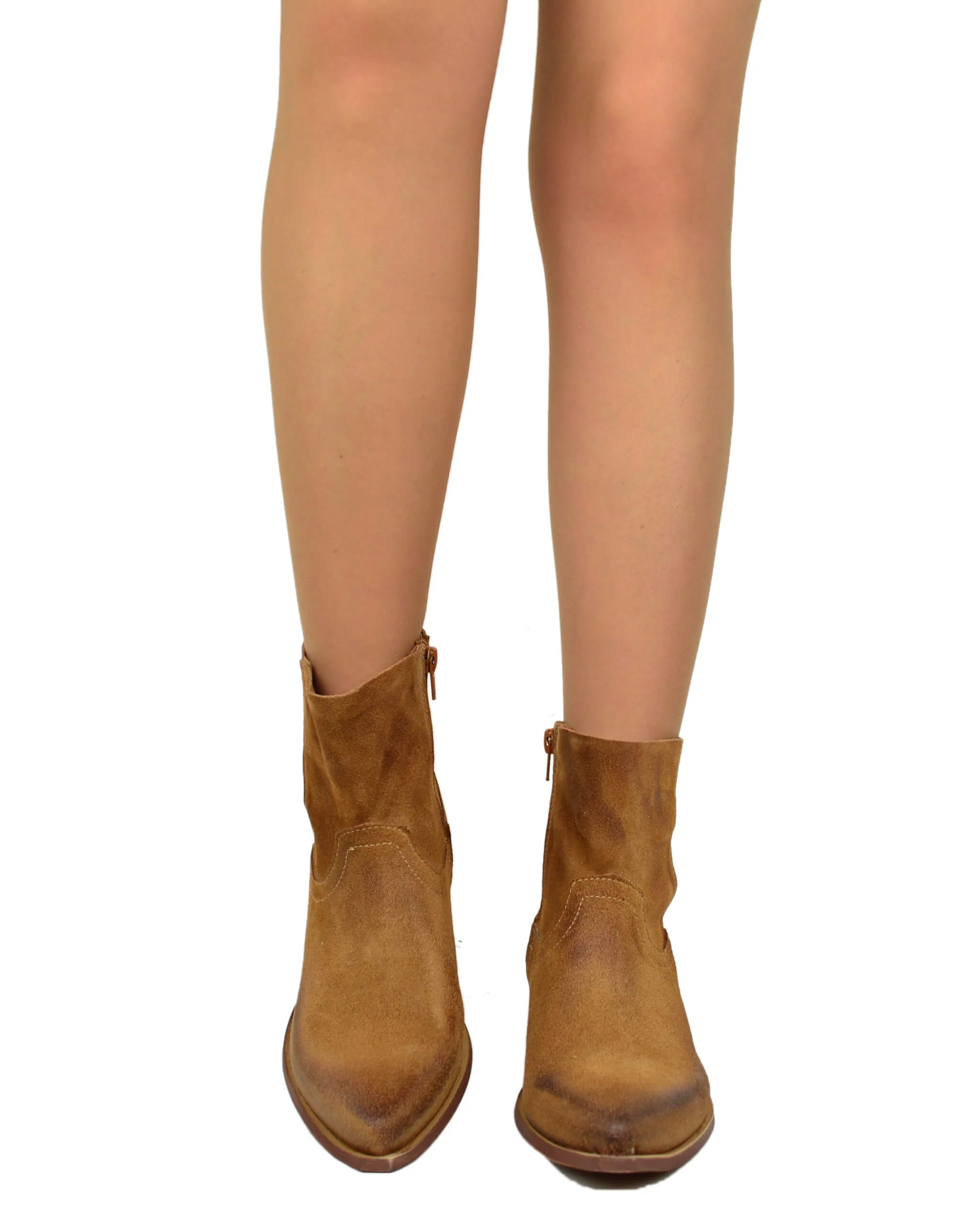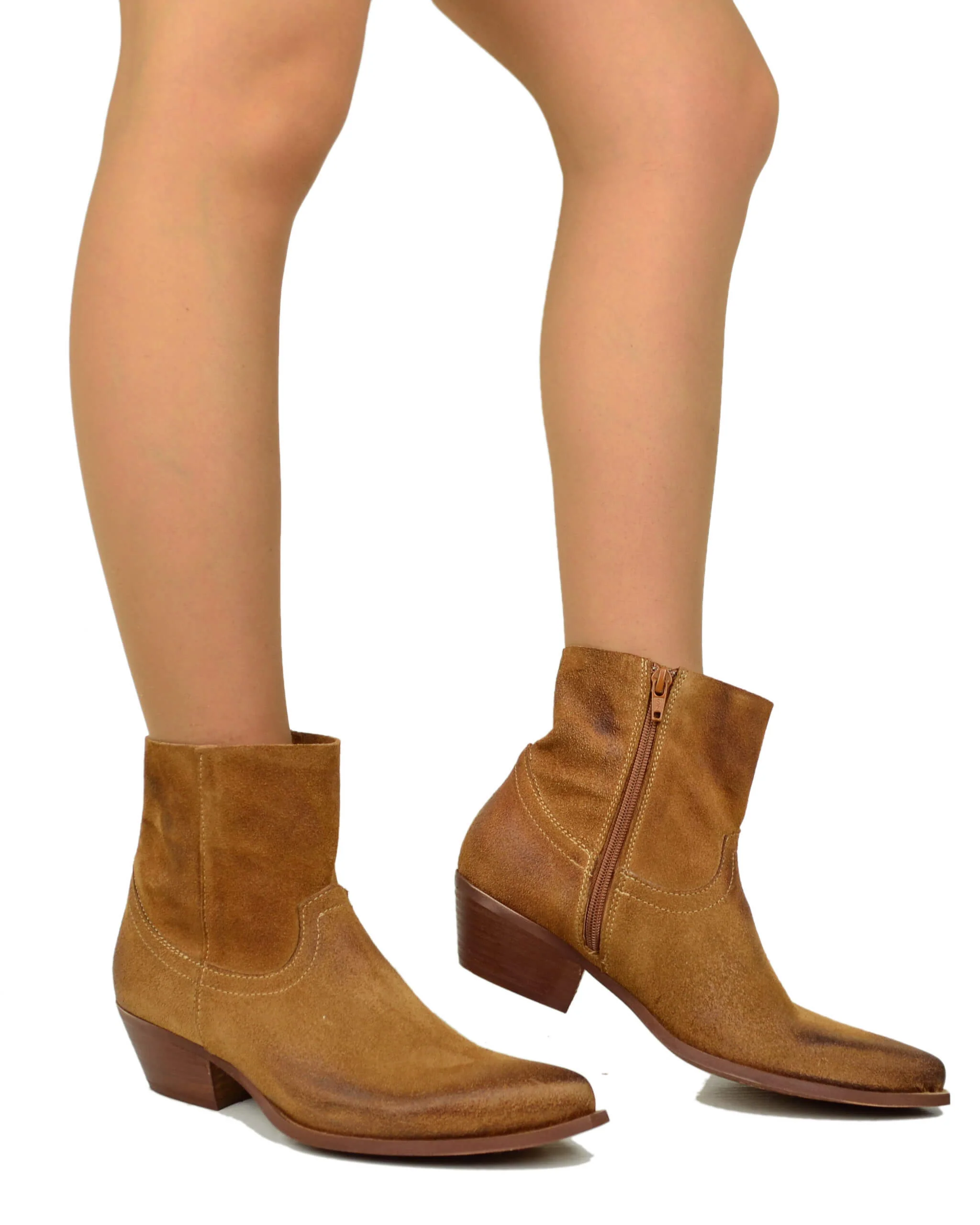 Texanini Cuoio Taglio Dritto Sfoderati Leggeri Pelle Scamosciata Tacco 4 Cm