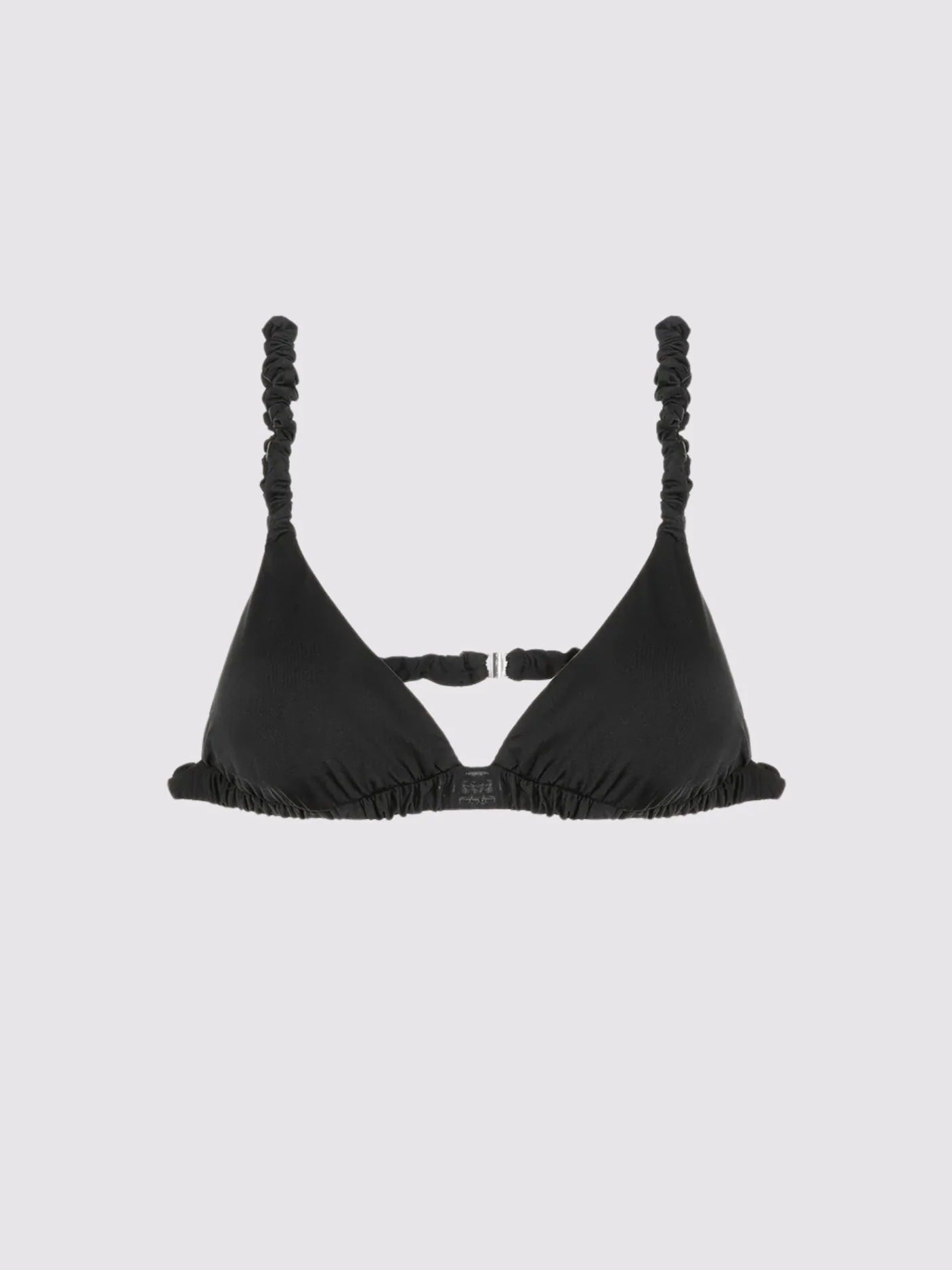Un top triangolo elegante e versatile, realizzato in jersey in lycra per un comfort e una vestibilità ottimali. Dotato di imbottitura estraibile e una chiusura con gancio, questo capo è perfetto per completare il tuo look estivo con un tocco di stile sofisticato.