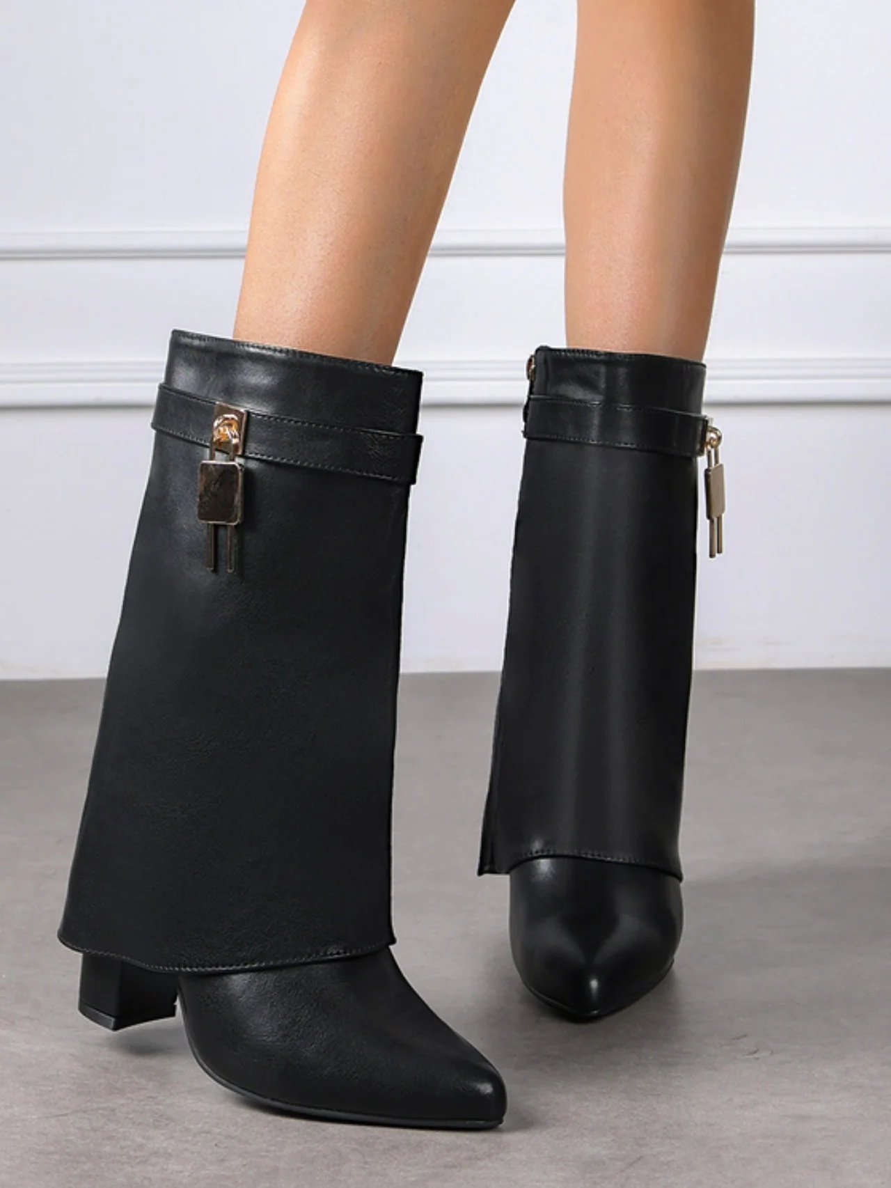 - Tronchetti in ecopelle con risvolto e fibbia che catturano lo sguardo. Stile moderno e sofisticato in pochi dettagli essenziali. Il tuo nuovo must-have per un look impeccabile.