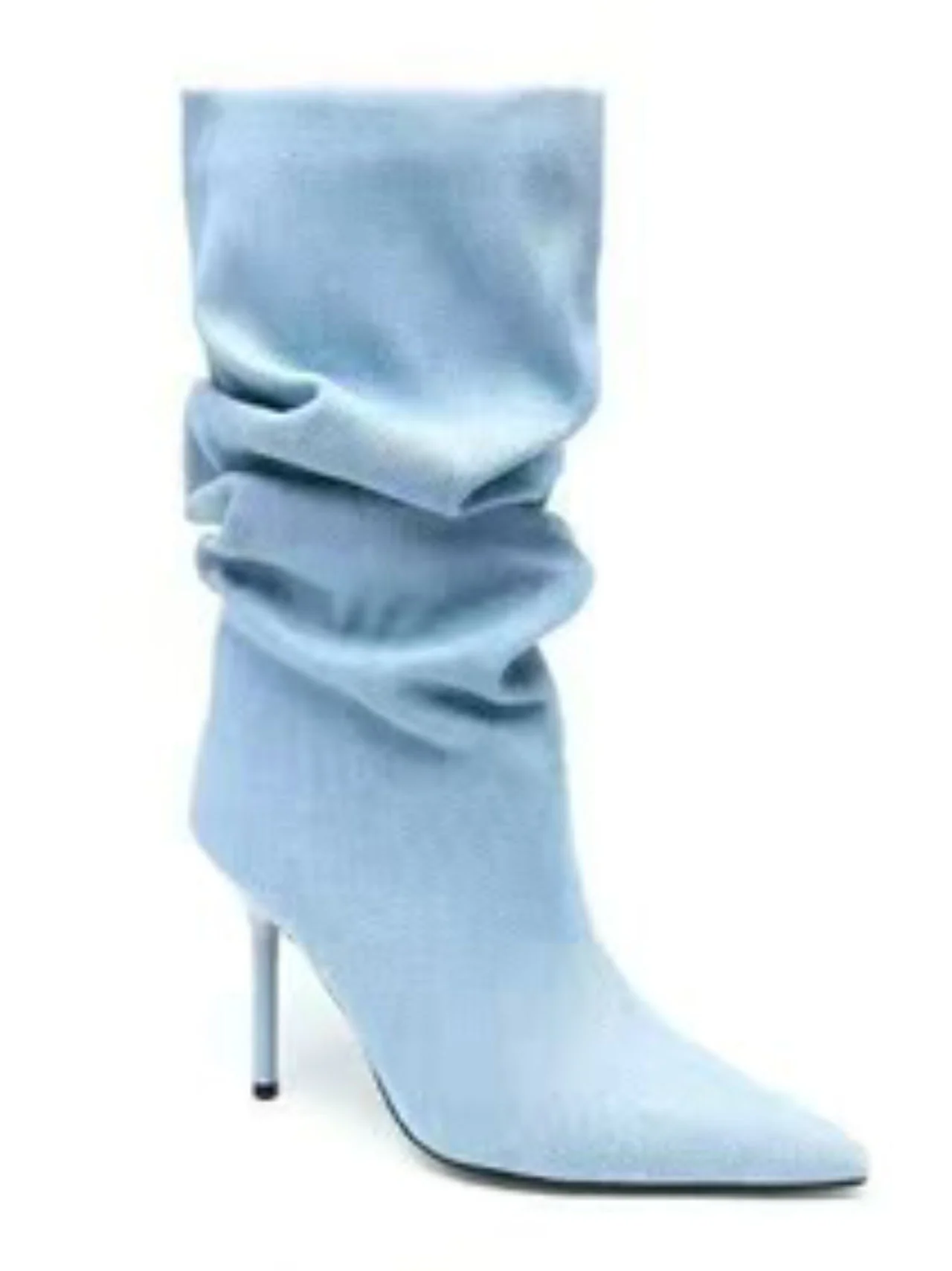 - Tronchetti in denim con morbide pieghe che catturano lo sguardo. Un alleato di stile essenziale per chi vuole un look moderno e sofisticato senza compromessi.