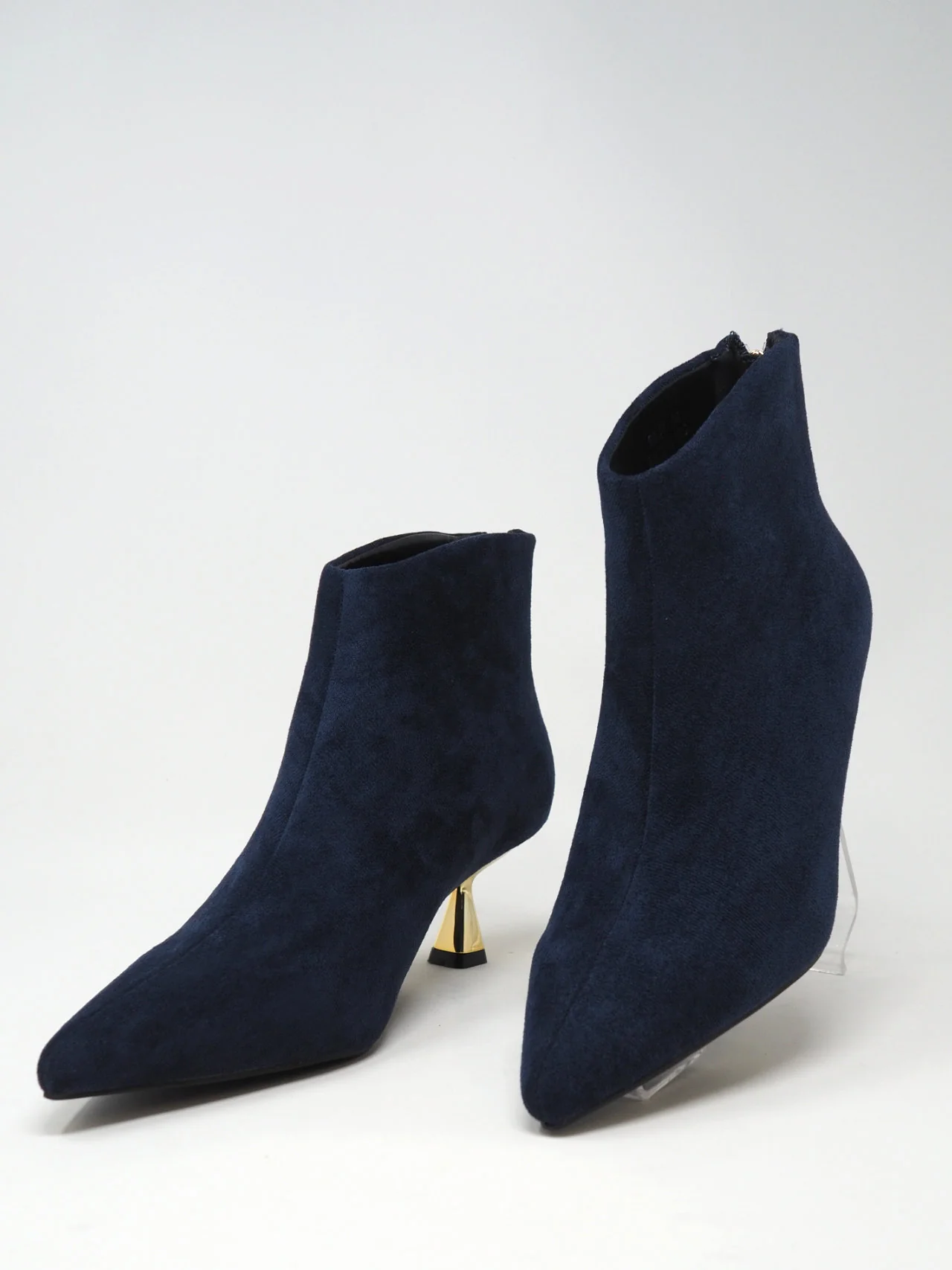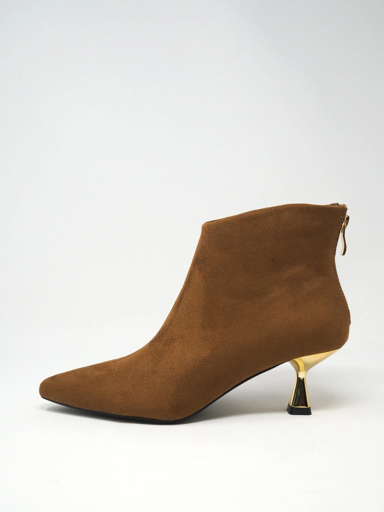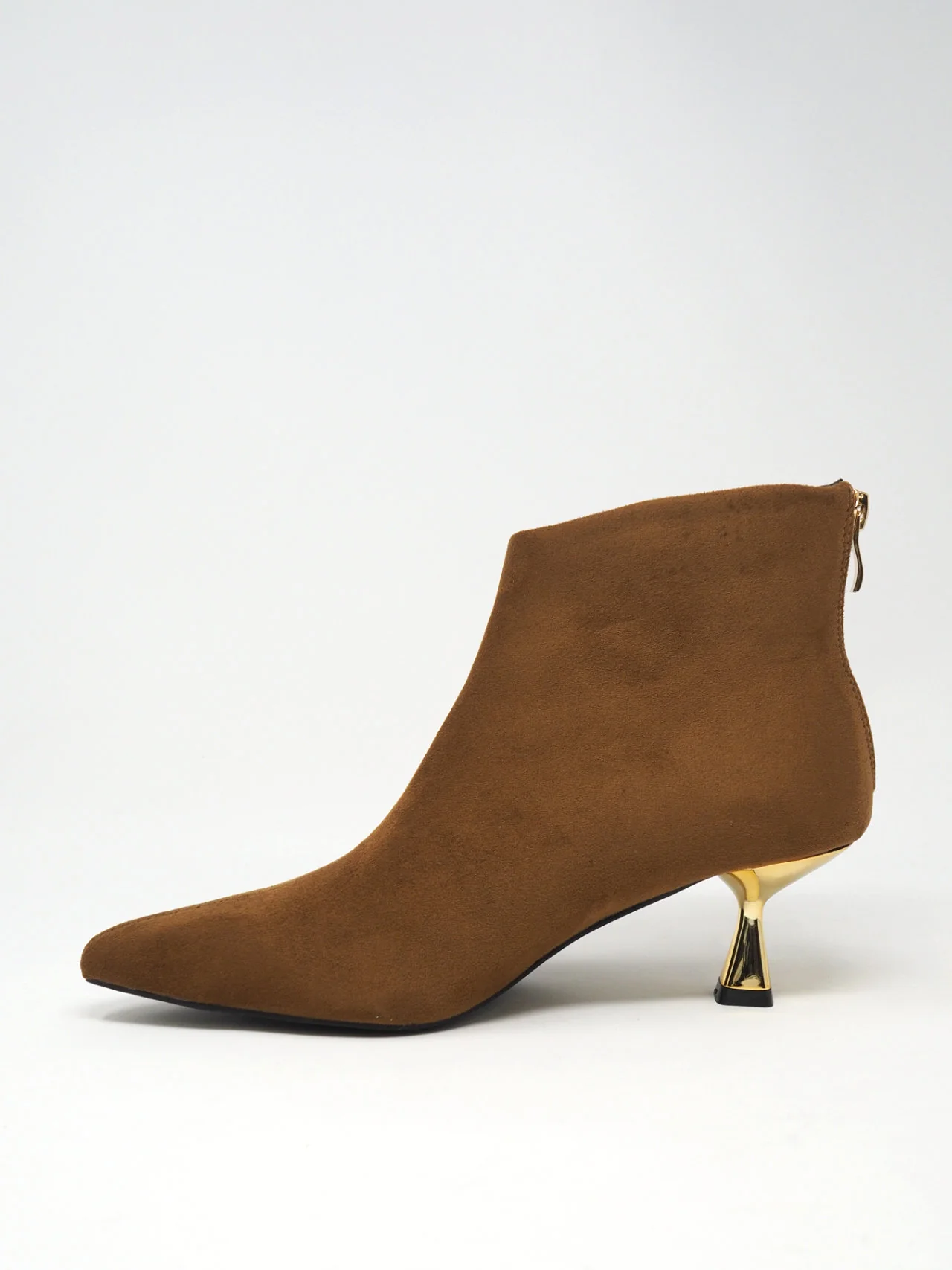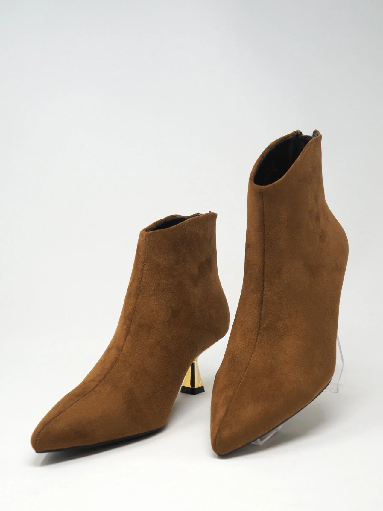 - Impressiona la folla con questi tronchetti in camoscio sintetico e un tacco dorato! Definiscono l’audacia e l’esclusività della femminilità e creano un look incredibile!