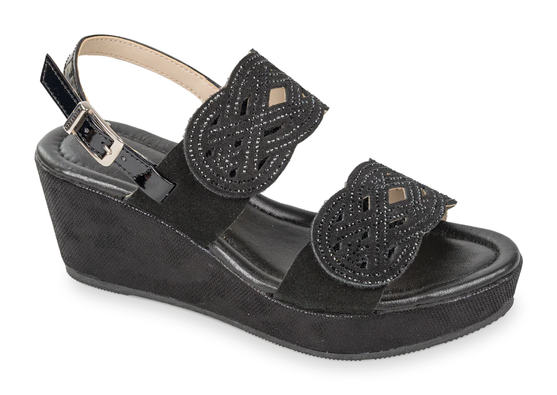 Valleverde 32210 sandalo donna doppia fascia con zeppa nero