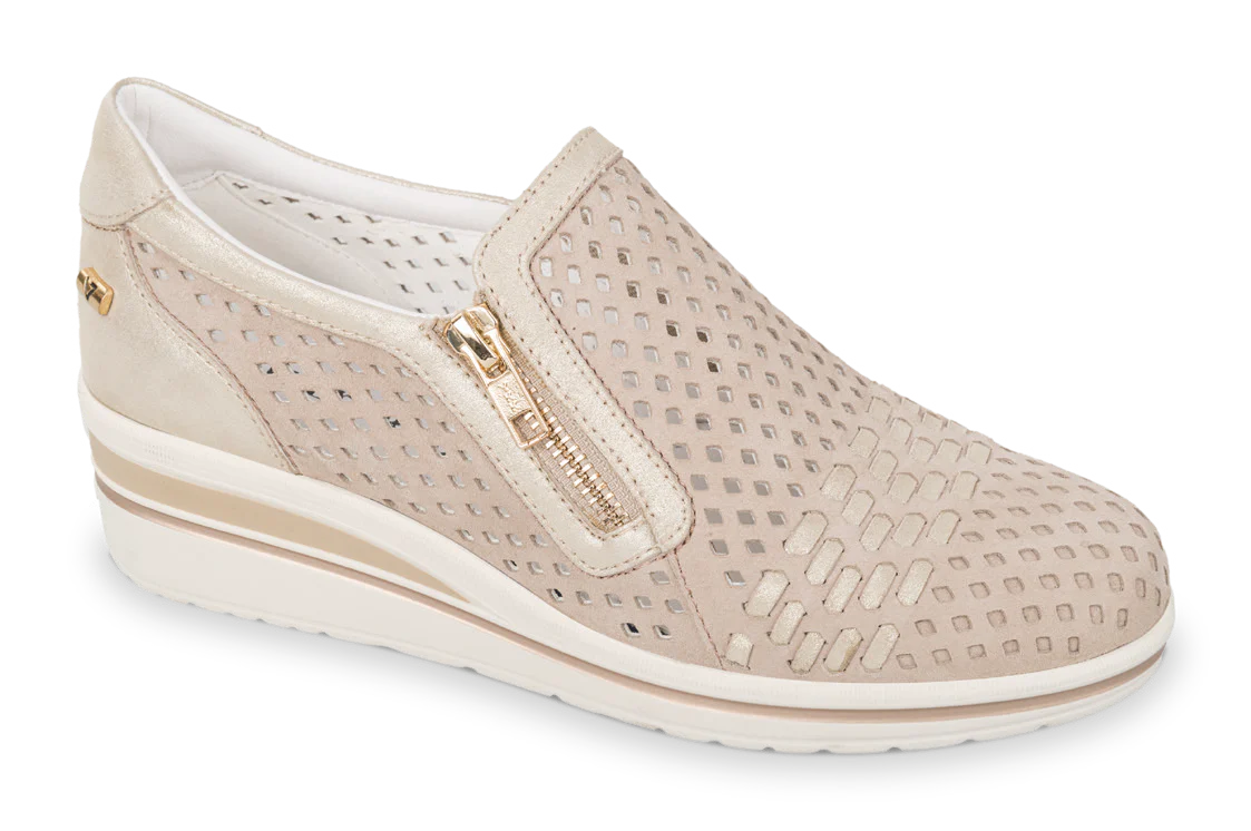 Valleverde 36213 mocassino sportivo in nabuk ecrù con zeppa