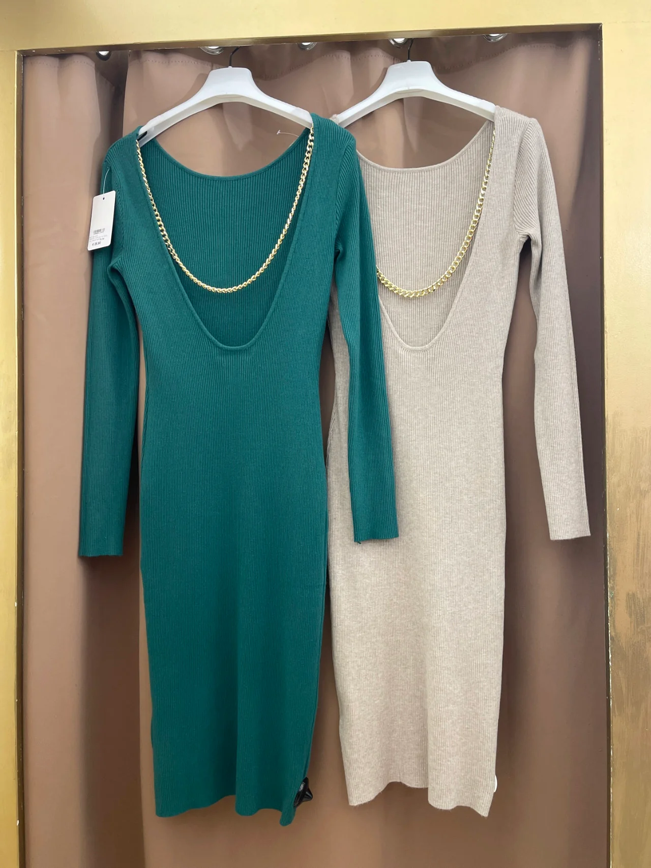 - Abito vestito da donna, a costine con scollatura sulla schiena e catena ornamentale, per un look sensuale e alla moda.