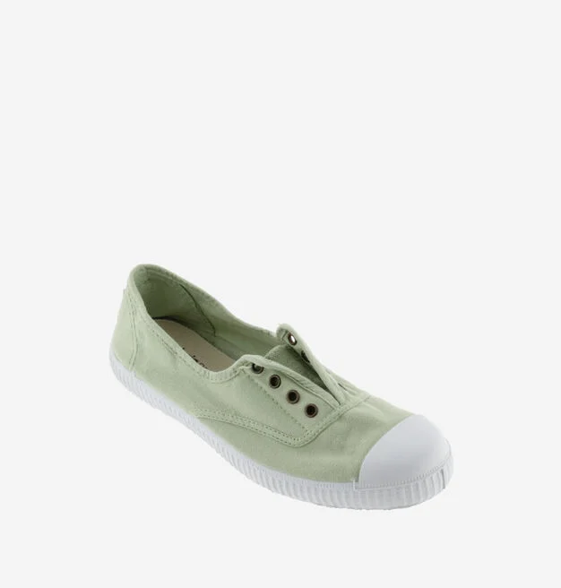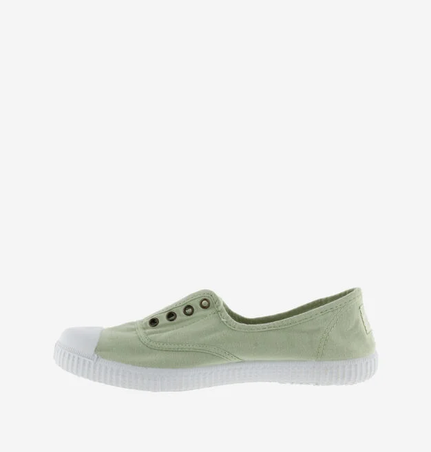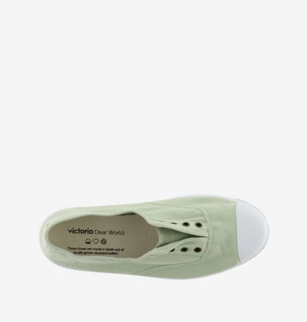 Le sneakers di Victoria in tela lavata senza lacci non sono solo uno dei nostri modelli più emblematici, ma sono anche sostenibili poiché realizzati con il 30% di cotone biologico lavato riciclato e suola in gomma naturale con il 20% di gomma riciclata.