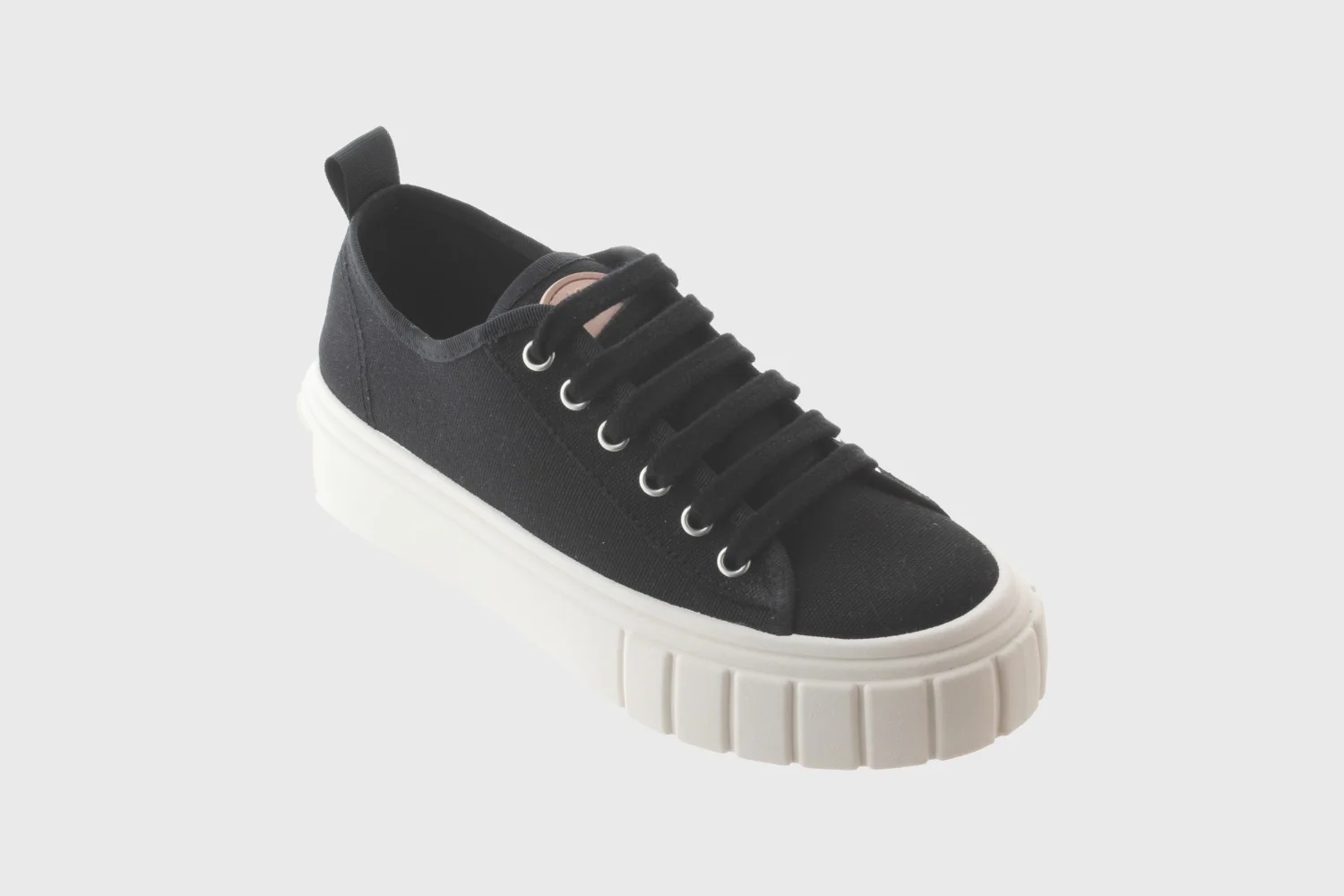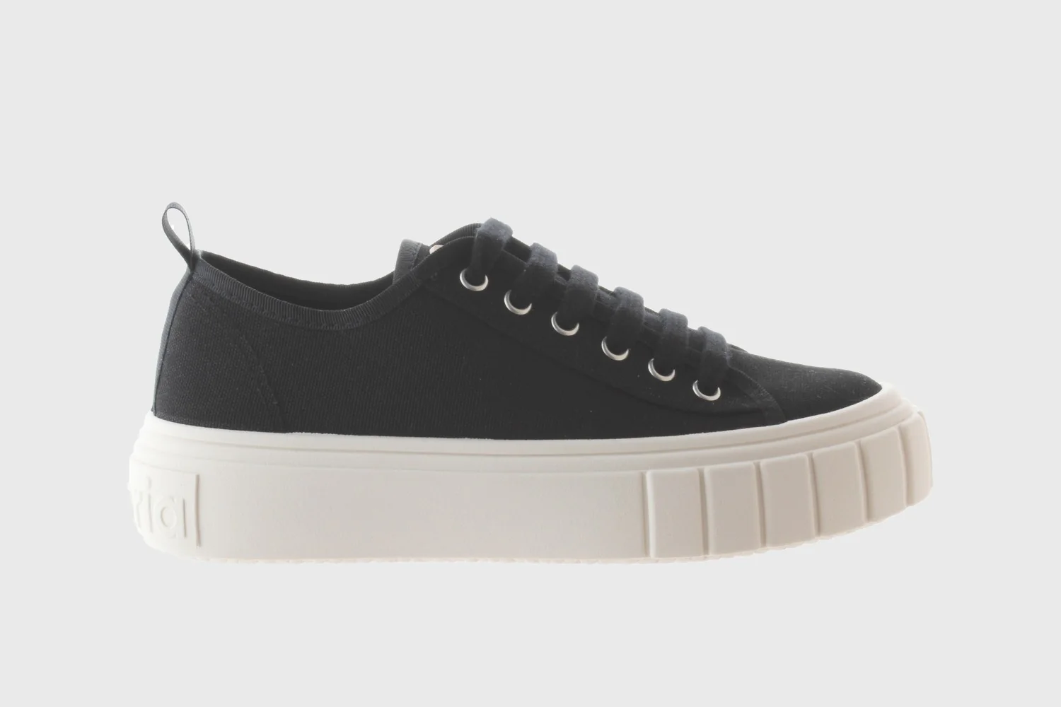 Novità APRILE! Sneakers da ragazza realizzate in tela di cotone biologico al 100%. Suola spessa con oli vegetali nella composizione e toppa in gomma rosa con logo sulla linguetta. Chiusura con lacci in tinta e tirante posteriore.