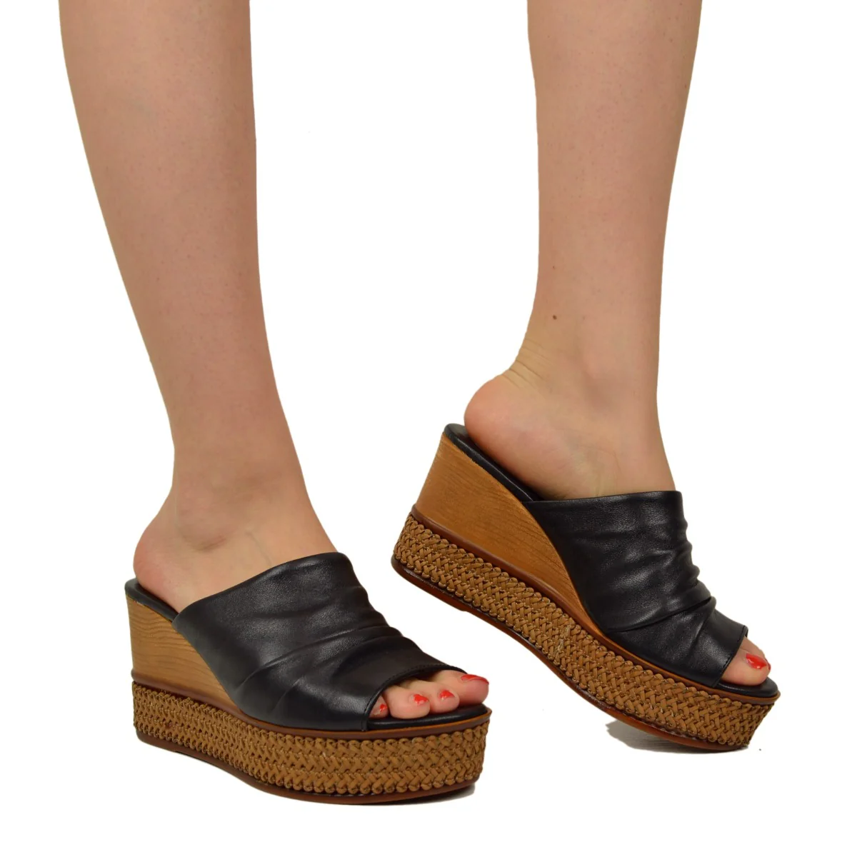 Zeppe Donna Neri in Pelle con Plateau Made in Italy